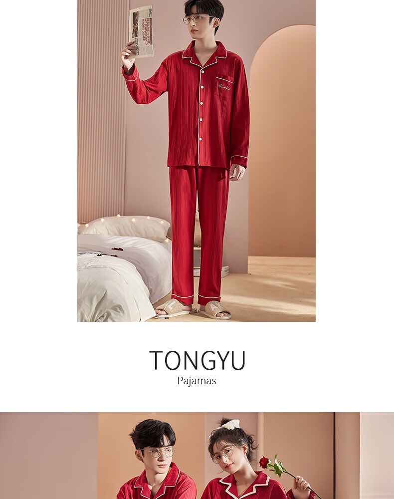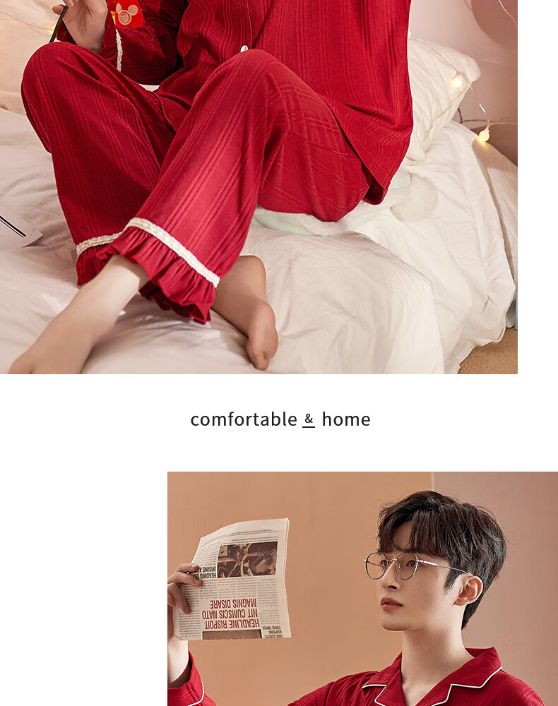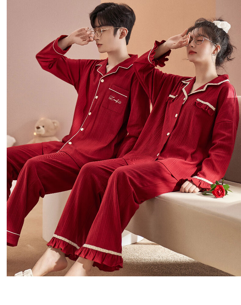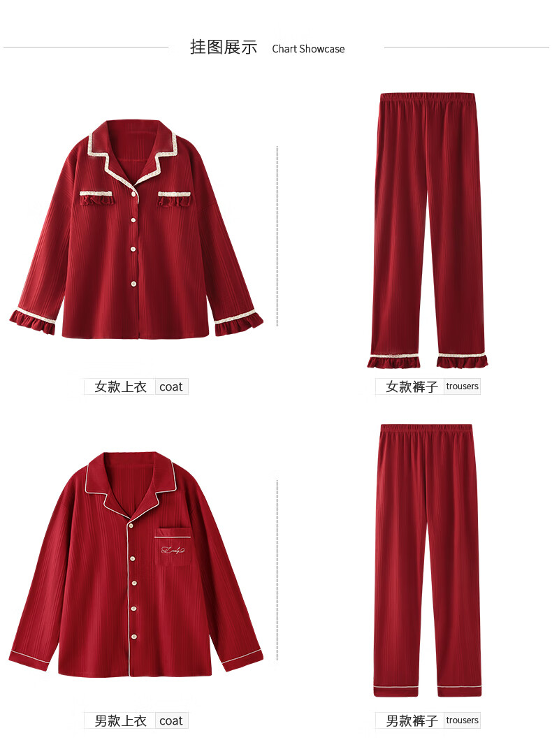 Bai Qixin red wedding couple pajamas for one man and one woman wedding cardigan long-sleeved trousers animal year pajamas set home clothes red couple pajamas men's XL