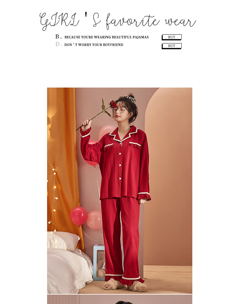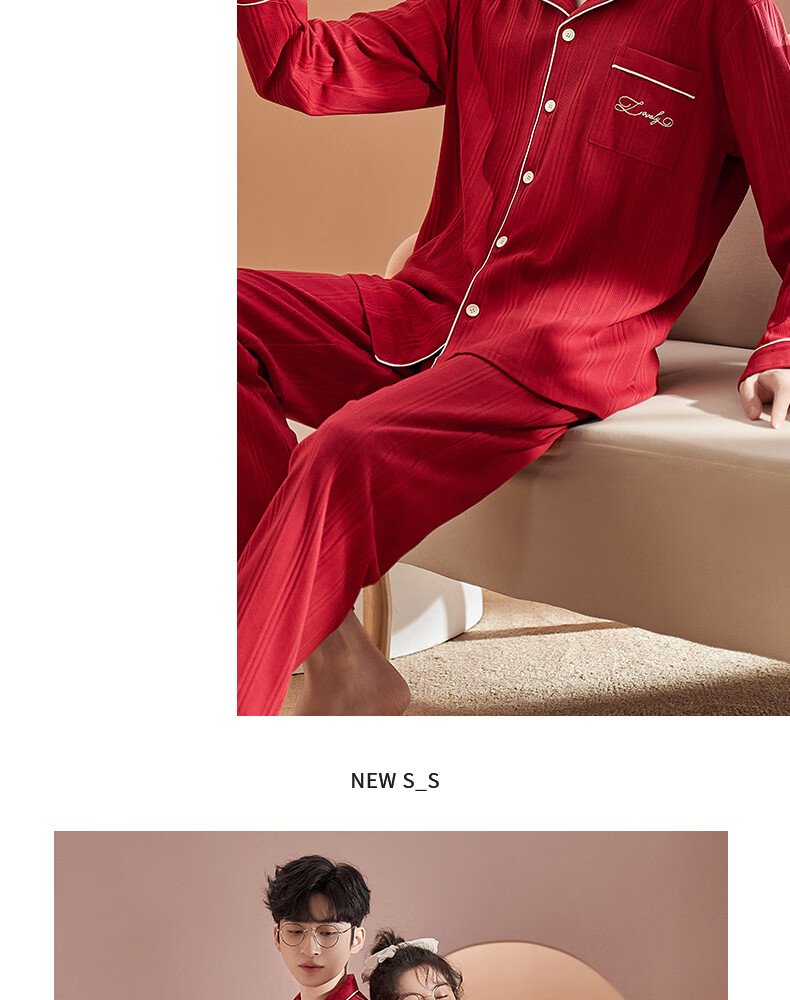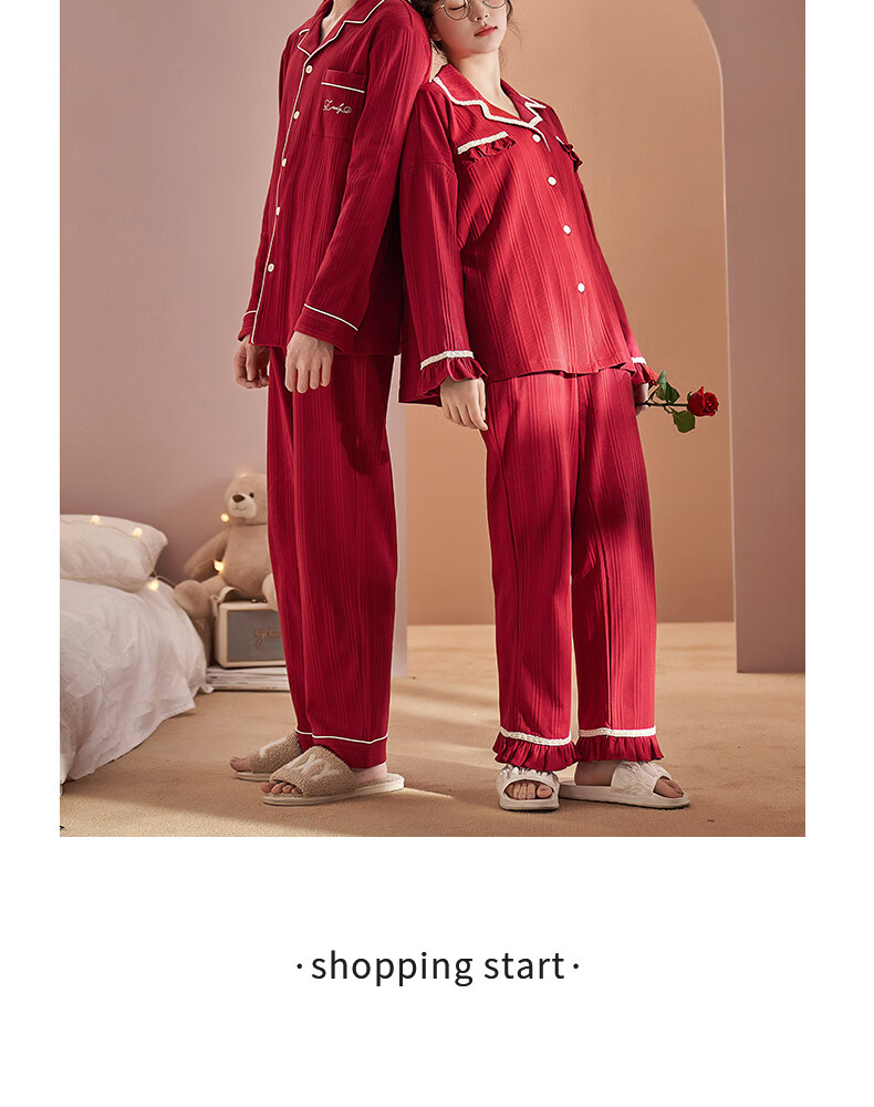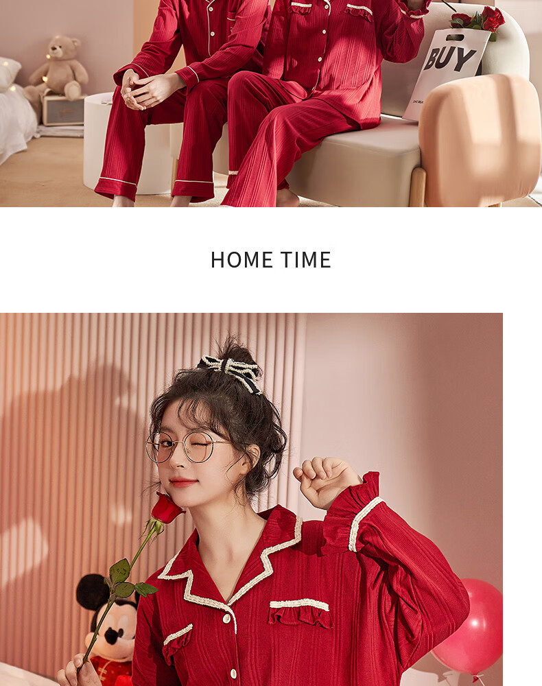Bai Qixin red wedding couple pajamas for one man and one woman wedding cardigan long-sleeved trousers animal year pajamas set home clothes red couple pajamas men's XL