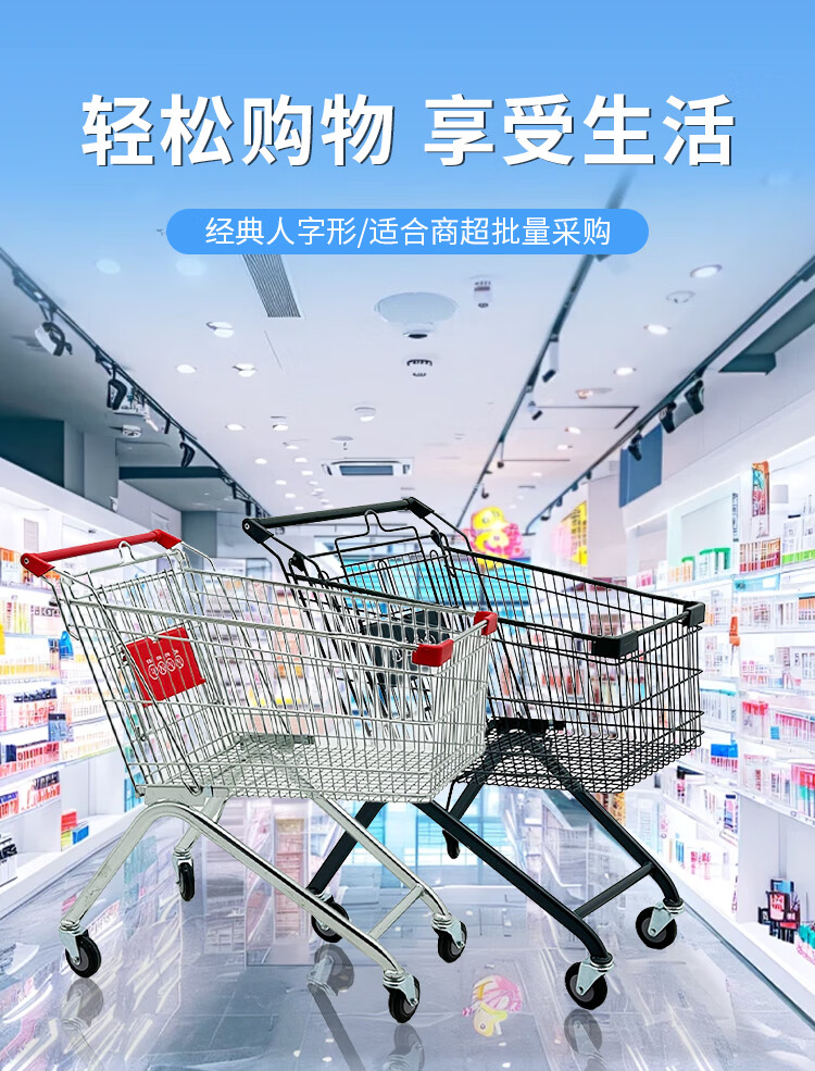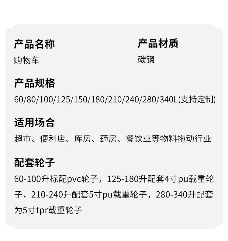 Large and medium-sized supermarkets, shopping malls, warehouse carts, property convenience stores, household grocery shopping carts, shopping carts, large silver 240-liter with (load-carrying wheels)