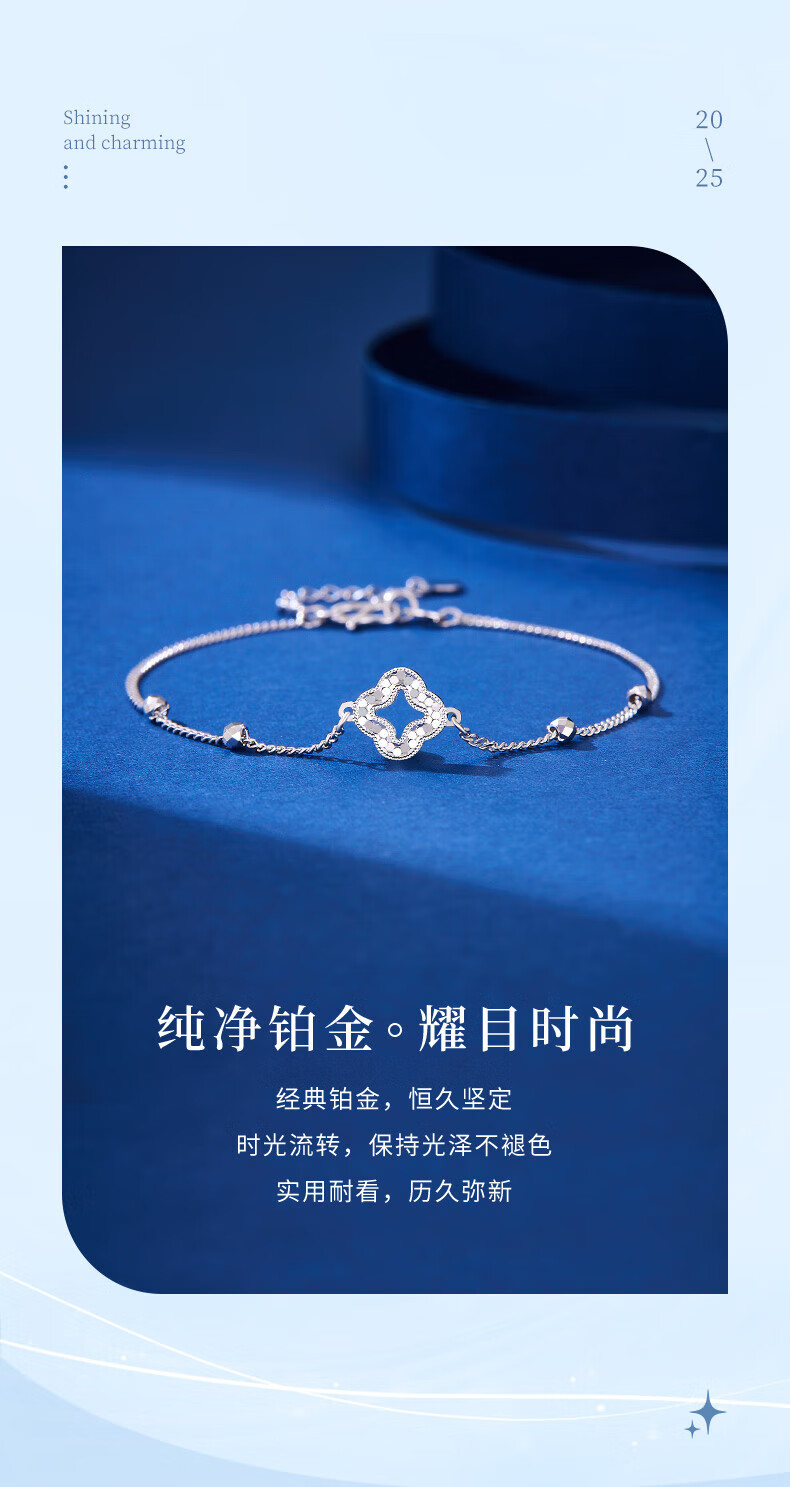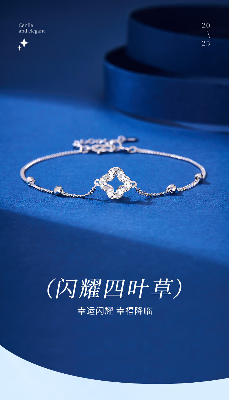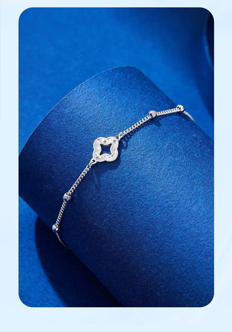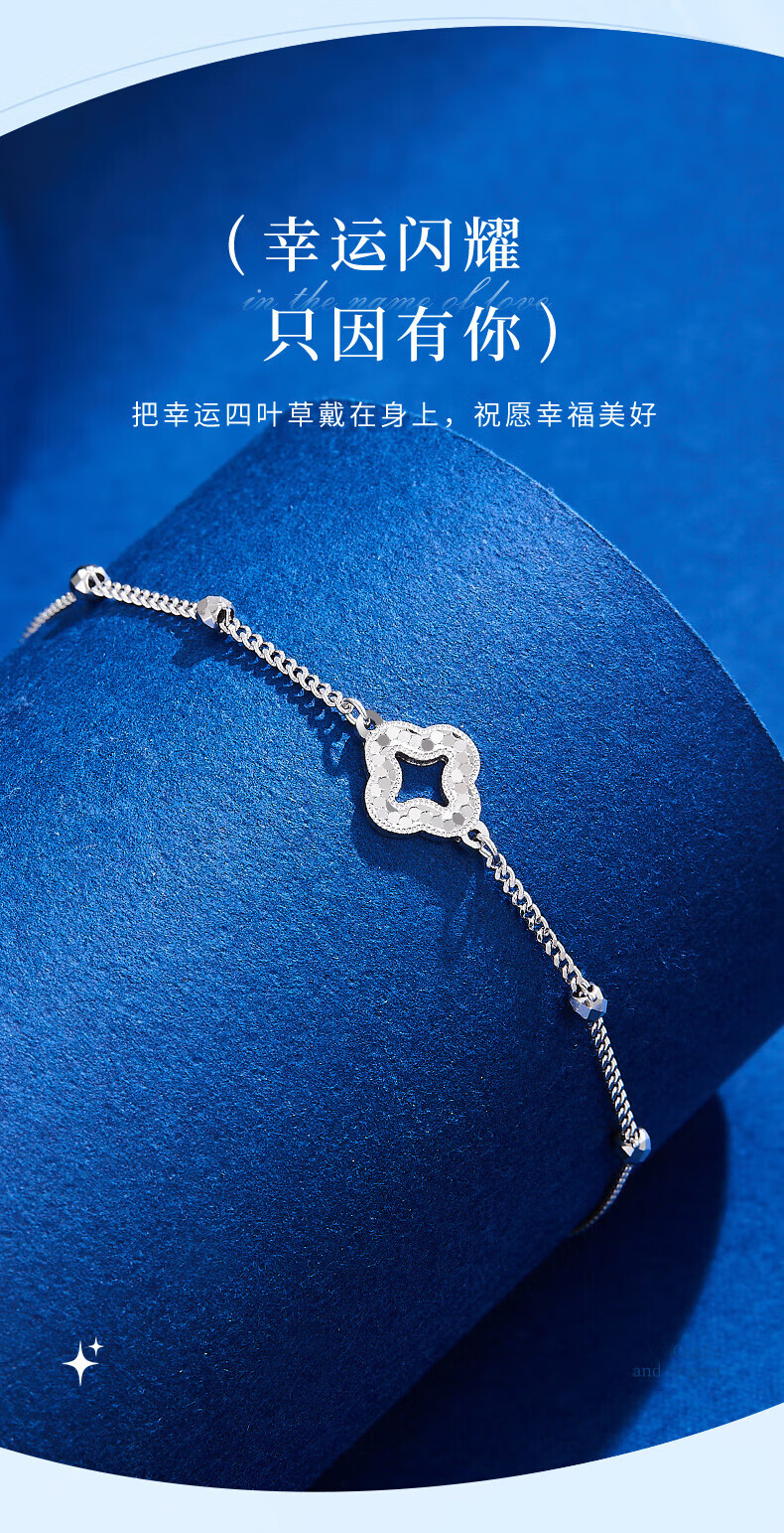 Lao Fengxiang pt950 platinum bracelet for women, platinum sparkling four-leaf clover bead bracelet, Valentine's Day birthday gift for girlfriend, platinum sparkling four-leaf clover bracelet, about 2.9g, brand gift box