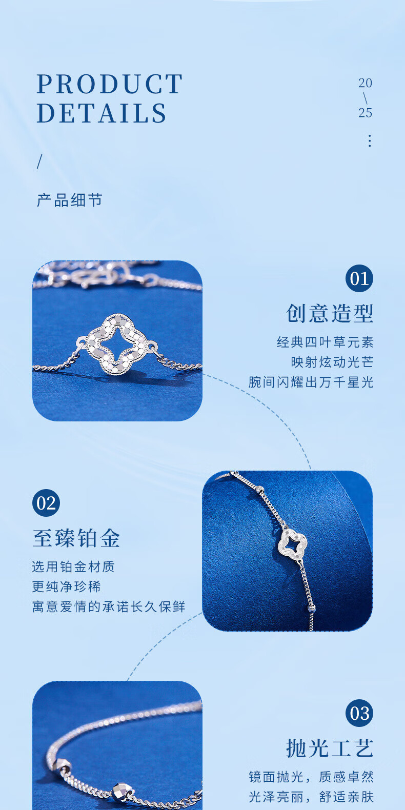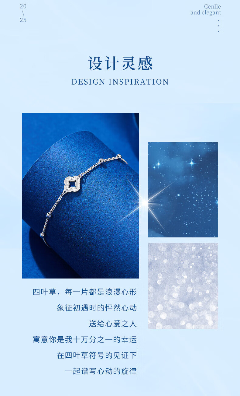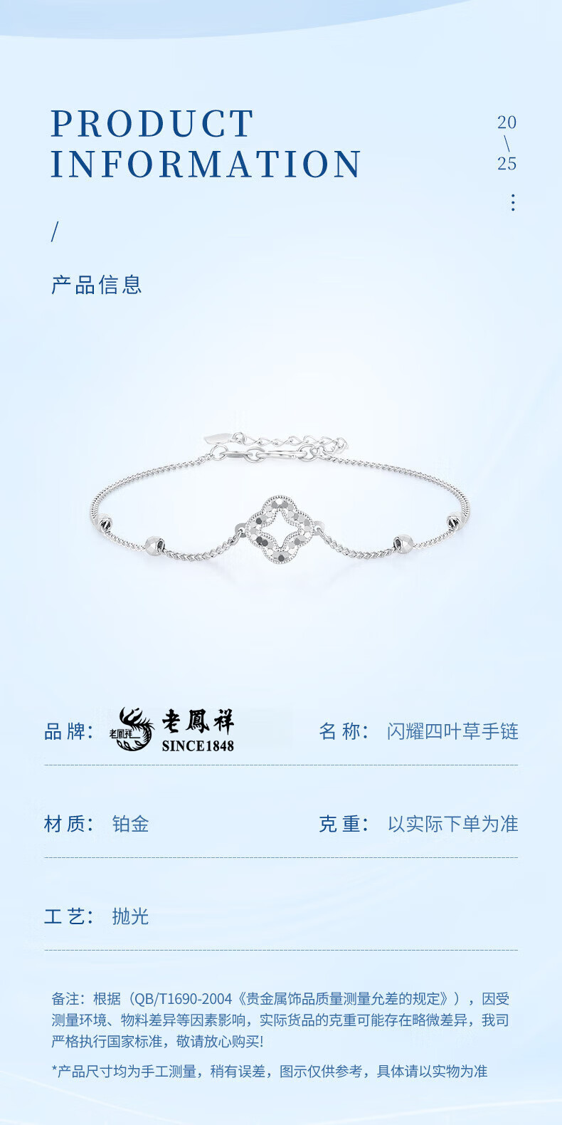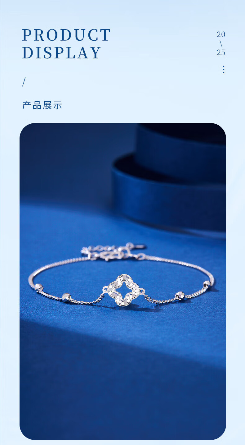 Lao Fengxiang pt950 platinum bracelet for women, platinum sparkling four-leaf clover bead bracelet, Valentine's Day birthday gift for girlfriend, platinum sparkling four-leaf clover bracelet, about 2.9g, brand gift box