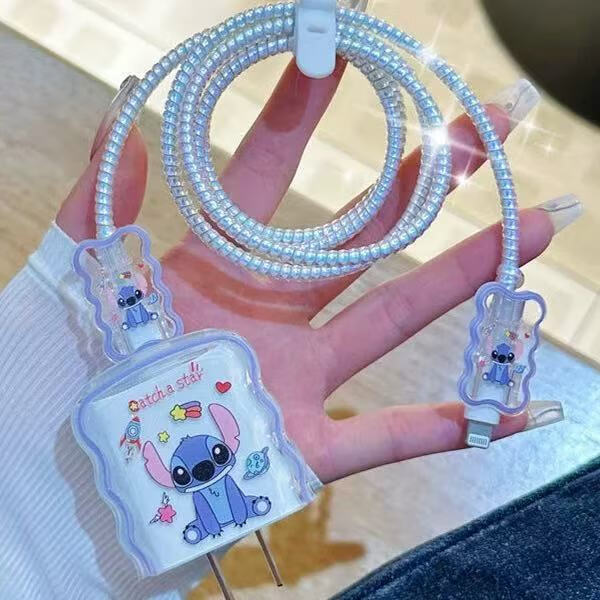 Stitch data cable protective cover uses Apple iPhone17promax 20w charger 16/15/14/13, anti-cat bite, anti-break, anti-dirty, dust-proof and anti-fouling Stitch cord bite device, one pair requires two