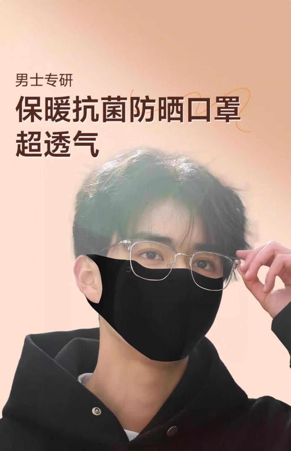JCZS German brand new style non-fogging mask for wearing glasses, winter men's trendy style, windproof, cold-proof, warm and sun-proof, black, two replacements, one size fits all
