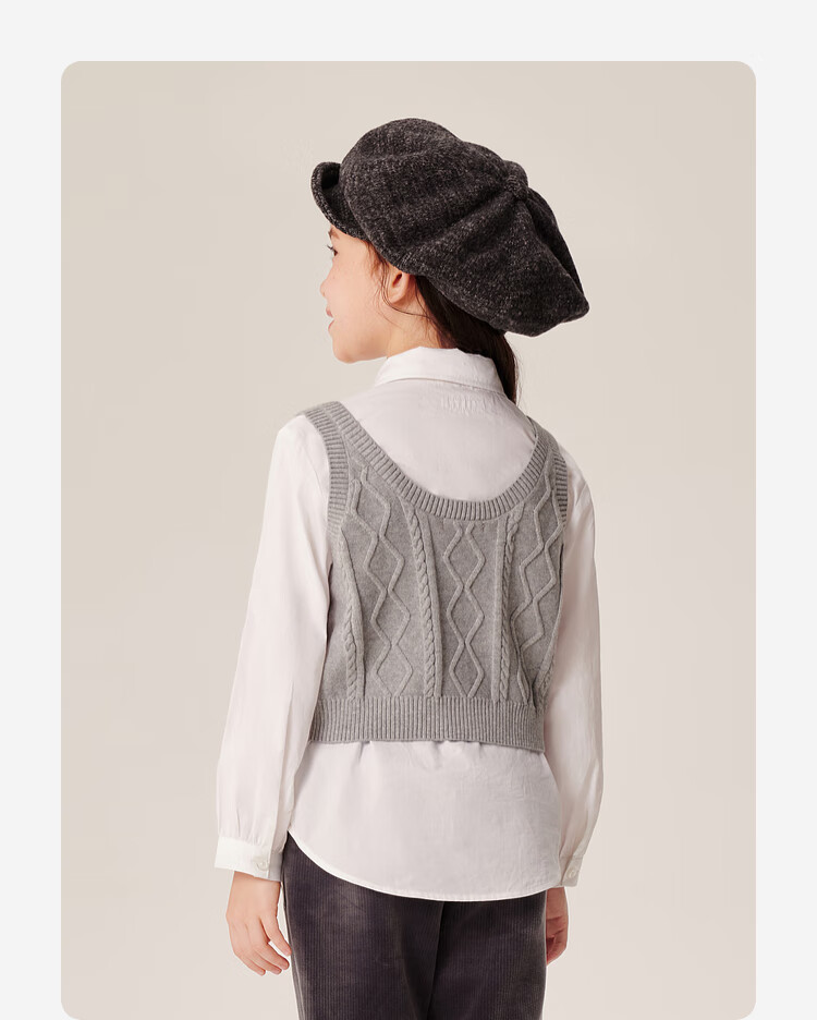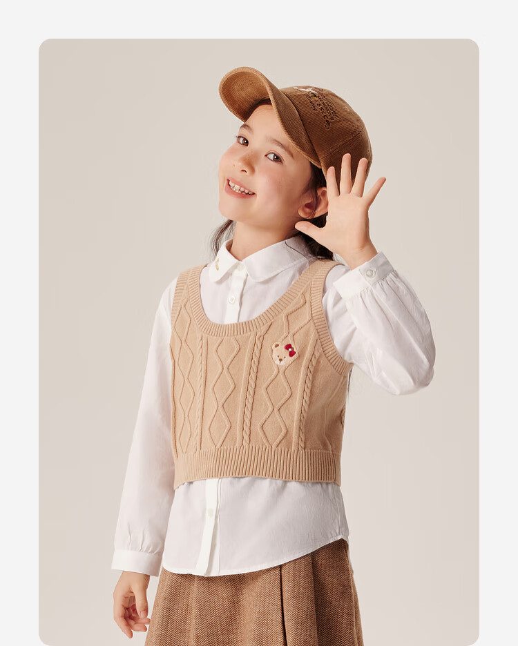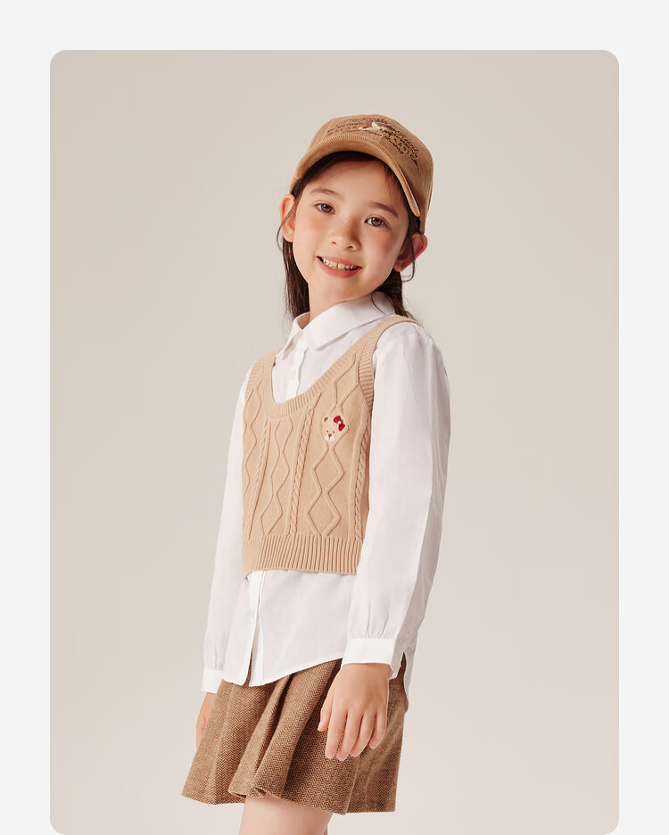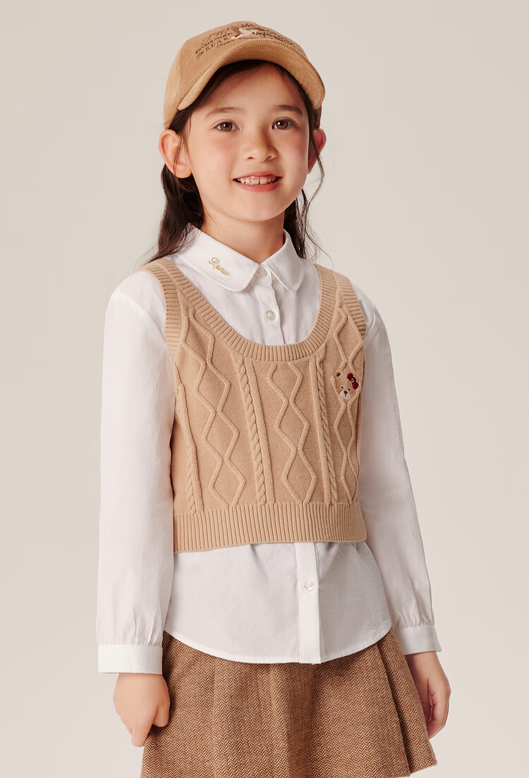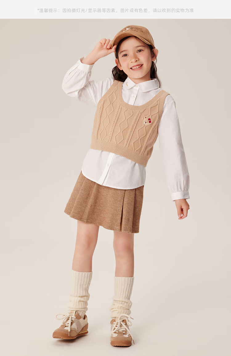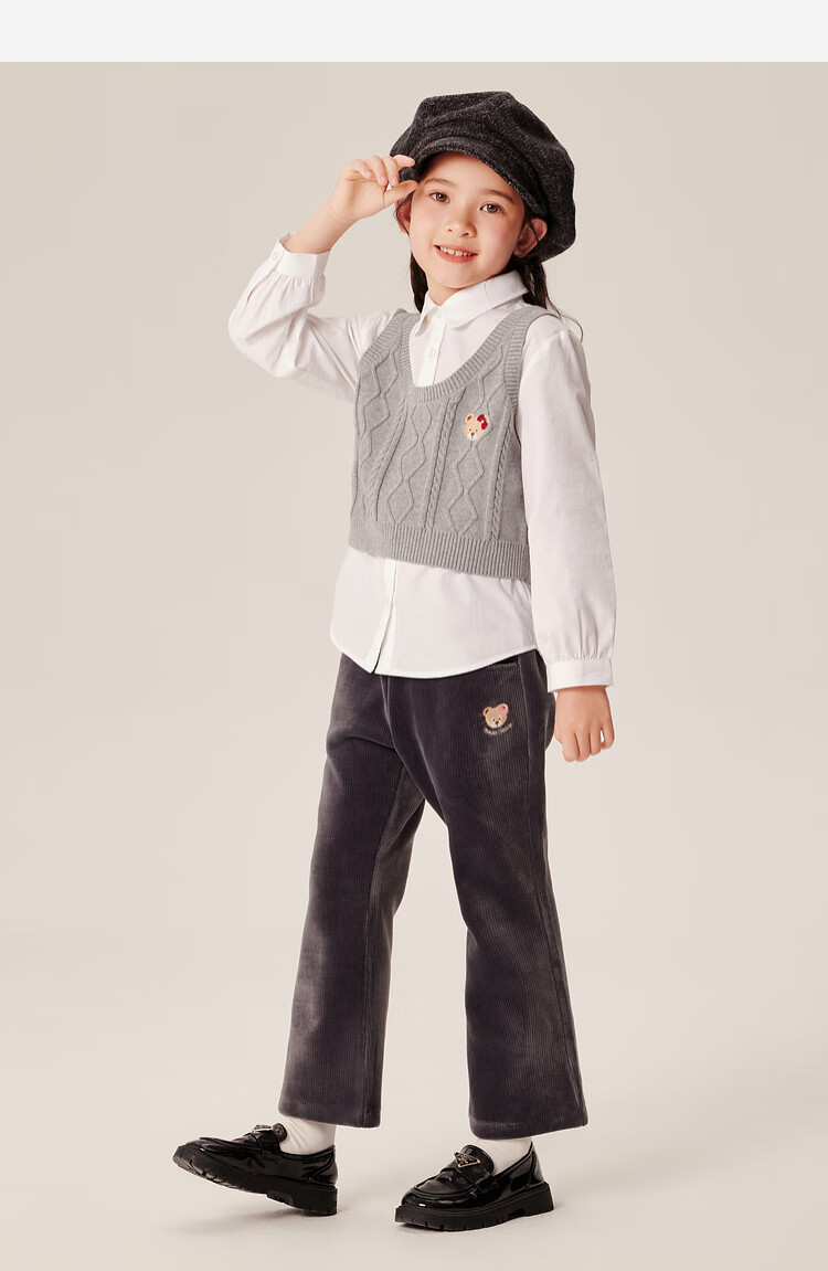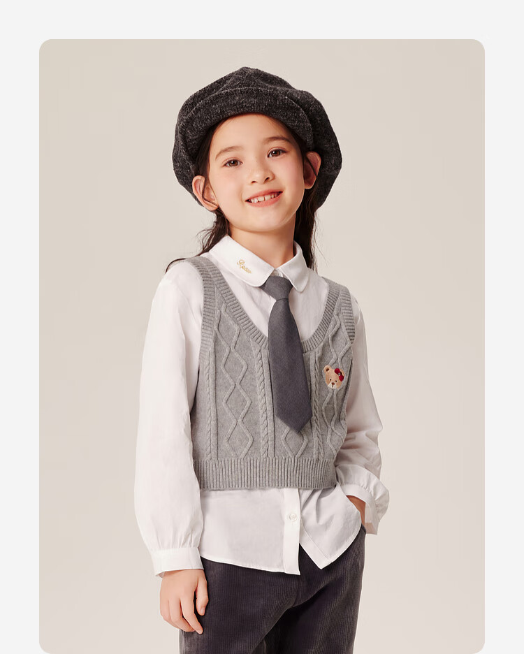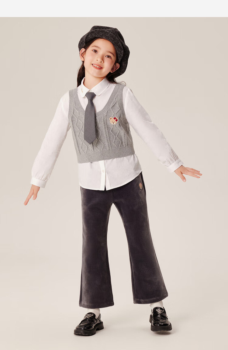 PawinPaw Cartoon Bear Children's Clothing 2024 Early Autumn Girls' Shirts Two-piece Stacked College Style PCBAE4922M Gray 150