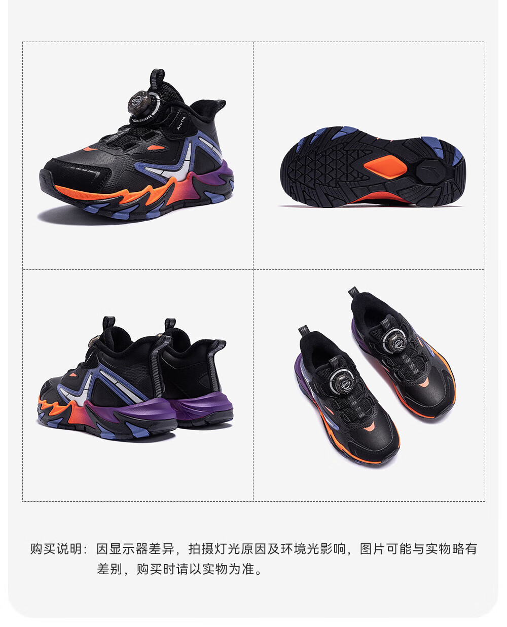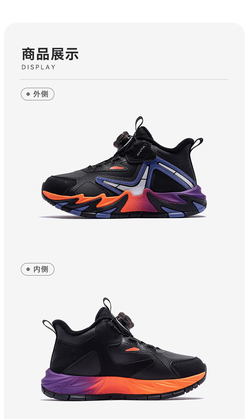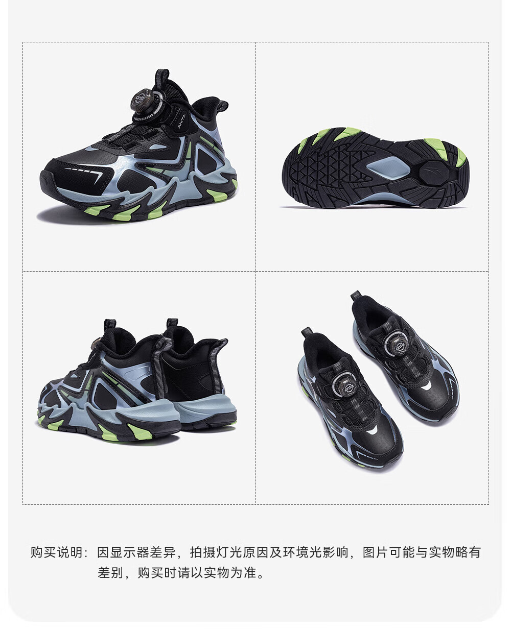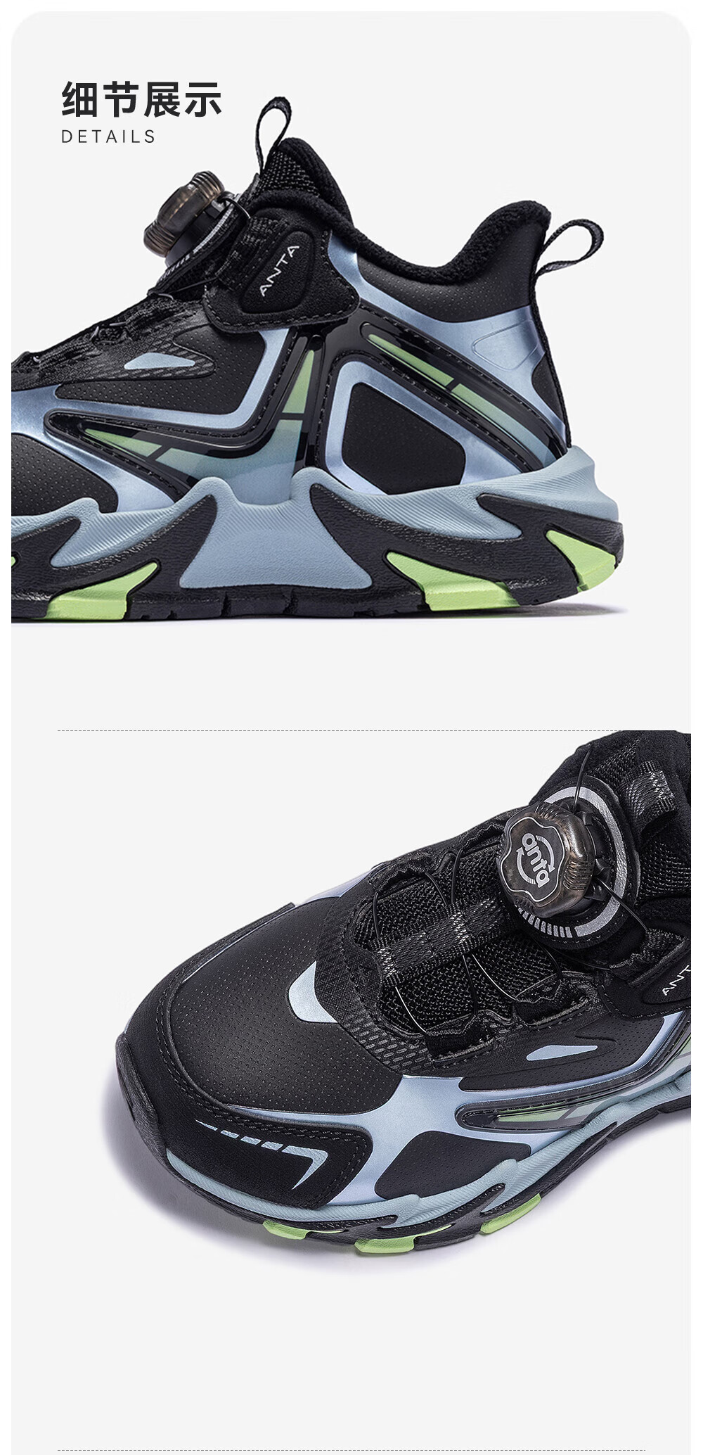 ANTA Children's Cotton Shoes for Boys Dengfeng 3 New Knob Buckle Leather Water-Repellent Cotton Shoes 312549975N Black/Metallic Blue-2 32