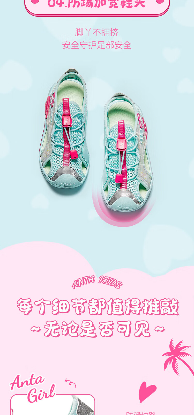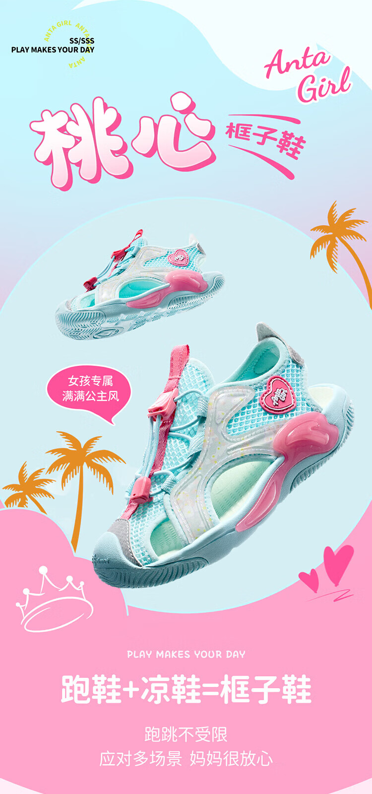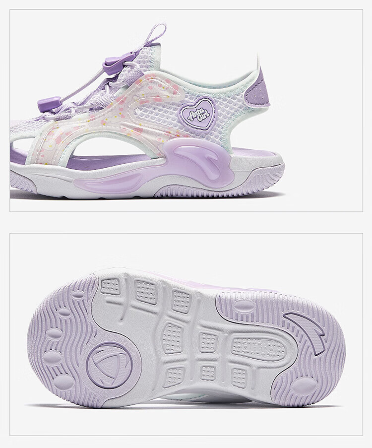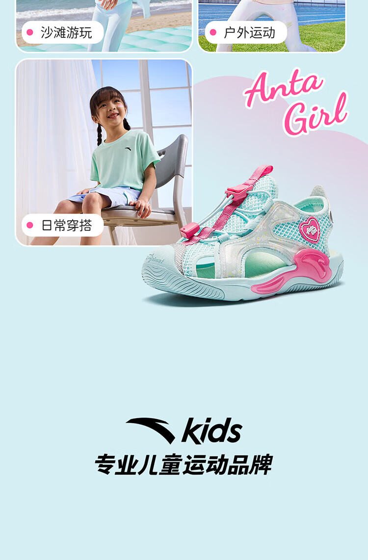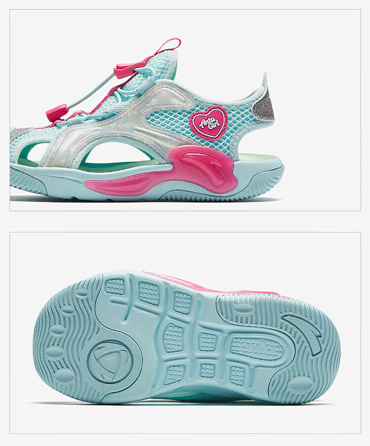 Anta Children's Sandals Girls Beach Shoes Summer Baotou Breathable and Comfortable Outdoor Frame Shoes Mint Blue/Silver-2 30 Foot Length Approximately 18.5cm
