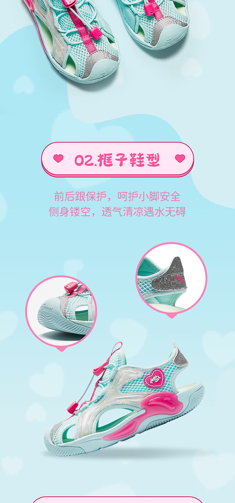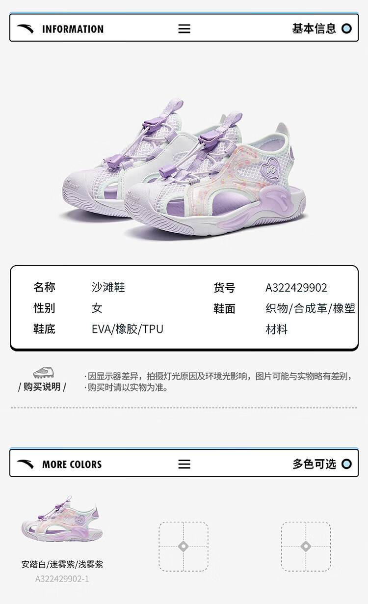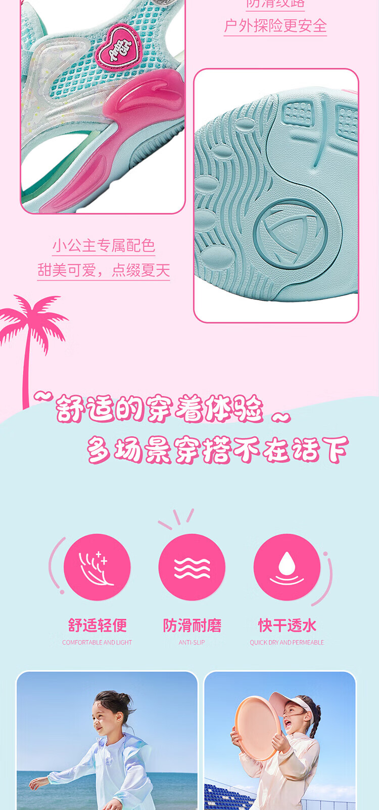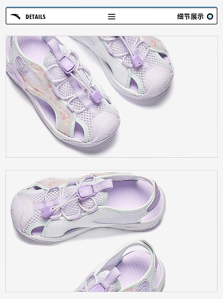 Anta Children's Sandals Girls Beach Shoes Summer Baotou Breathable and Comfortable Outdoor Frame Shoes Mint Blue/Silver-2 30 Foot Length Approximately 18.5cm