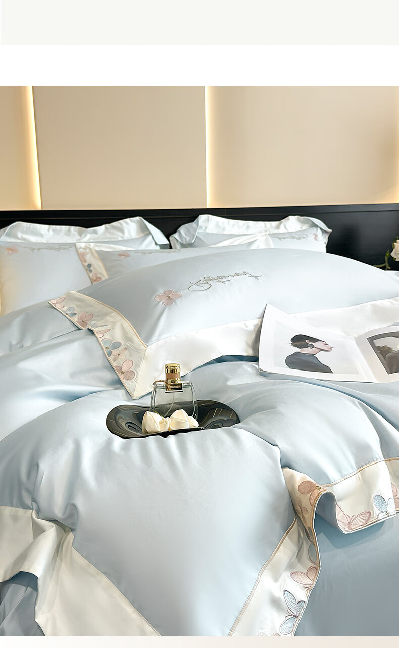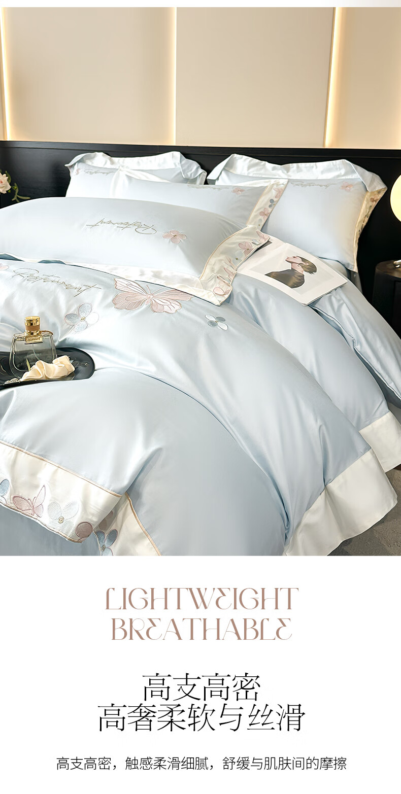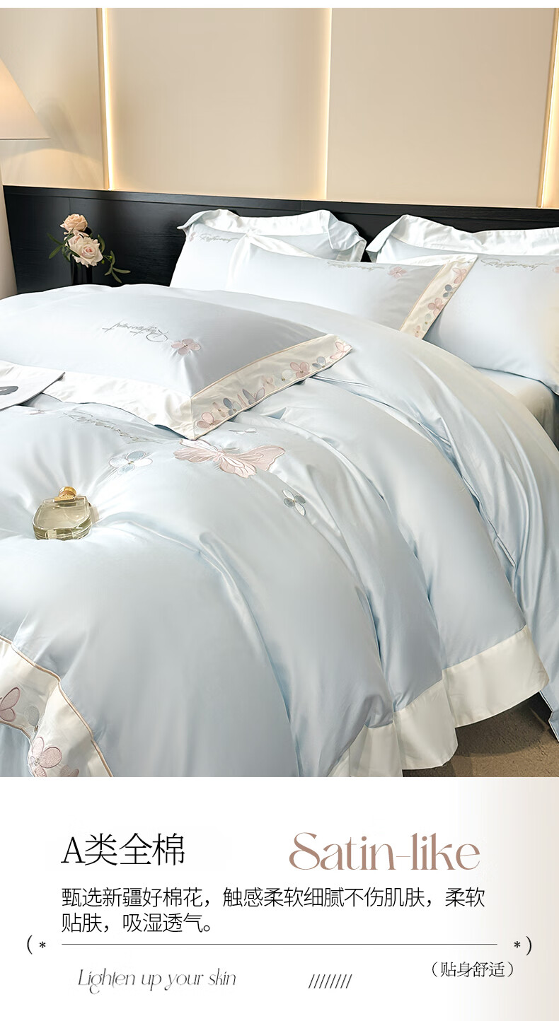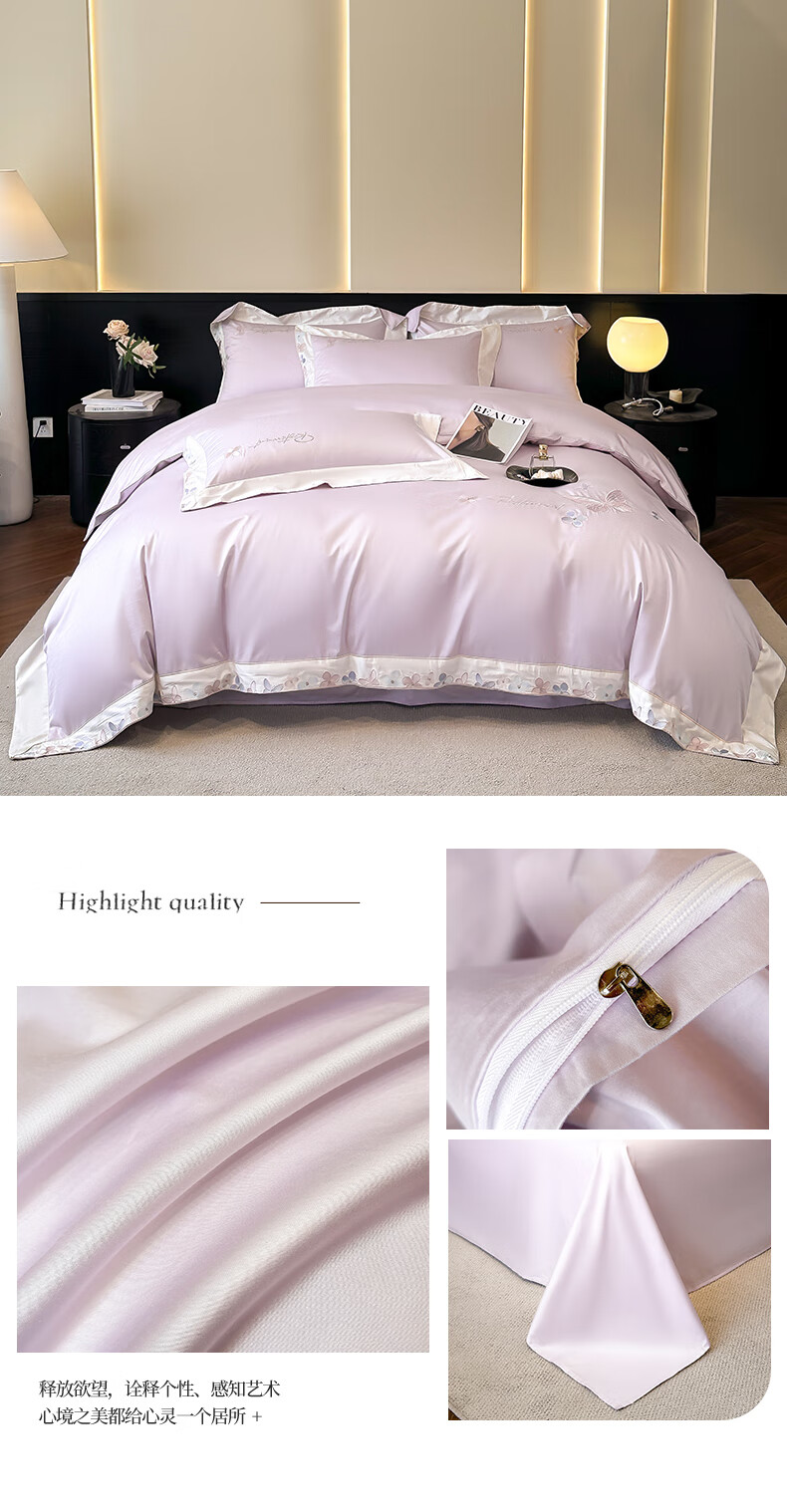 Mercury series high-end class A 200-count long-staple cotton four-piece set pure cotton embroidered quilt cover sheet fitted sheet for naked sleeping on the bed Dielianhua-Dream Purple bed sheet style 1.5 four-piece set-quilt cover 200x230