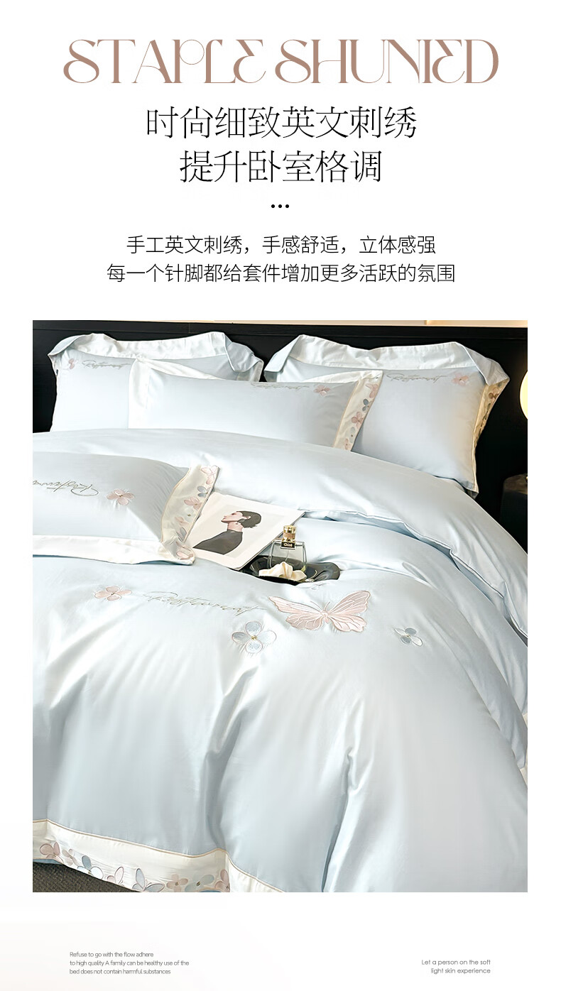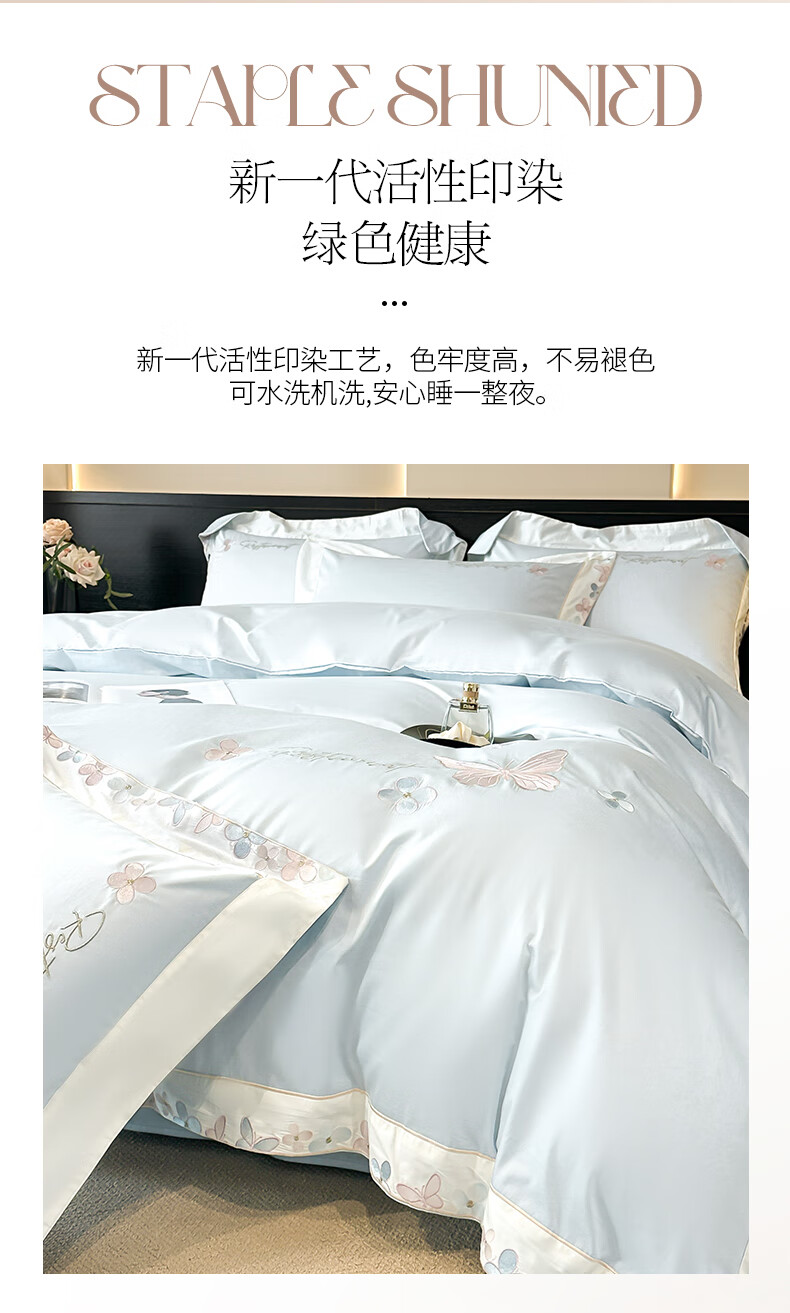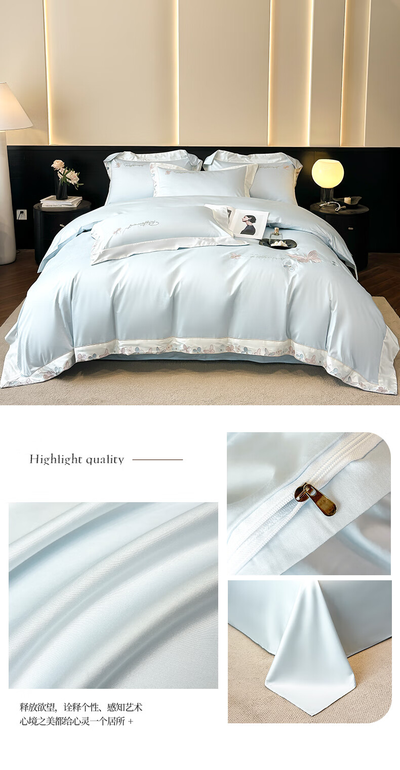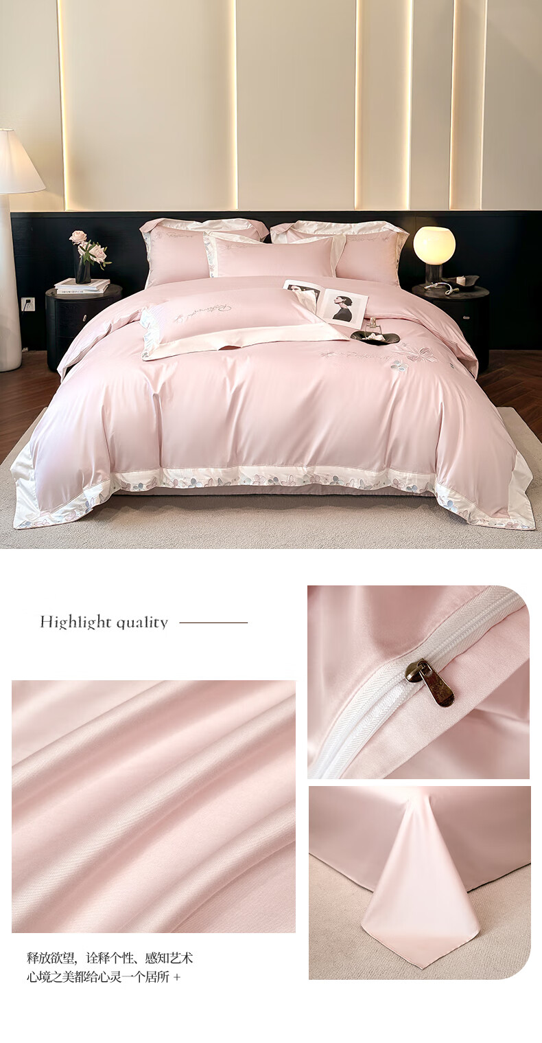 Mercury series high-end class A 200-count long-staple cotton four-piece set pure cotton embroidered quilt cover sheet fitted sheet for naked sleeping on the bed Dielianhua-Dream Purple bed sheet style 1.5 four-piece set-quilt cover 200x230