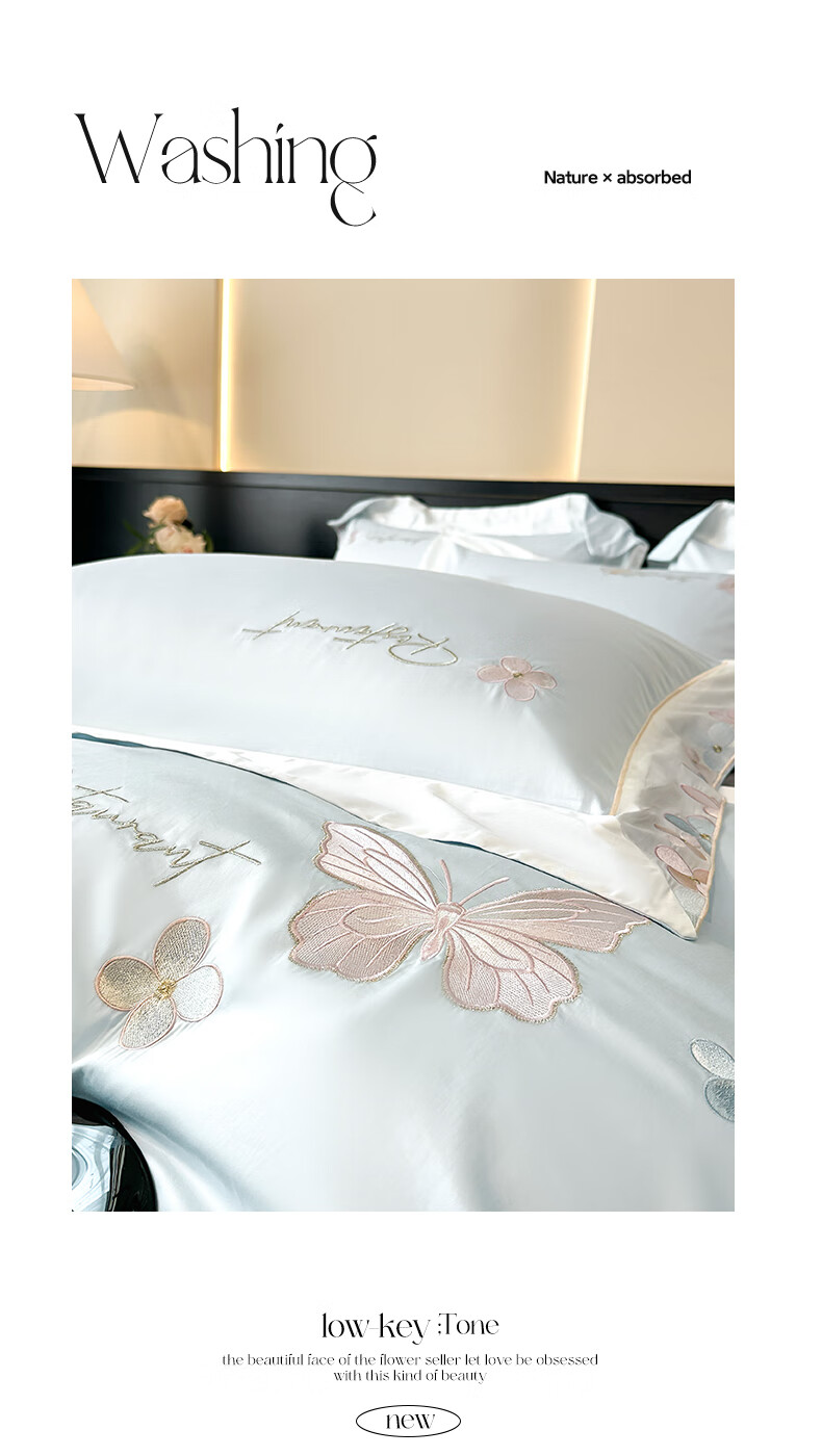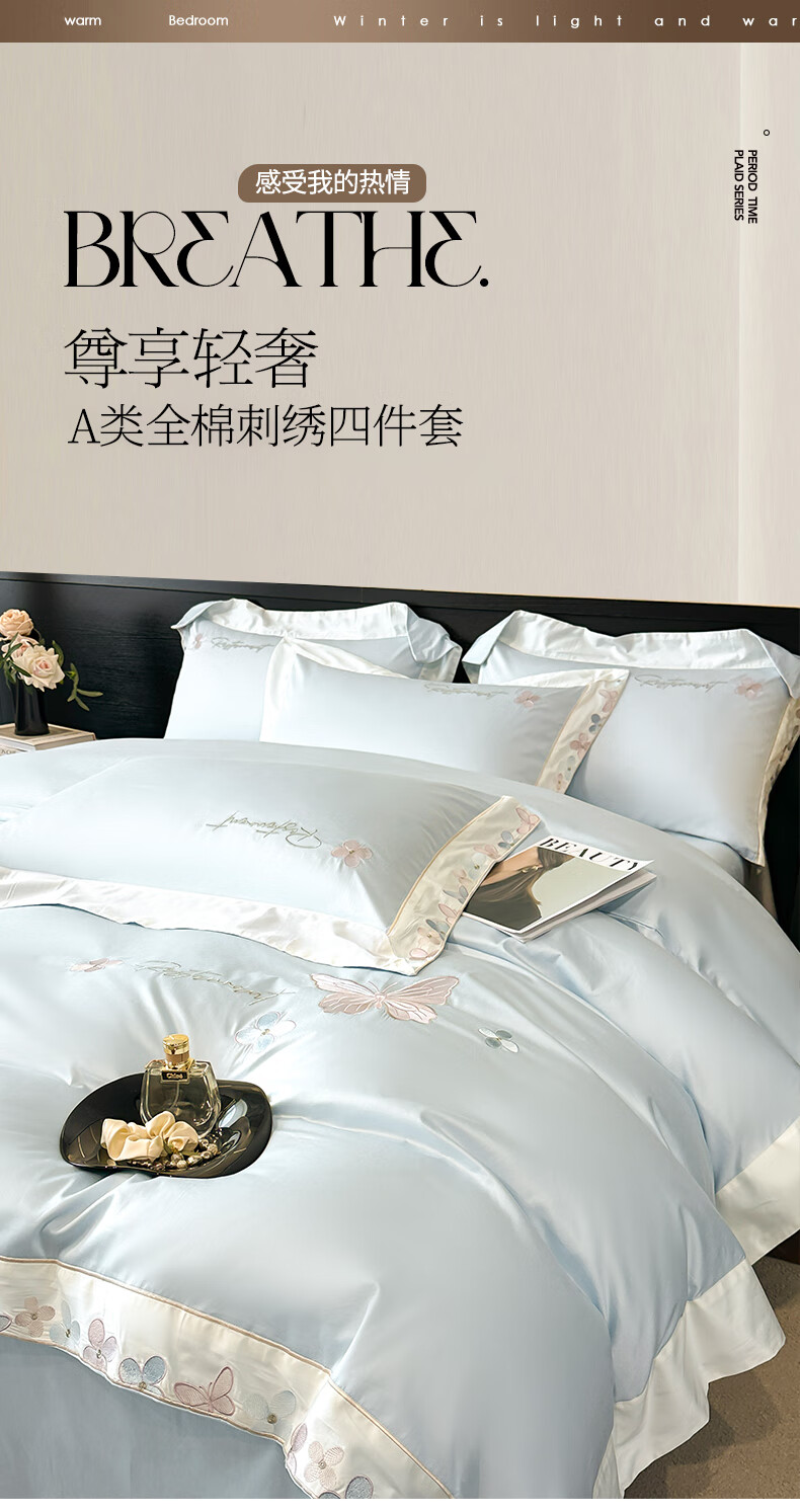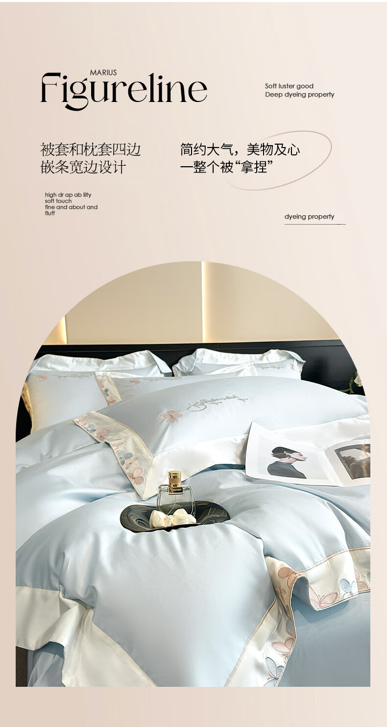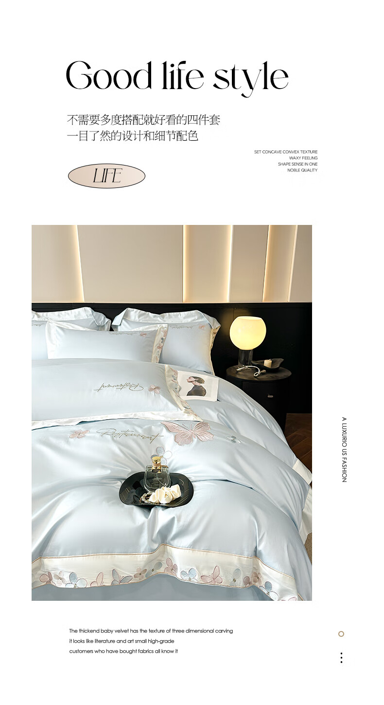 Mercury series high-end class A 200-count long-staple cotton four-piece set pure cotton embroidered quilt cover sheet fitted sheet for naked sleeping on the bed Dielianhua-Dream Purple bed sheet style 1.5 four-piece set-quilt cover 200x230