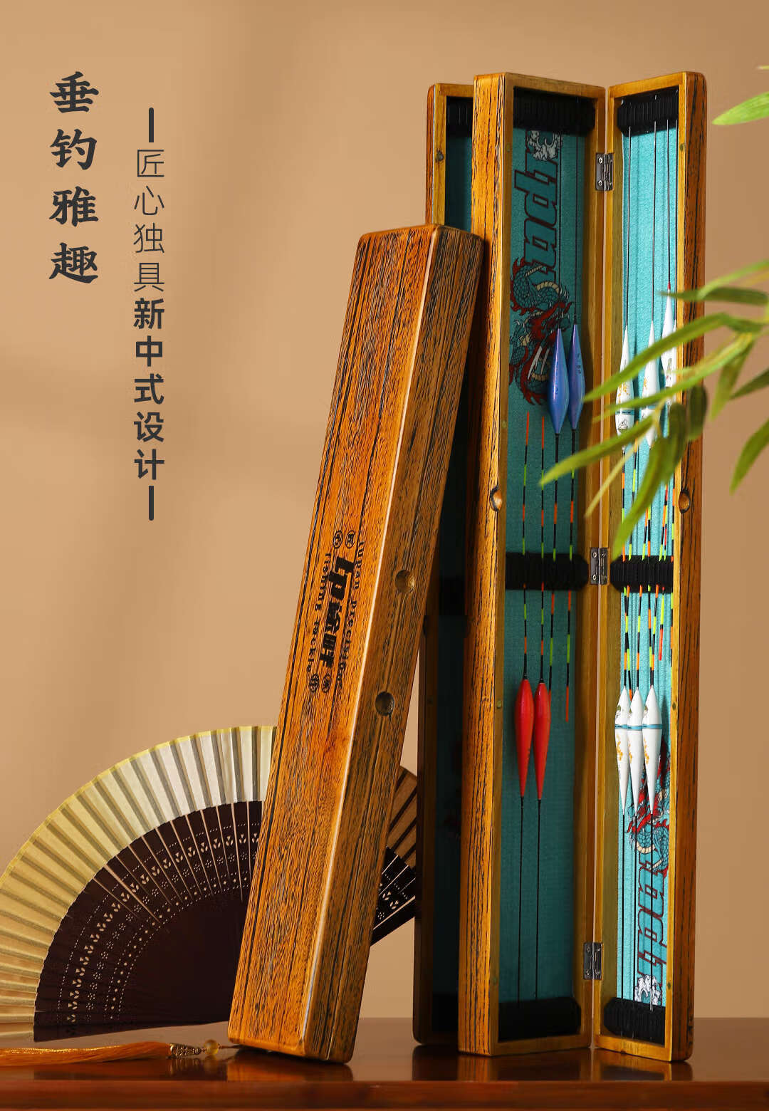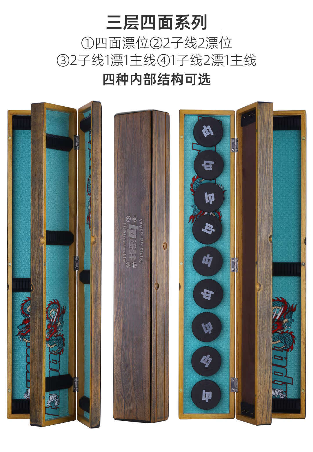 Big round and small round solid wooden float box Paulownia multifunctional fishing gear box extended three-in-one multi-layer float box main line sub-line upgrade 55 brushed yellow double-sided float box