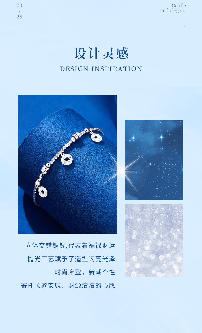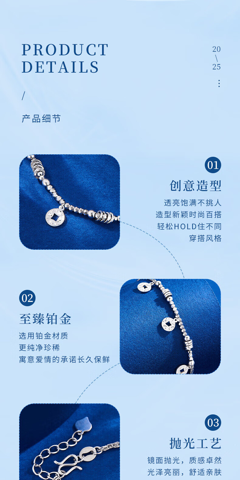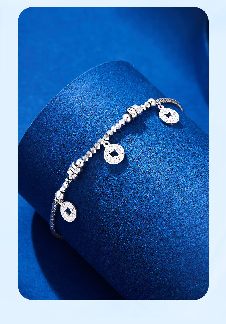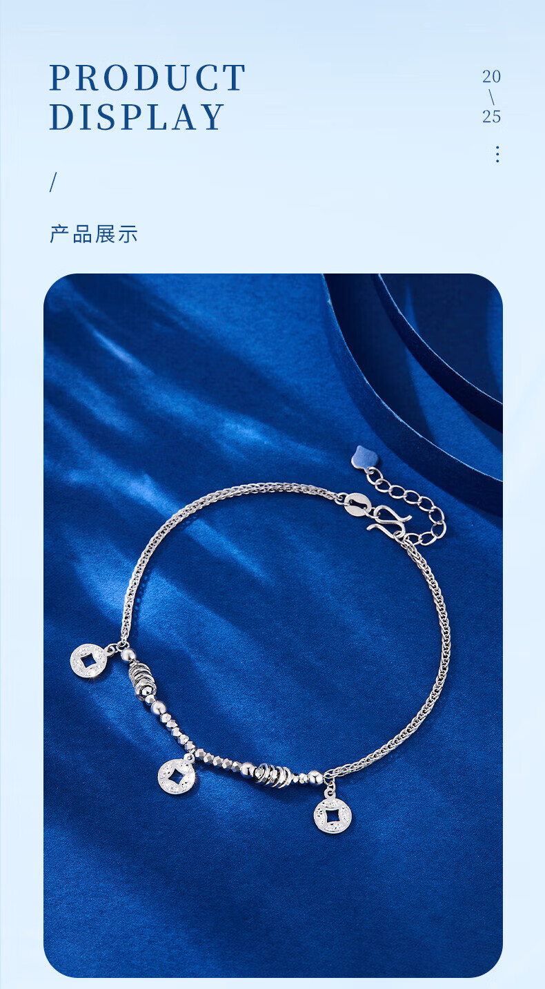 Lao Fengxiang pt950 platinum crushed ice copper coin bracelet for women, white money and Duoduo jewelry, Valentine's Day birthday gift for girlfriend, platinum crushed ice copper coin bracelet, about 5.3g, brand gift box