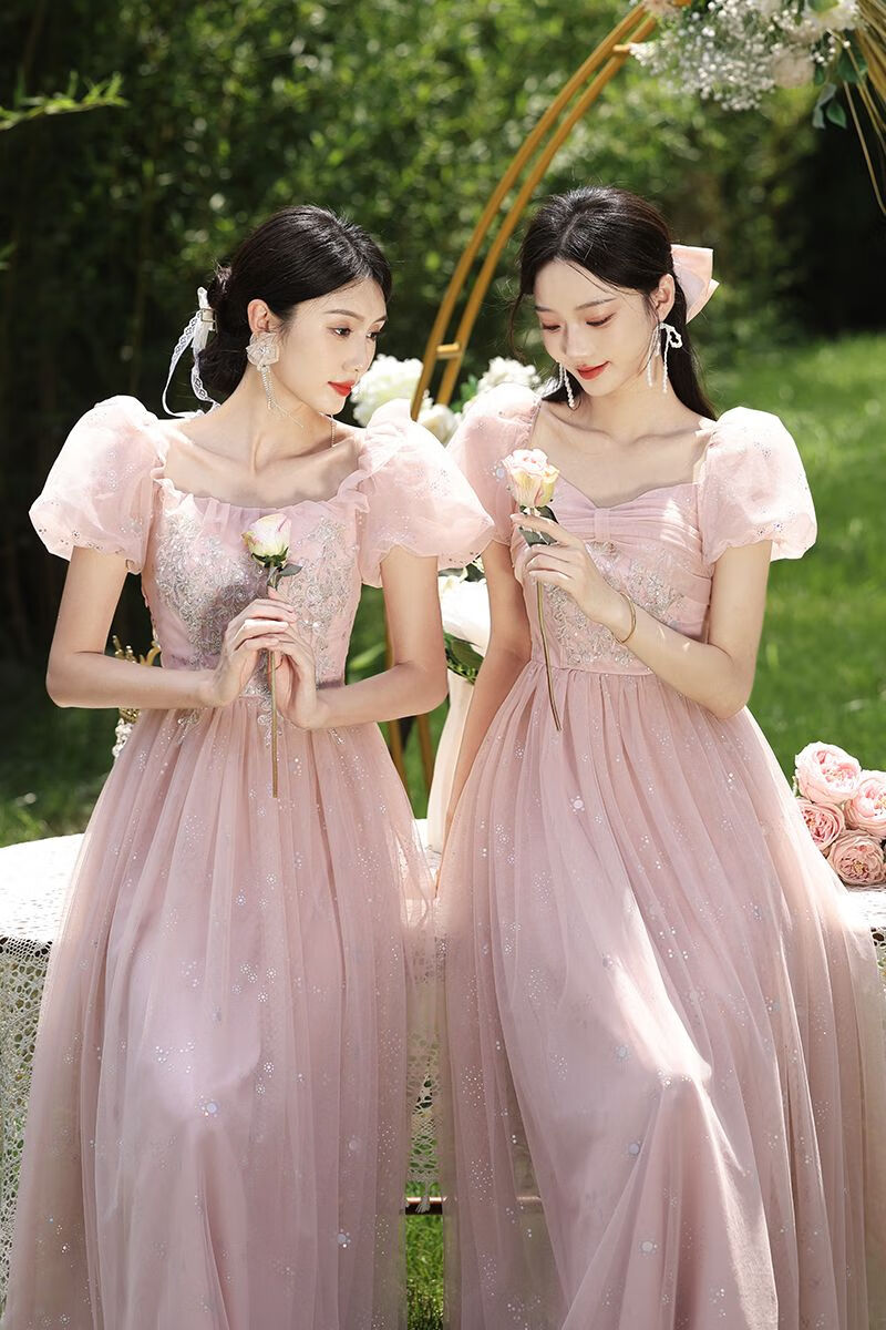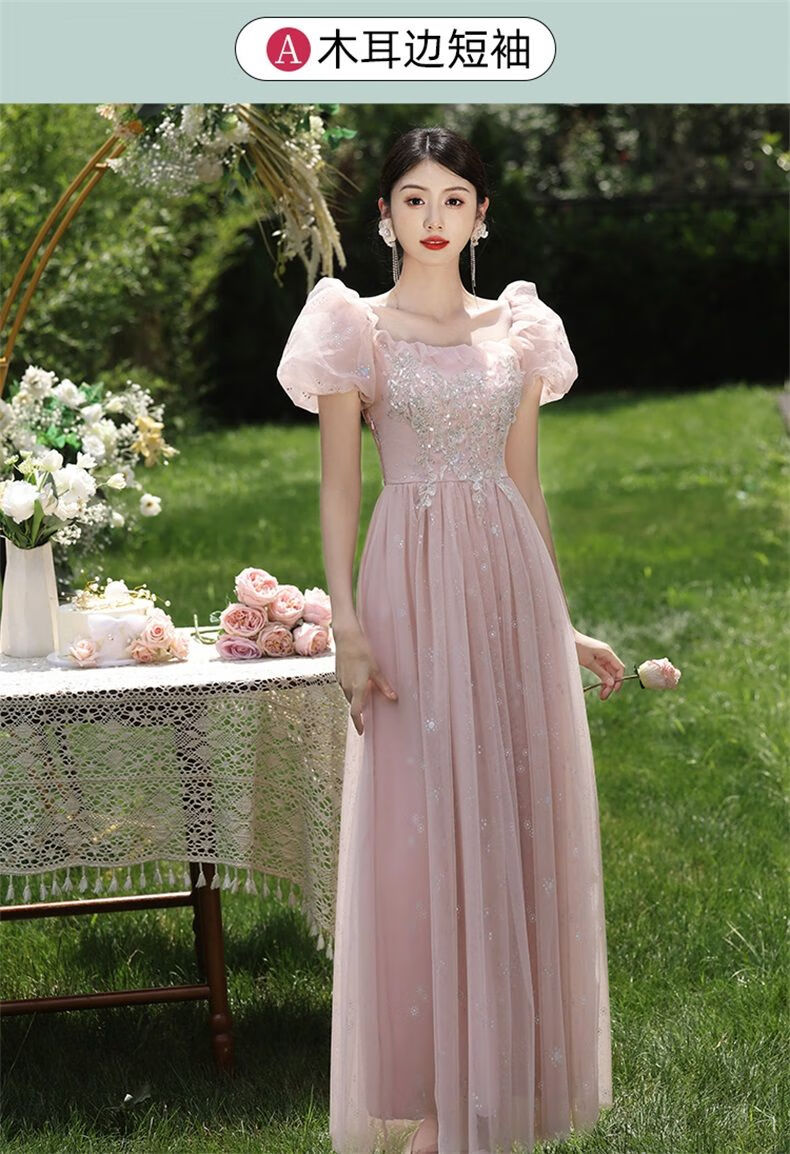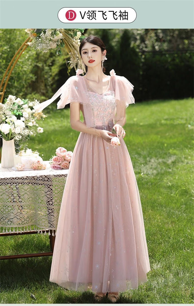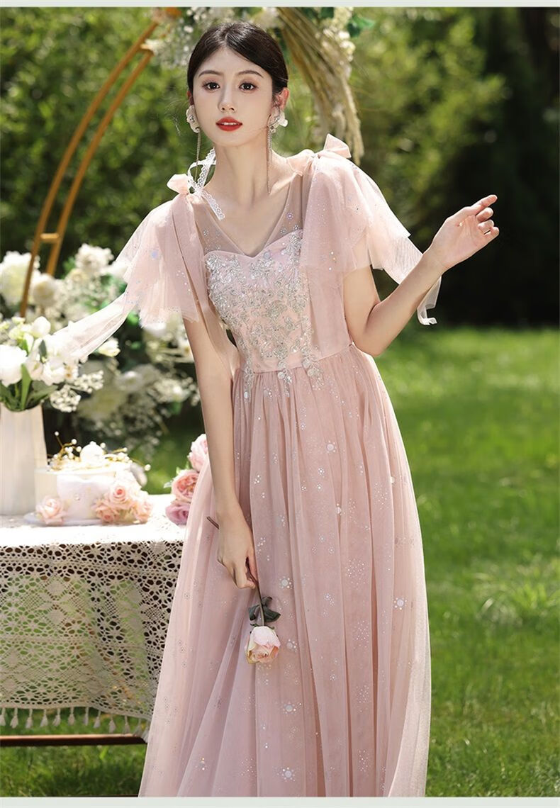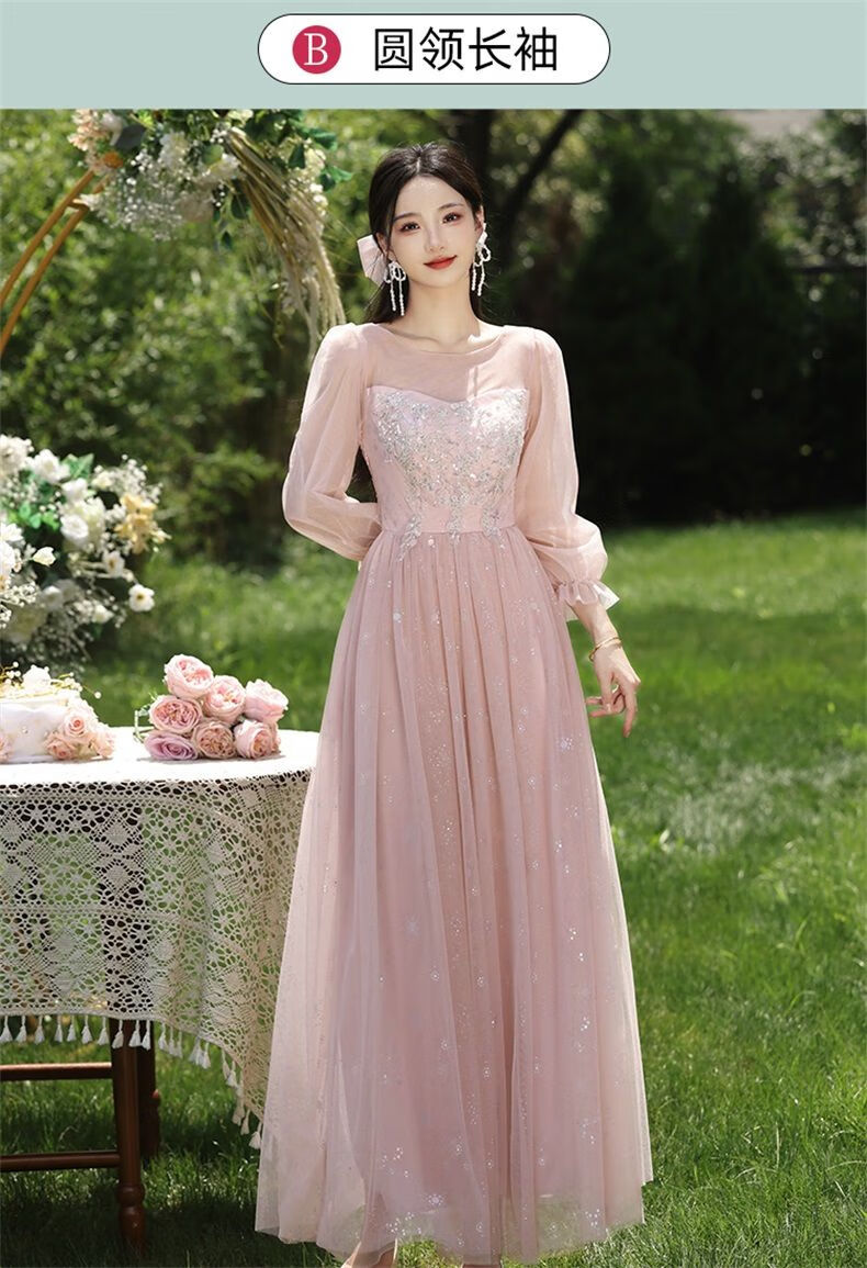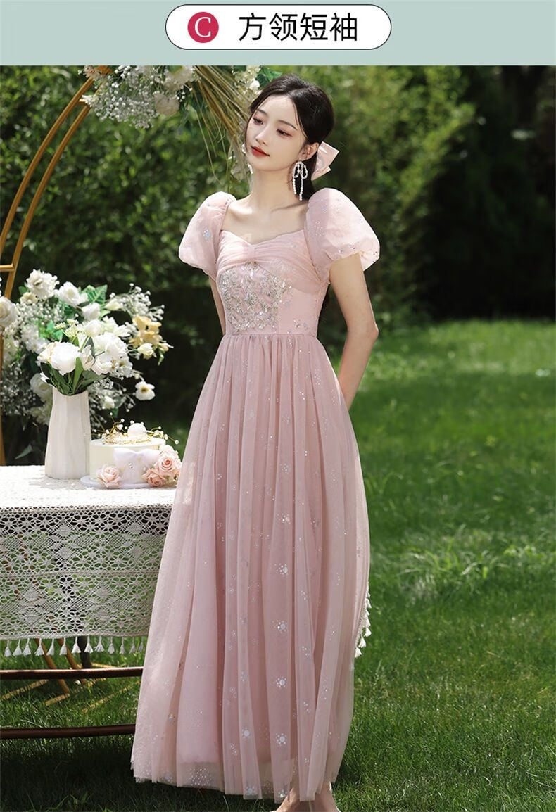 Chongyou 2025 New Fairy Bridesmaid Dress Pink Long Skirt Female Dress 20-Pink-B Style-Long Style One Size 80-107Jin Jin is equal to 0.5 kg