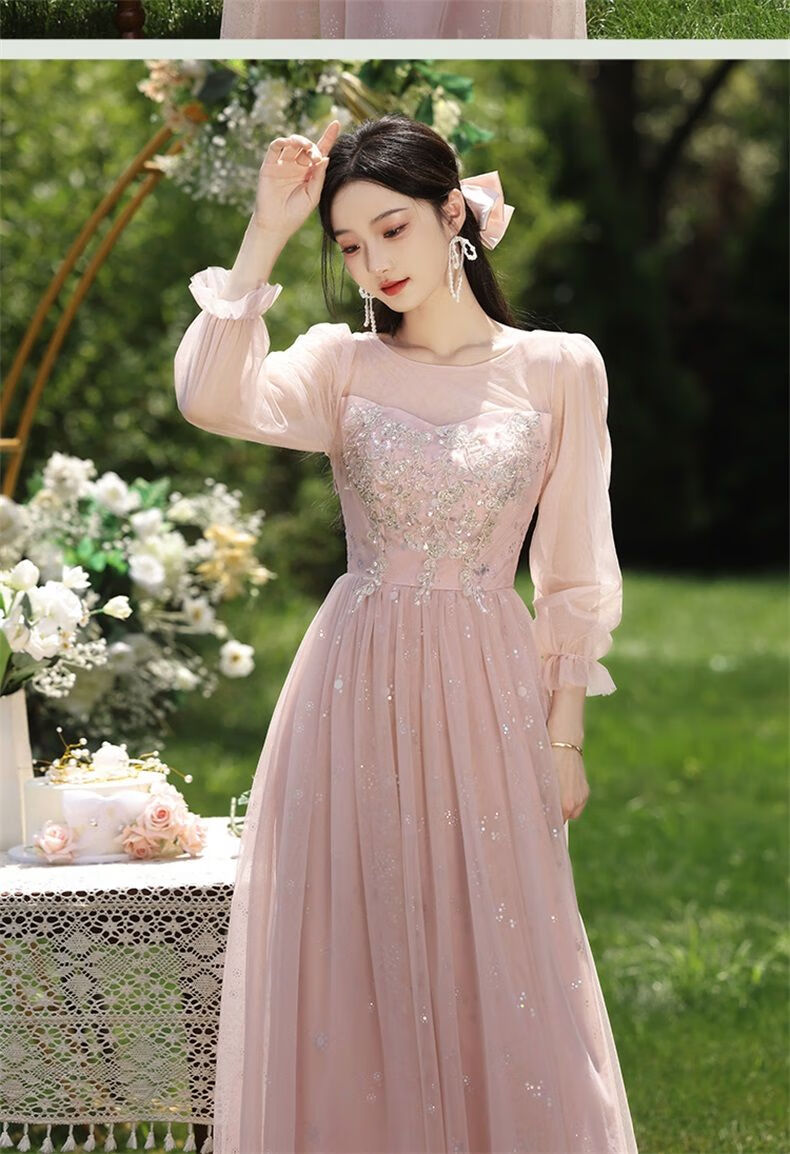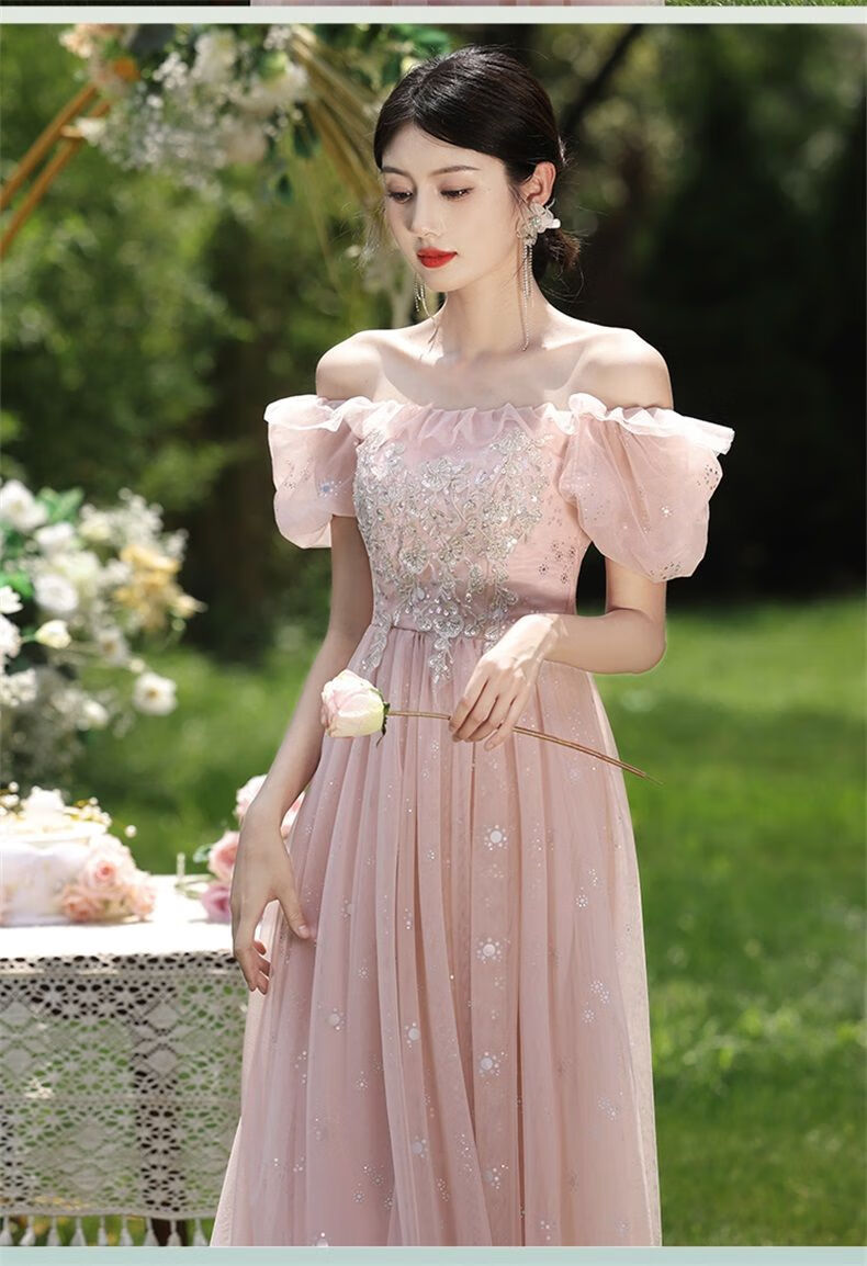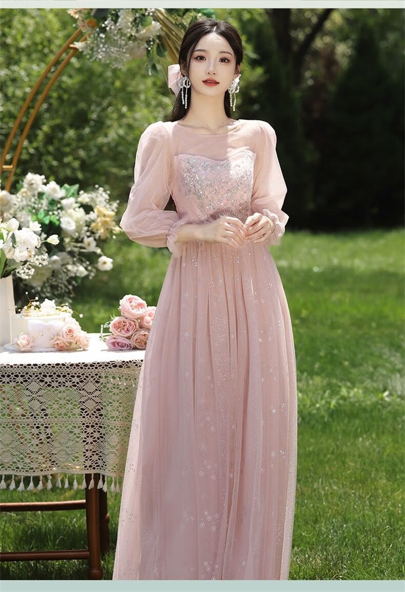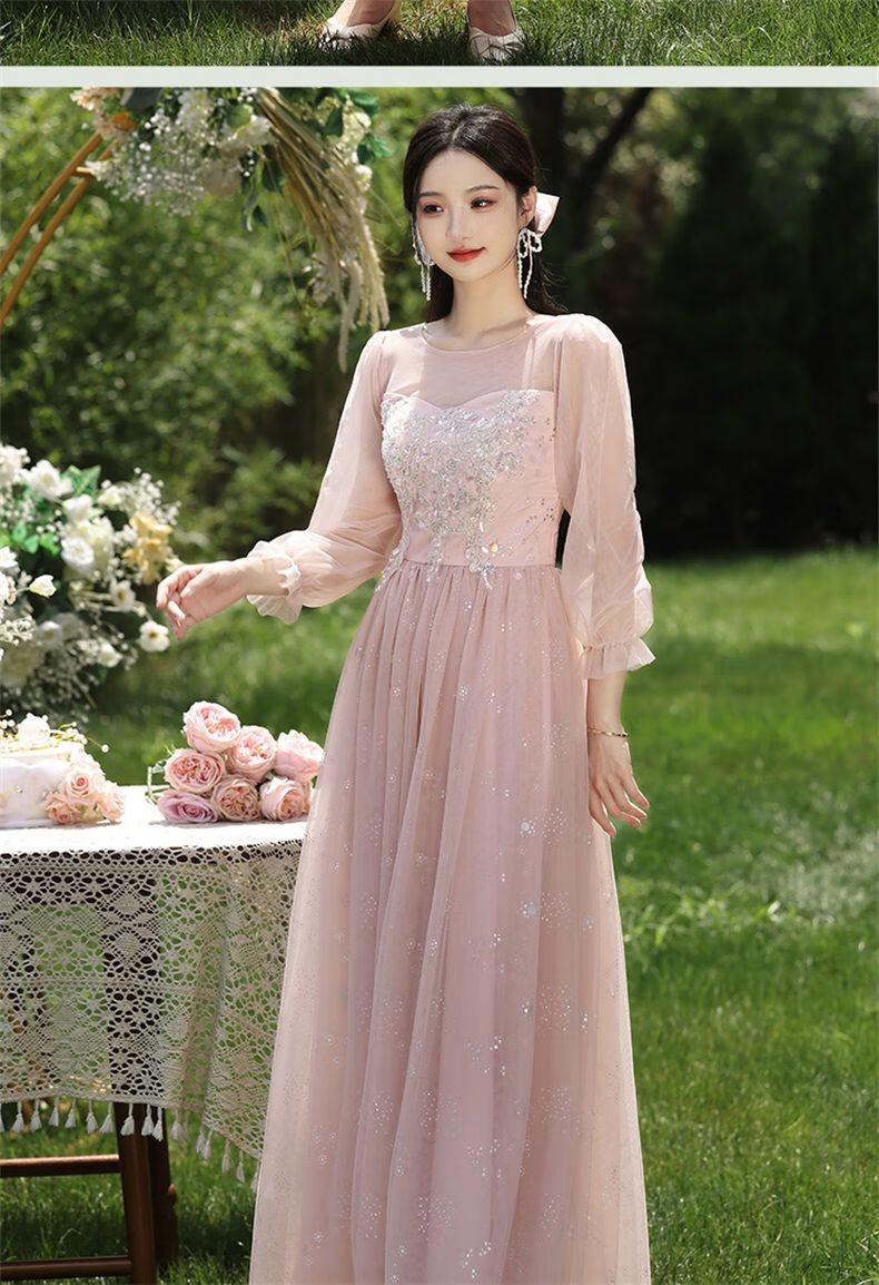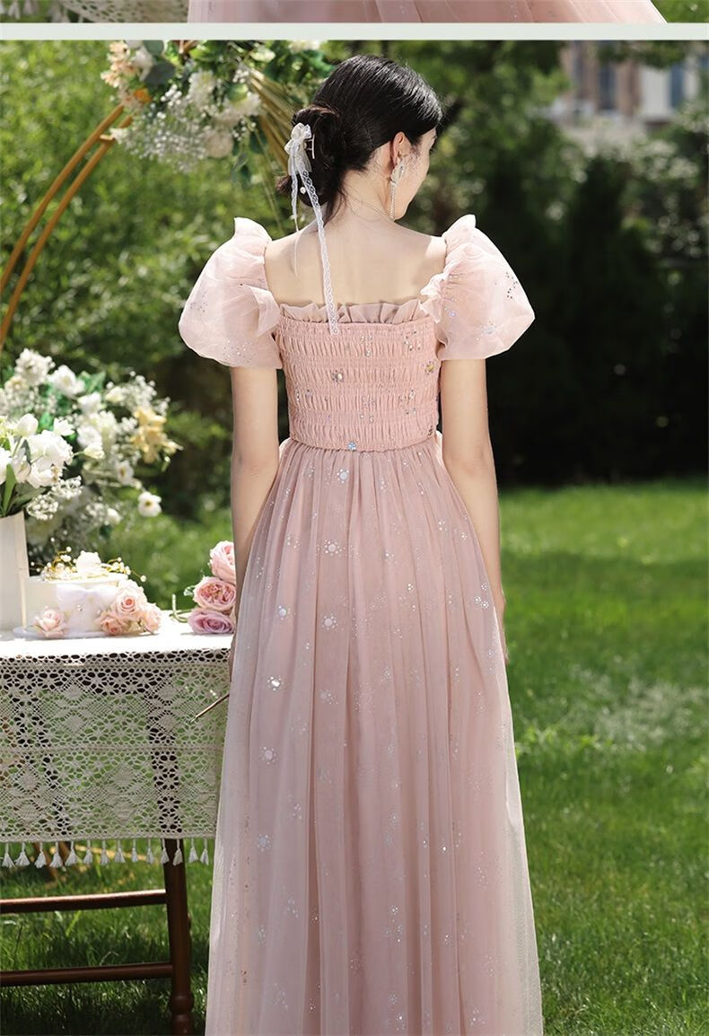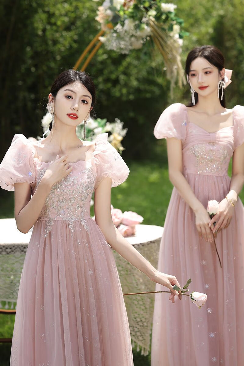 Chongyou 2025 New Fairy Bridesmaid Dress Pink Long Skirt Female Dress 20-Pink-B Style-Long Style One Size 80-107Jin Jin is equal to 0.5 kg