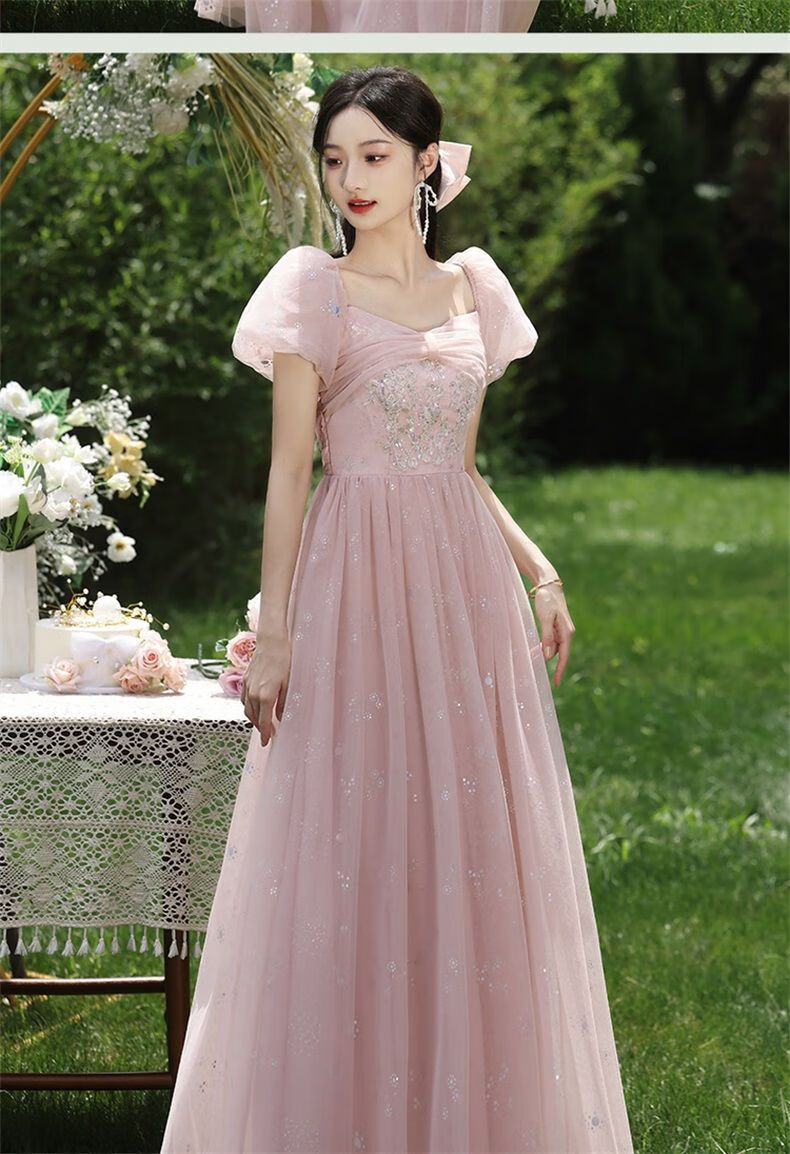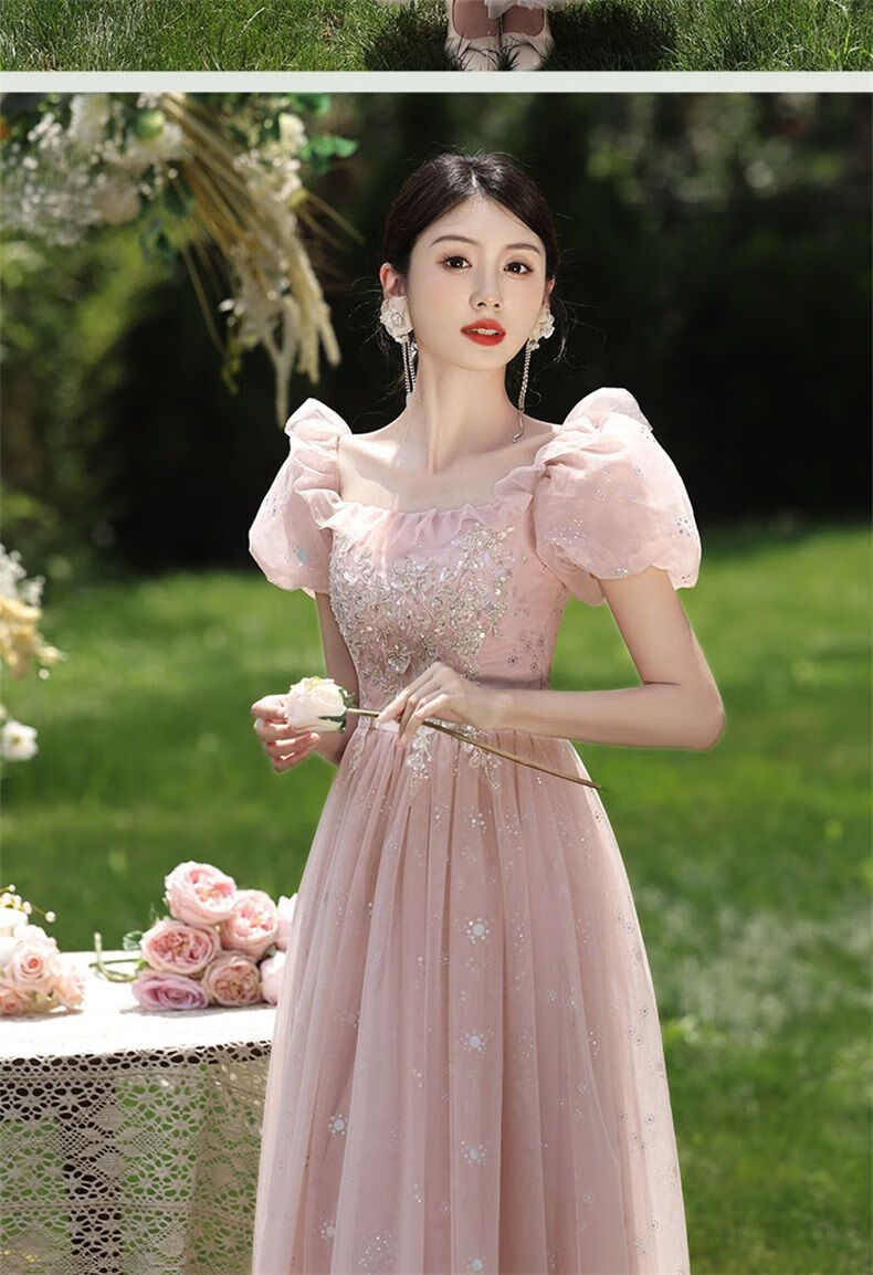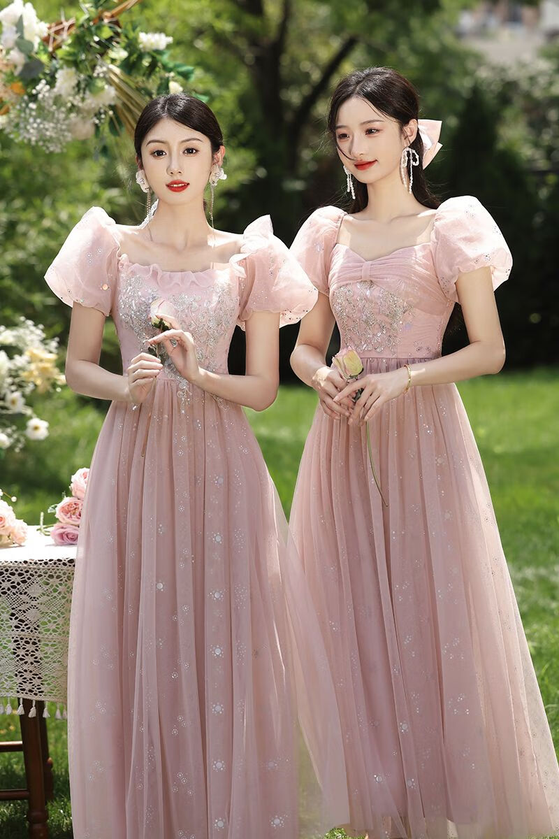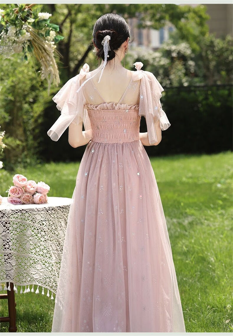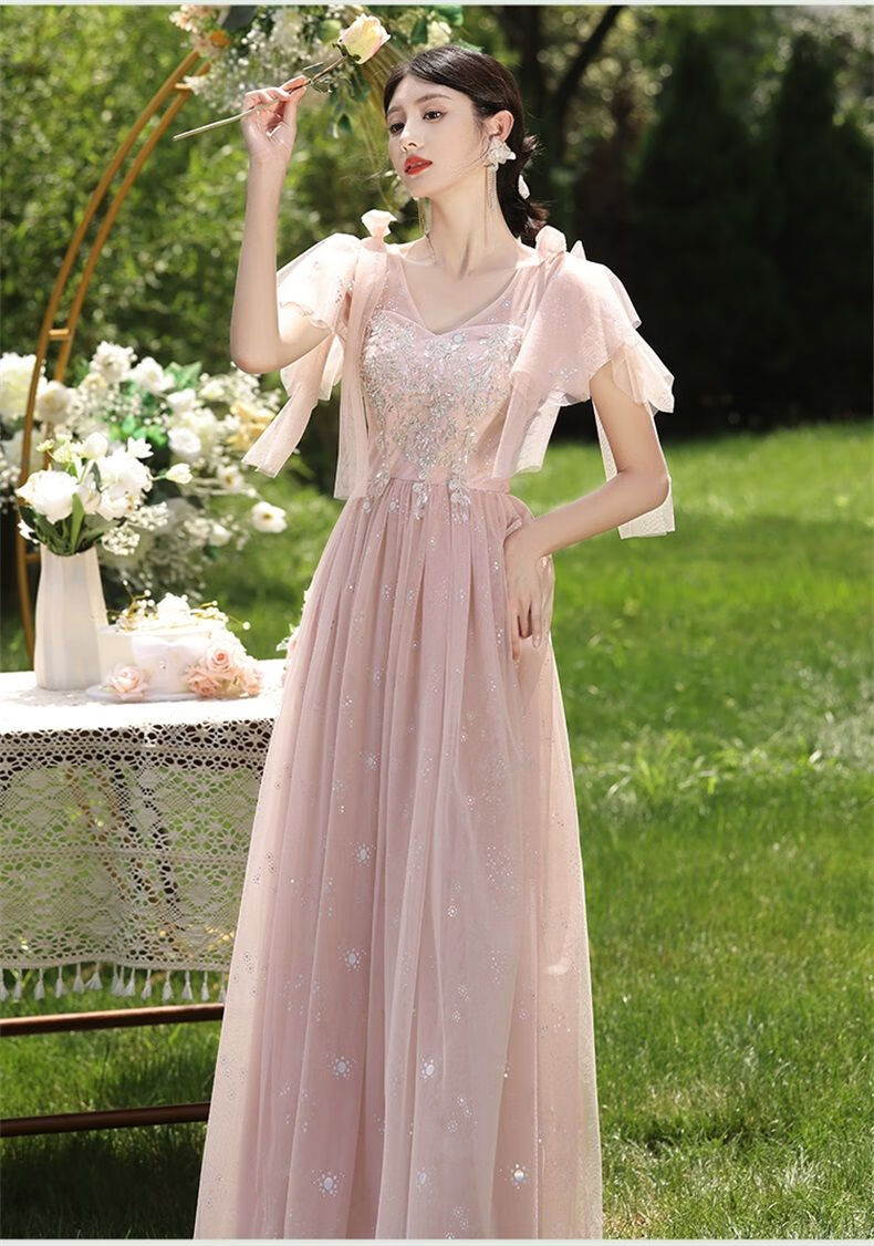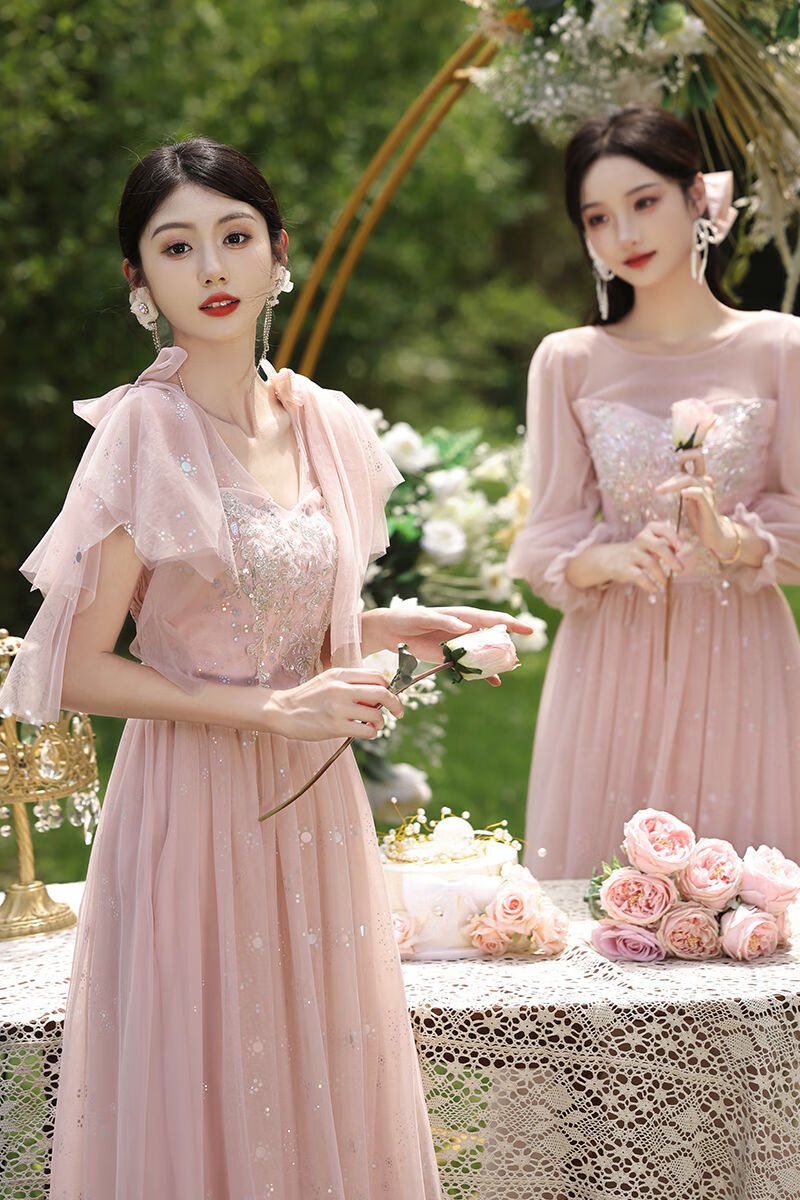 Chongyou 2025 New Fairy Bridesmaid Dress Pink Long Skirt Female Dress 20-Pink-B Style-Long Style One Size 80-107Jin Jin is equal to 0.5 kg