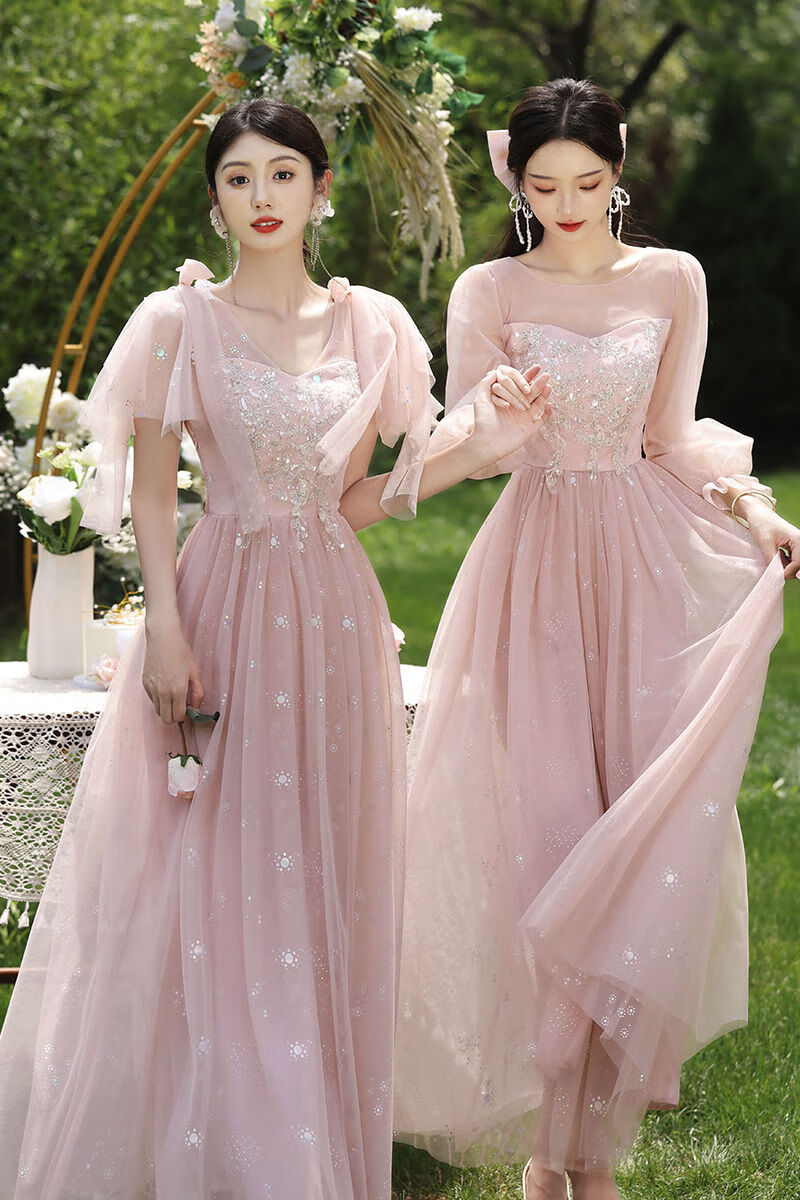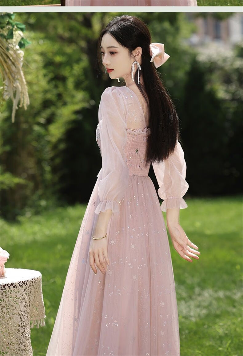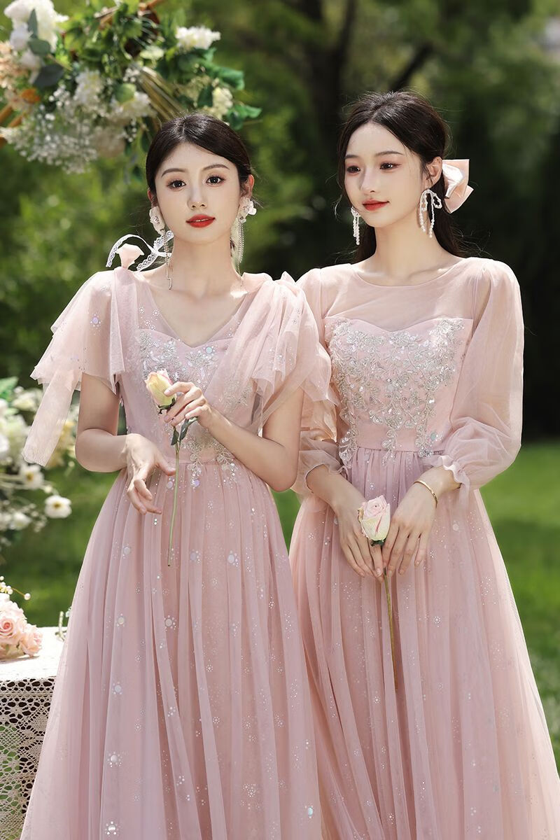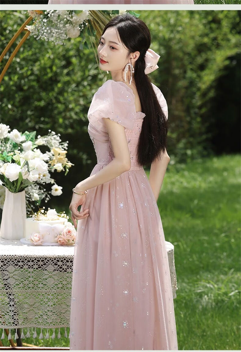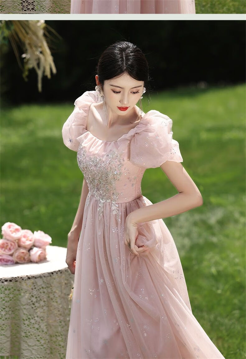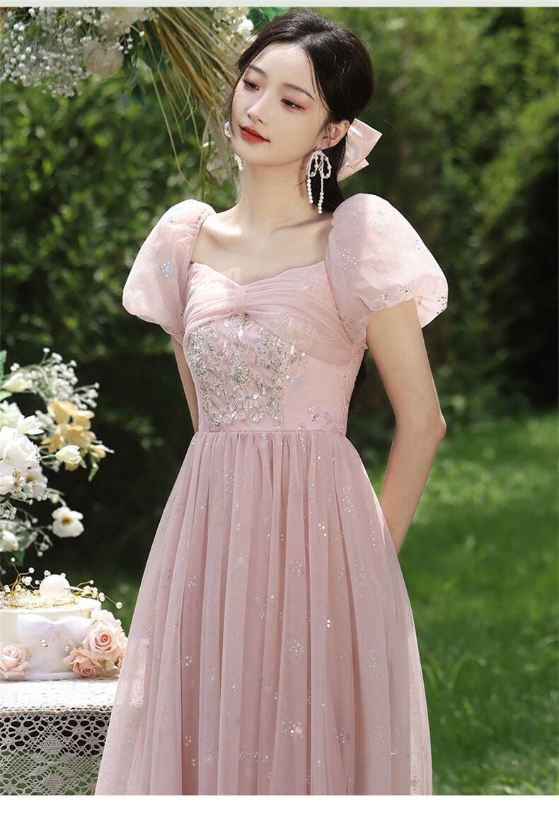 Chongyou 2025 New Fairy Bridesmaid Dress Pink Long Skirt Female Dress 20-Pink-B Style-Long Style One Size 80-107Jin Jin is equal to 0.5 kg