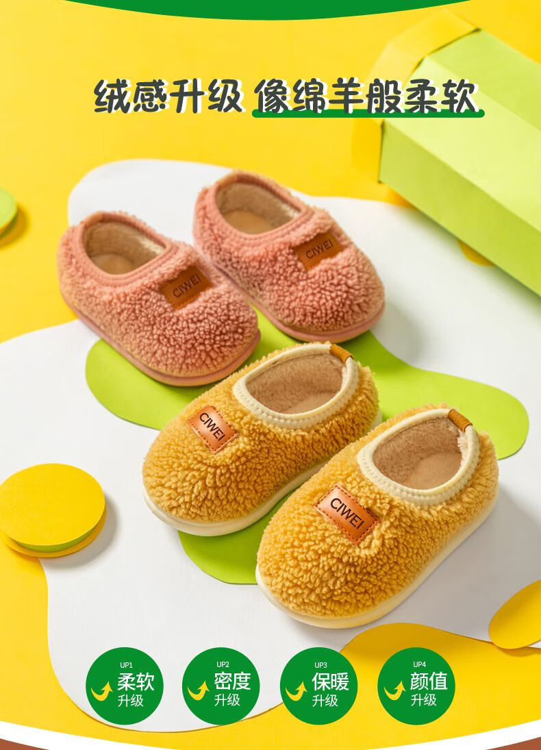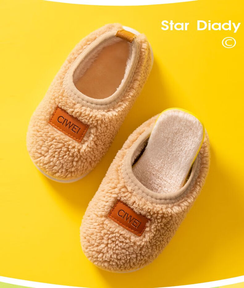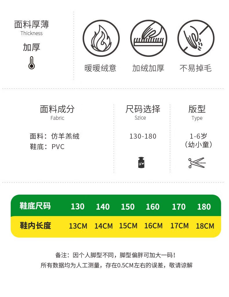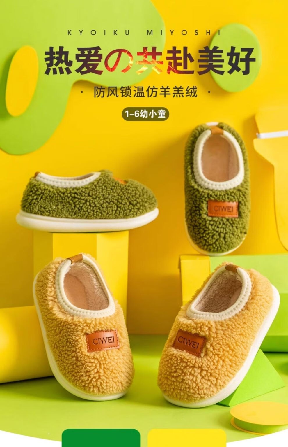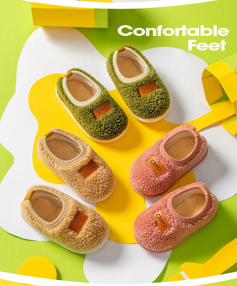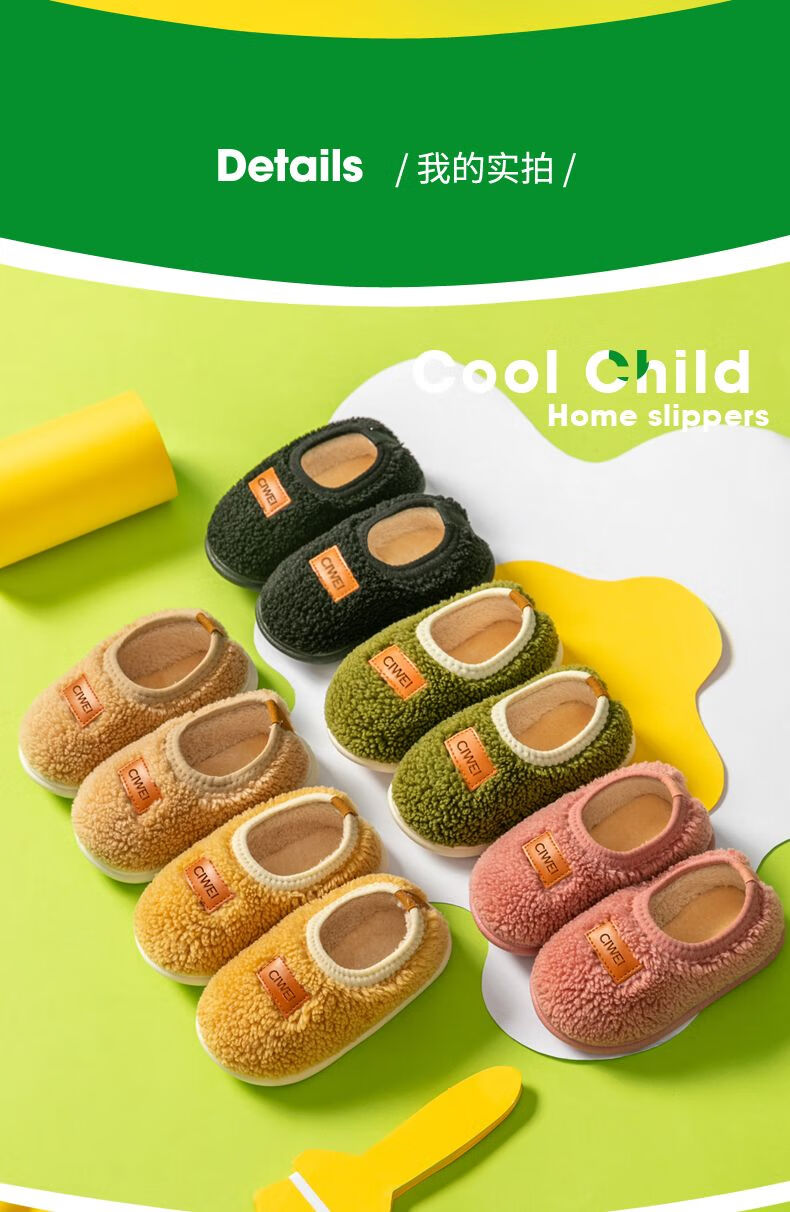 Children's cotton slippers, winter boys' indoor home shoes, non-slip soft soles, plush cotton shoes for girls and babies, cypress green, non-slip soft soles, size 26 27, suitable for feet 17-18cm long