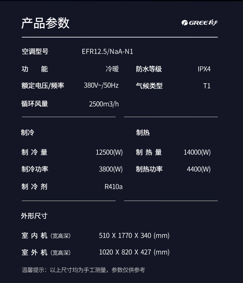 Woviti Gree computer room base station air conditioner variable frequency heating and cooling power outage memory 5 HP first class energy efficiency 380V UPS power supply Gree EFR12.5/NaA-N1