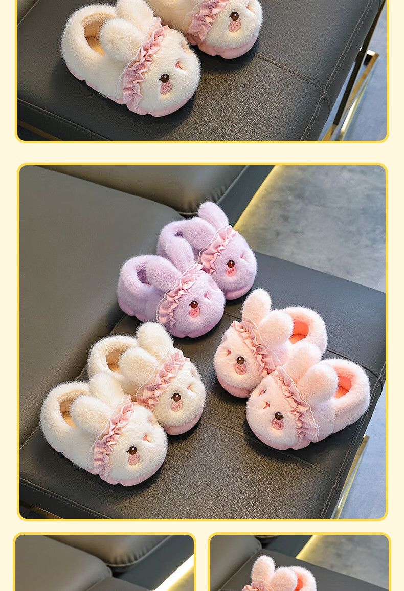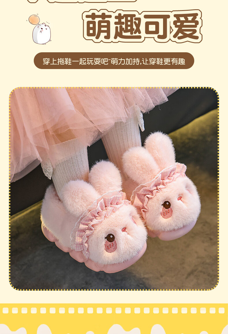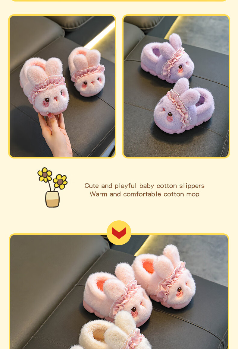 Rabbit Children's Cotton Slippers for Boys Winter Cartoon Cute Non-Slip Indoor Bath Soft Soled Baby Slippers Upgraded Eco-friendly Material White (Heel Included) Size 12 24/25 (Shoe Inner Length 15CM Suitable for Foot Length 14