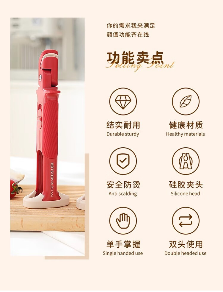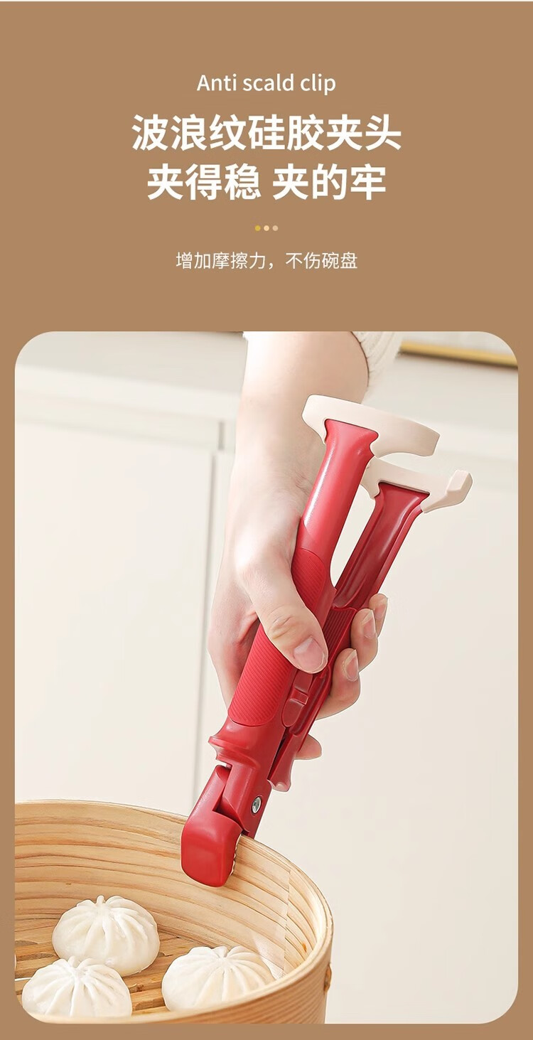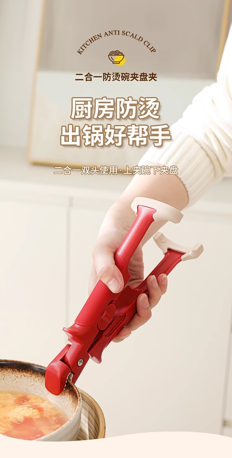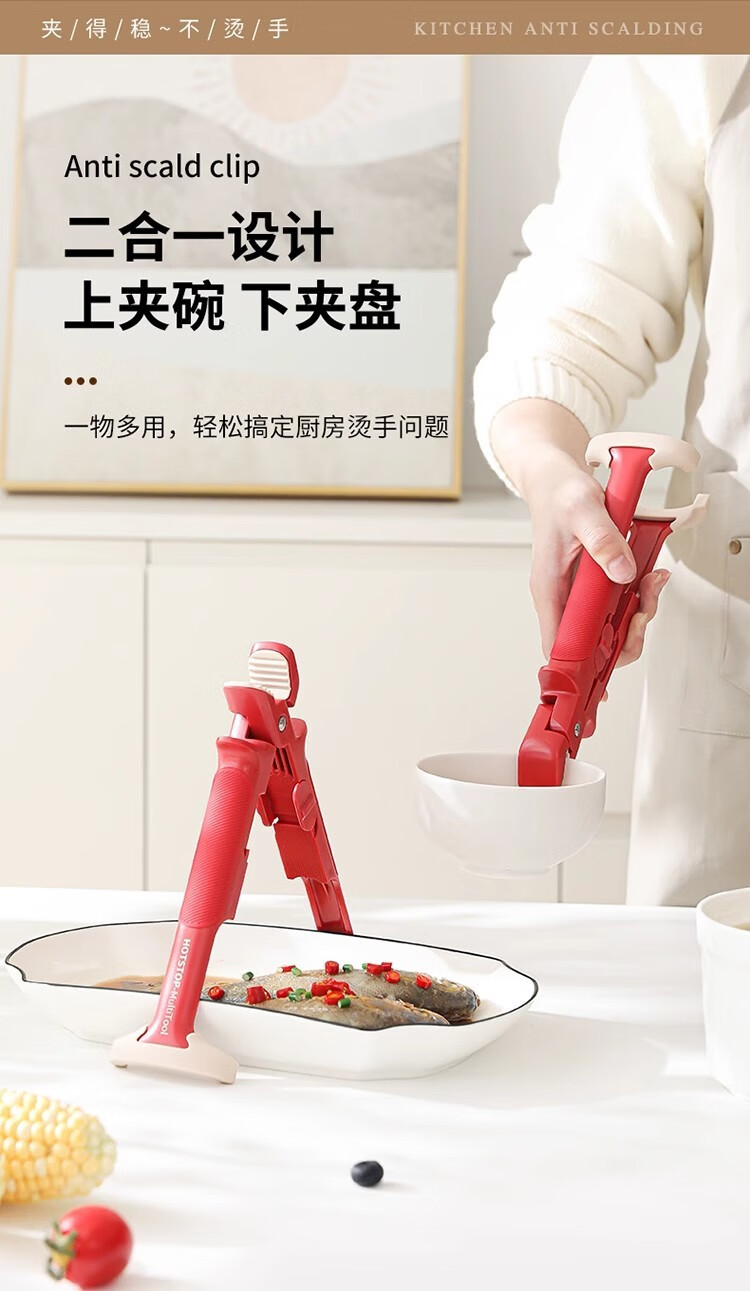 Fat Donglai's same style bowl holder kitchen 2-in-1 non-slip and anti-scalding bowl holder artifact 1 pack, red and white shark clip, multi-functional * silicone anti-slip