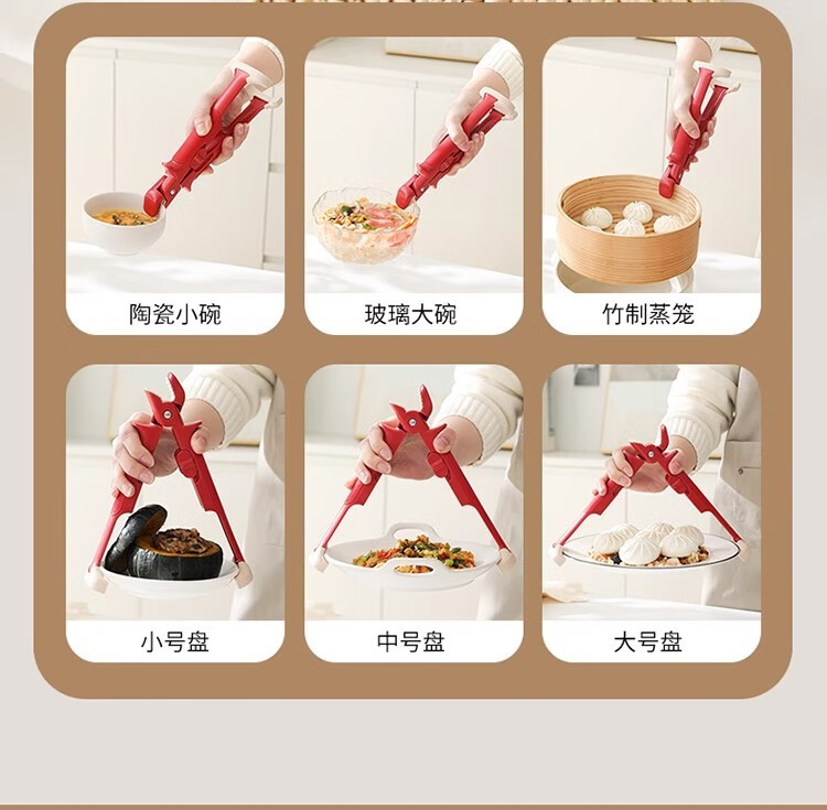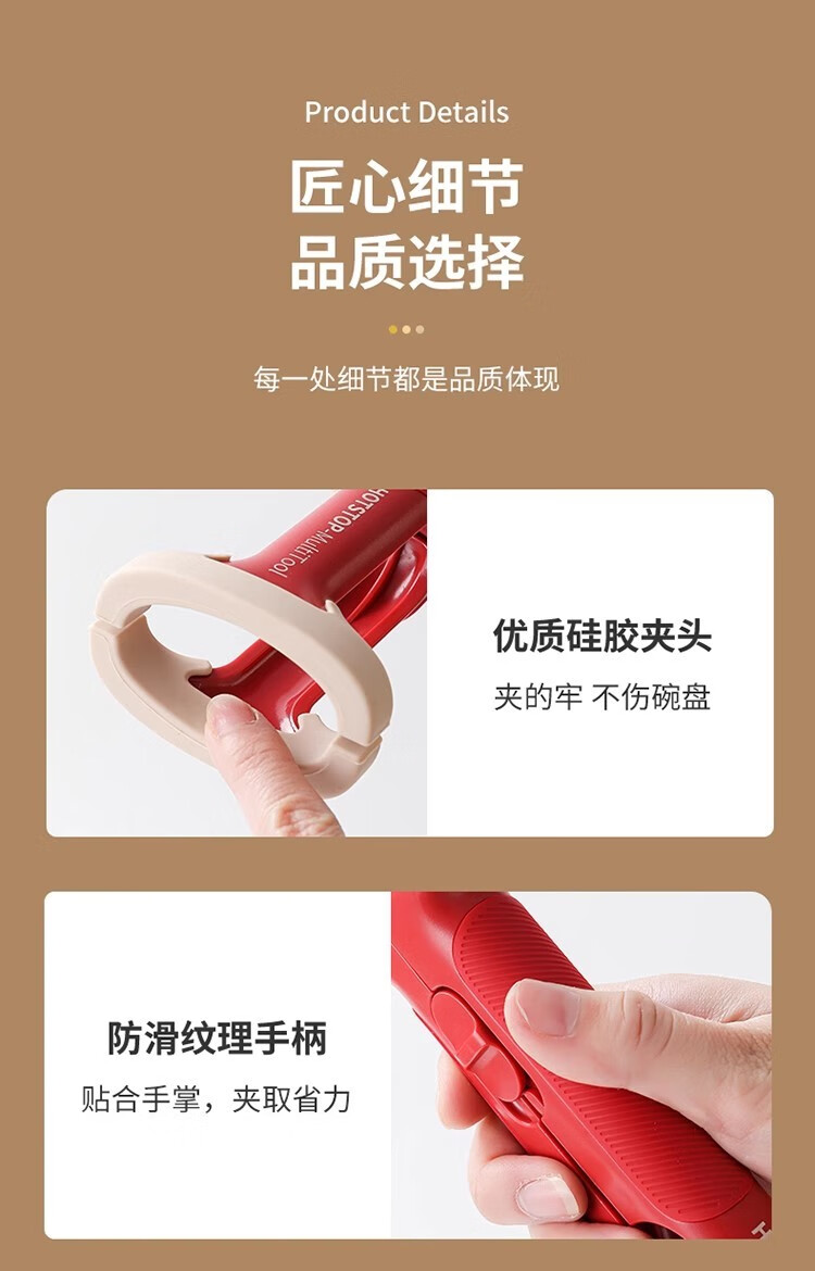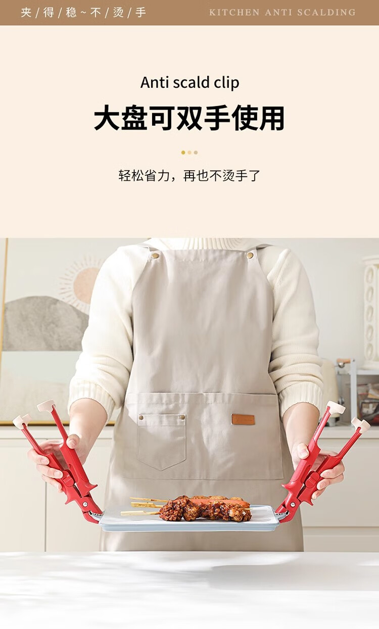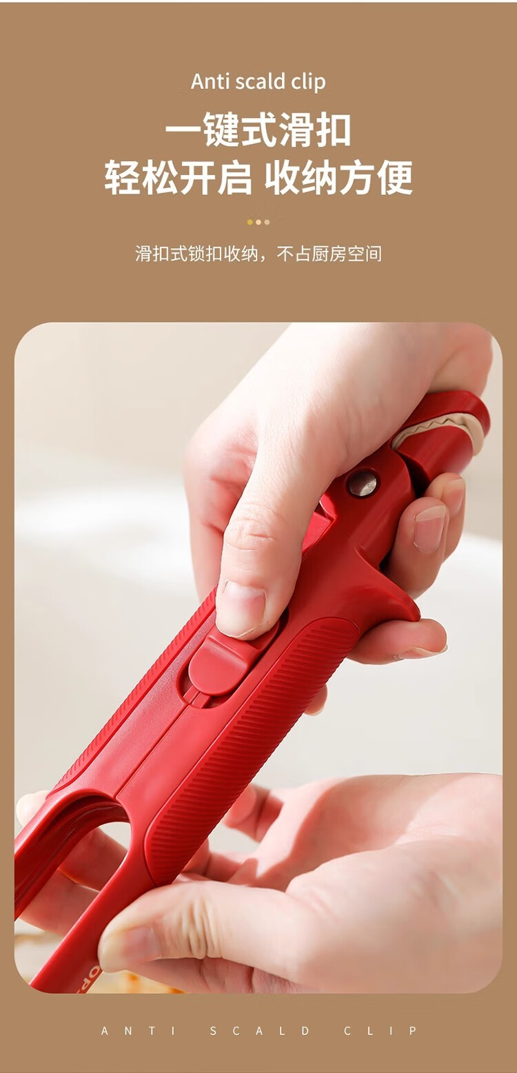 Fat Donglai's same style bowl holder kitchen 2-in-1 non-slip and anti-scalding bowl holder artifact 1 pack, red and white shark clip, multi-functional * silicone anti-slip