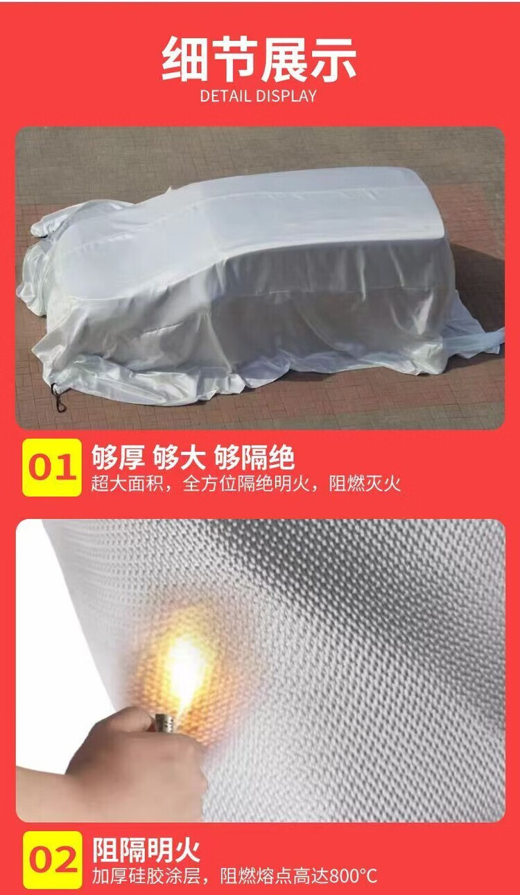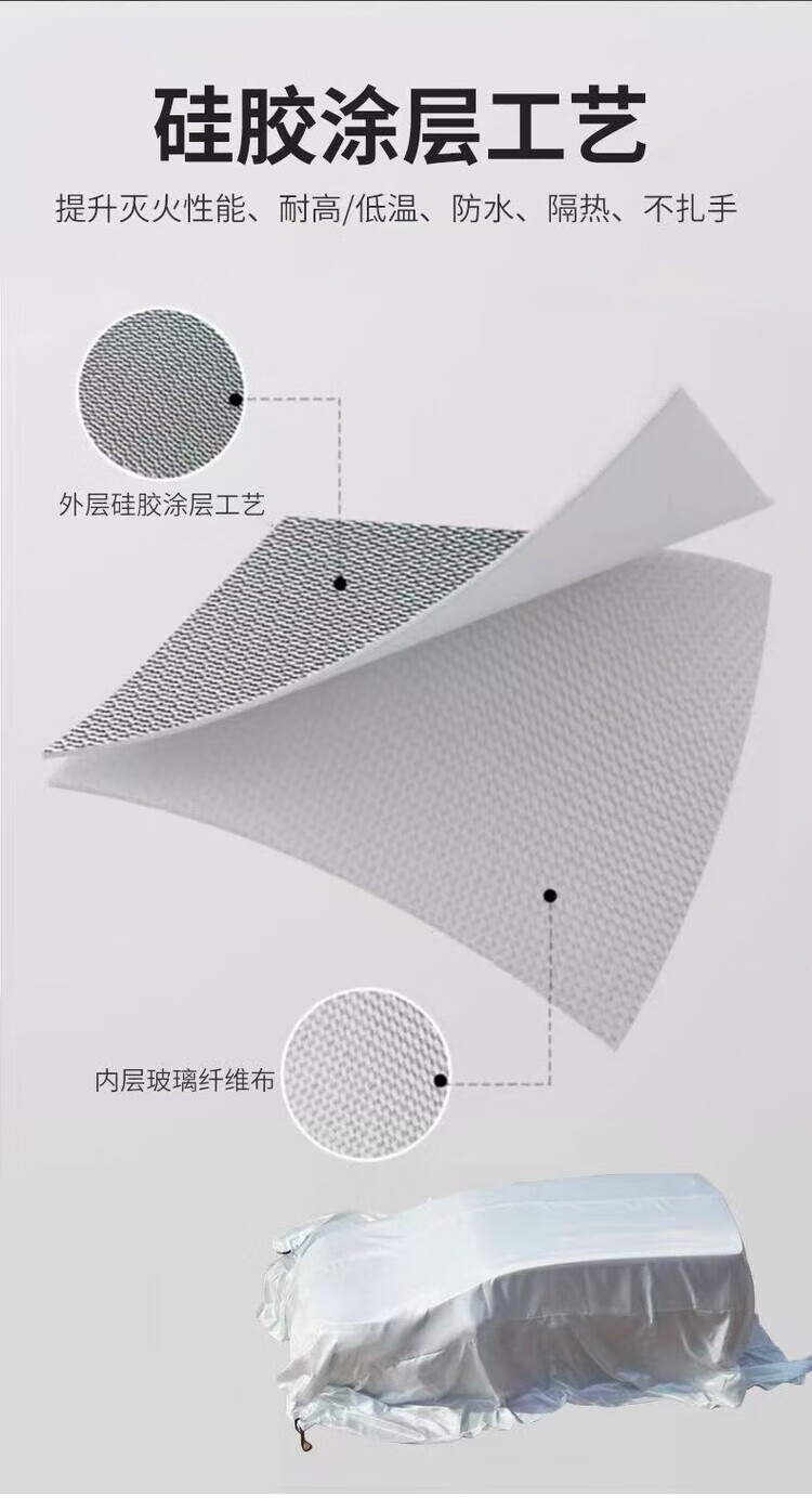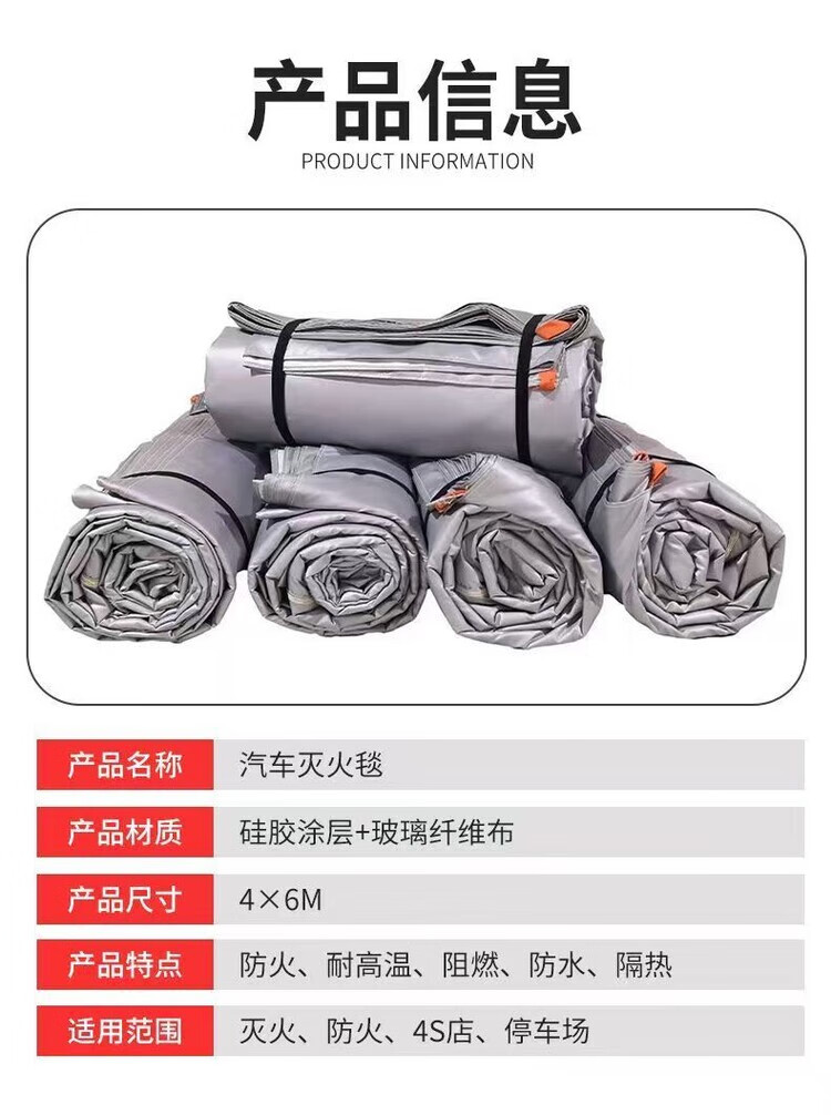 Mo Peng fire-fighting blanket fire-fighting special car fire-proof blanket electric new energy silicone car charging station spare car blanket 2m*3m fiberglass fire-fighting blanket
