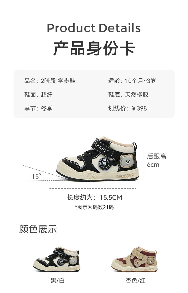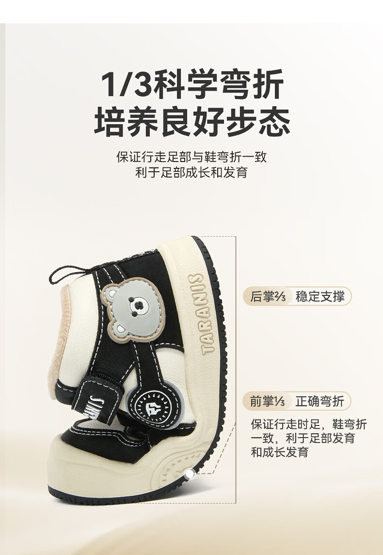 Terranis Children's Shoes 2025 Winter New Baby Toddler Shoes Plus Velvet Warm Boys' Shoes Girls' Key Shoes Functional Shoes Apricot/Red 24 Inner Length 15.5 Suitable for Foot Length 13.8~14.2