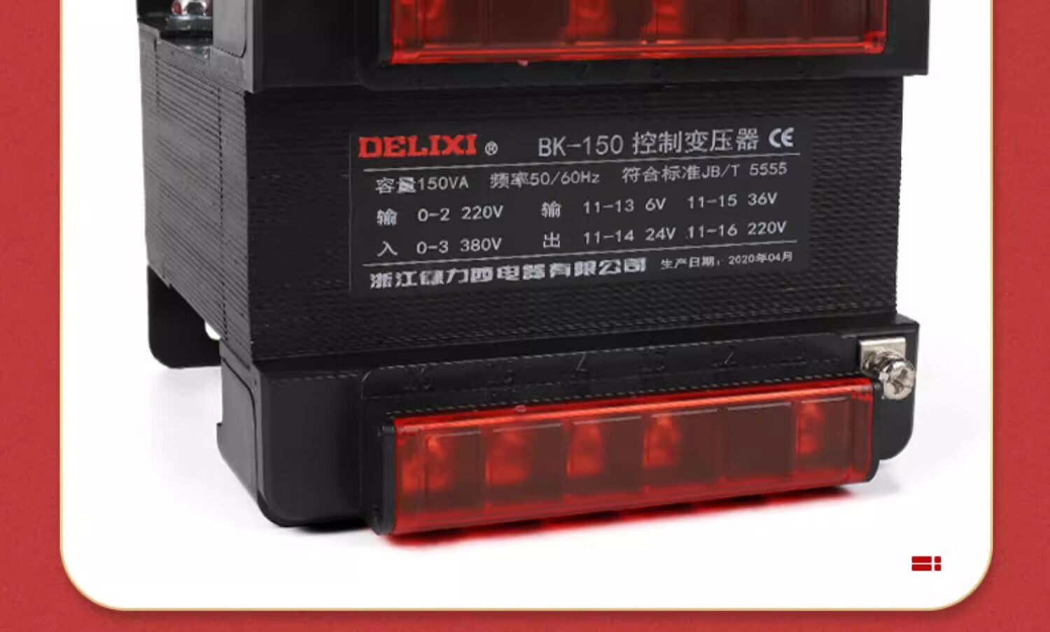 Delixi Electric Delixi 150W control transformer BK-150VA input 380V/220V conversion 110V/36V/24V/6V 380V220V conversion 220V36V24V6V