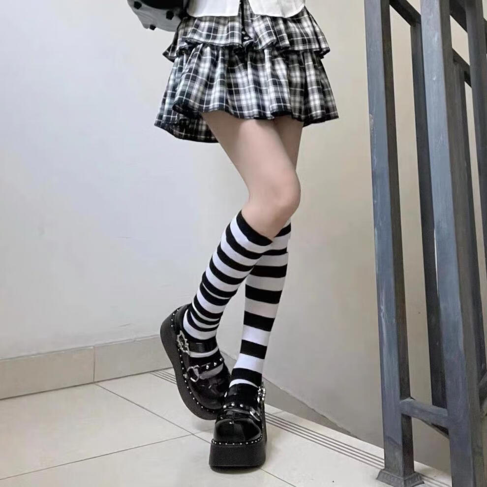 Zi Jiafu Socks Long Socks Women's Japanese Blue and White Striped Over-the-Knee Socks Thigh Socks COSPLAY Animation Women's Socks Black and Purple Stripes 1 Pair One-size-fits-all No Cat Claws - Over the Knee