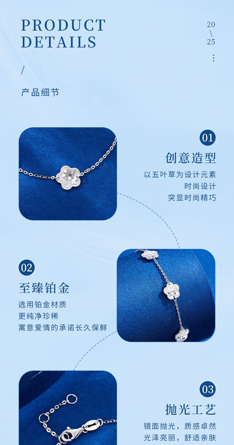 China Gold (CHINA GOLD) PT950 platinum crushed ice five-leaf clover bracelet for women, Valentine's Day birthday gift for girlfriend and wife, platinum crushed ice five-leaf clover bracelet, about 3.3g, Zhongjin gift box
