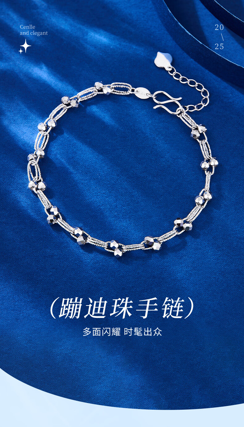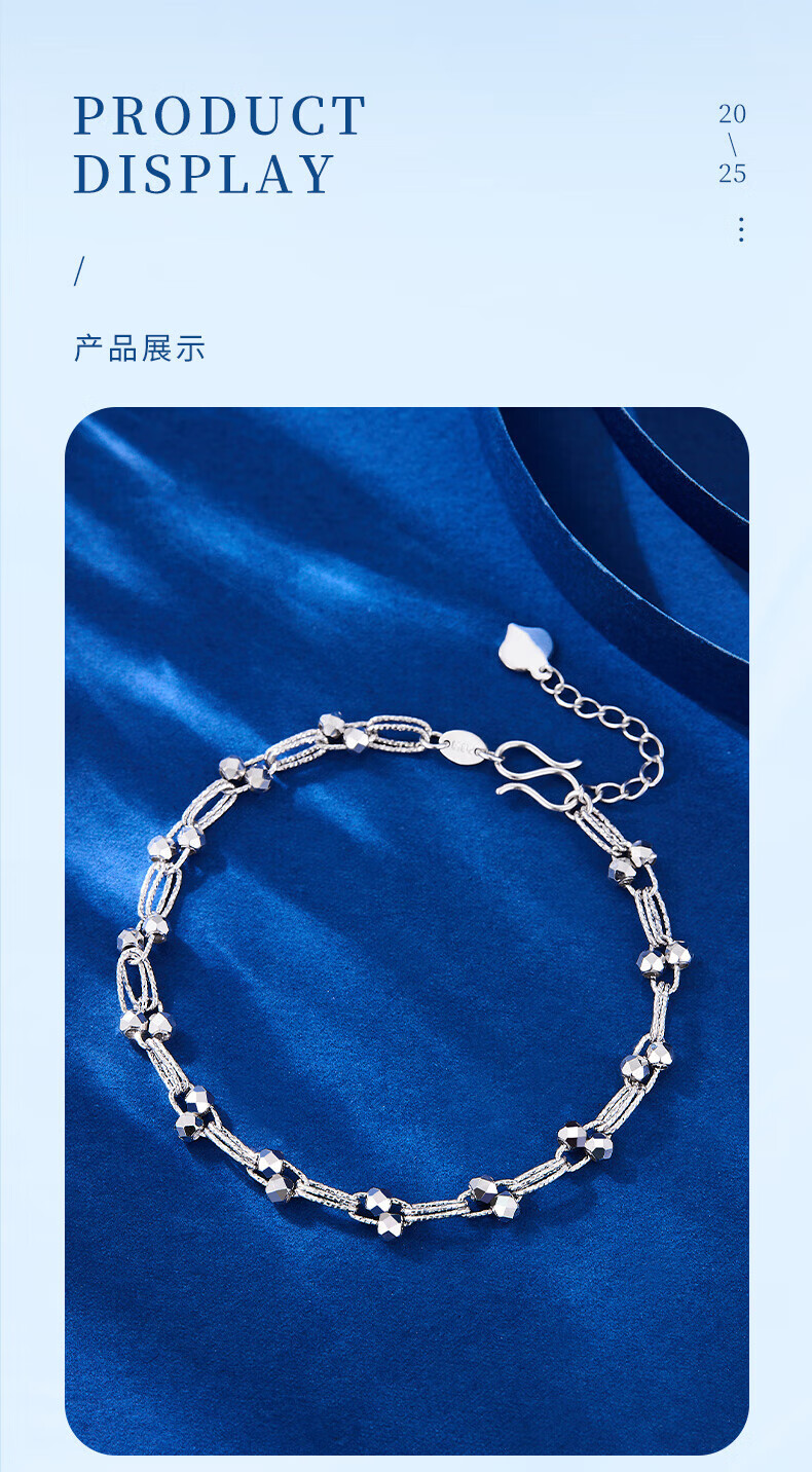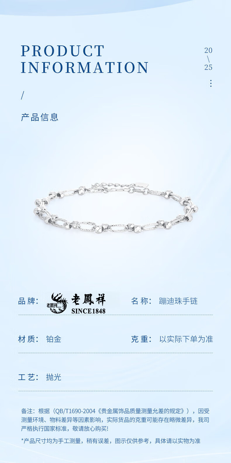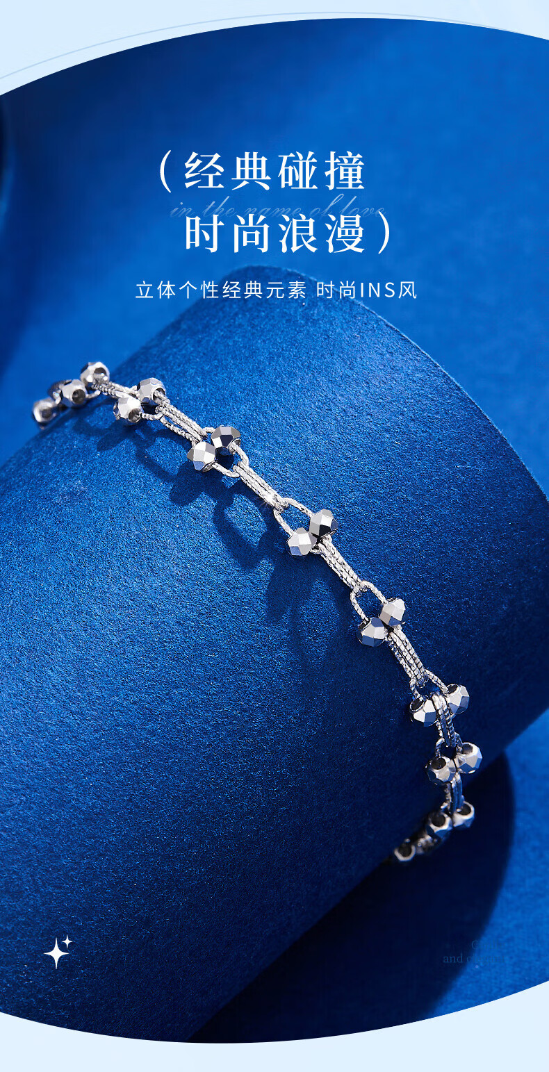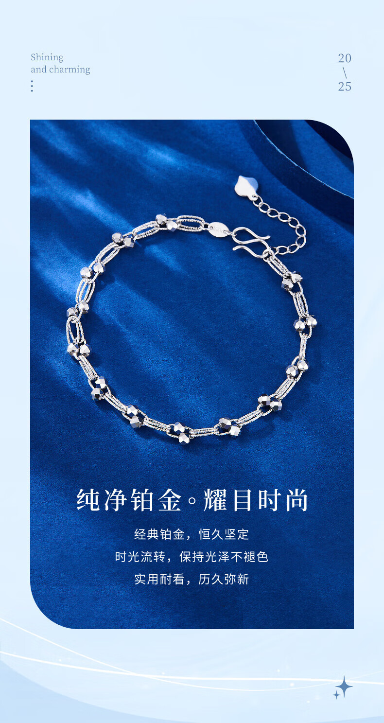 Lao Fengxiang pt950 platinum bracelet for women, platinum bouncy bead bracelet, simple Valentine's Day birthday gift for girlfriend and wife, platinum bouncy bead bracelet, about 6.1g, brand gift box