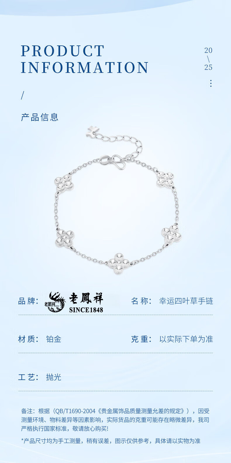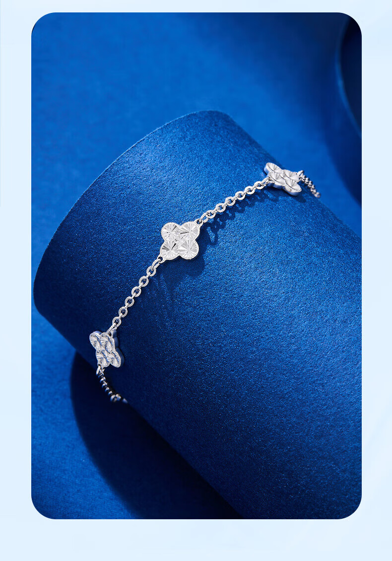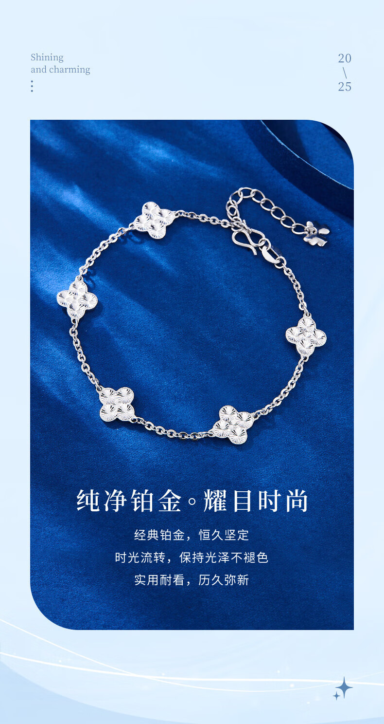 Lao Fengxiang pt950 platinum bracelet for women, platinum lucky four-leaf clover bracelet, Valentine's Day birthday gift for girlfriend and wife, platinum lucky four-leaf clover bracelet, about 6.8g, brand gift box