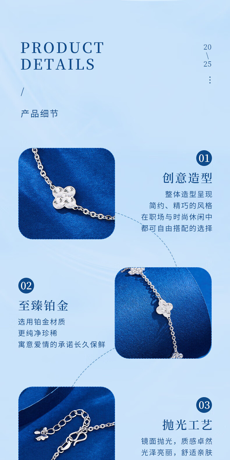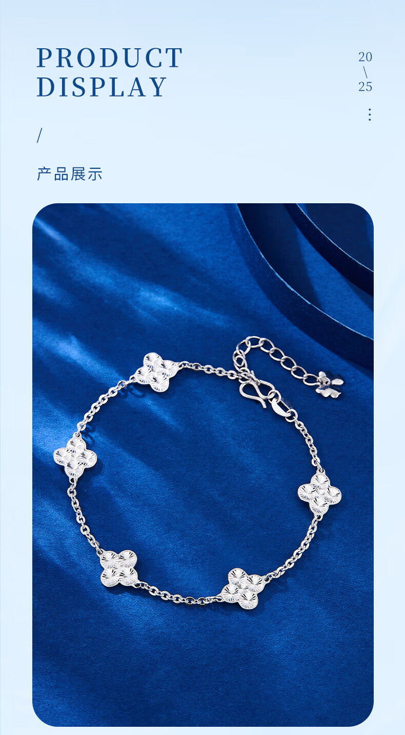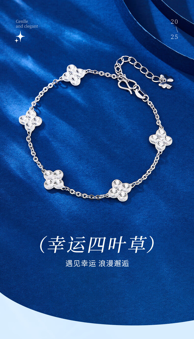 Lao Fengxiang pt950 platinum bracelet for women, platinum lucky four-leaf clover bracelet, Valentine's Day birthday gift for girlfriend and wife, platinum lucky four-leaf clover bracelet, about 6.8g, brand gift box