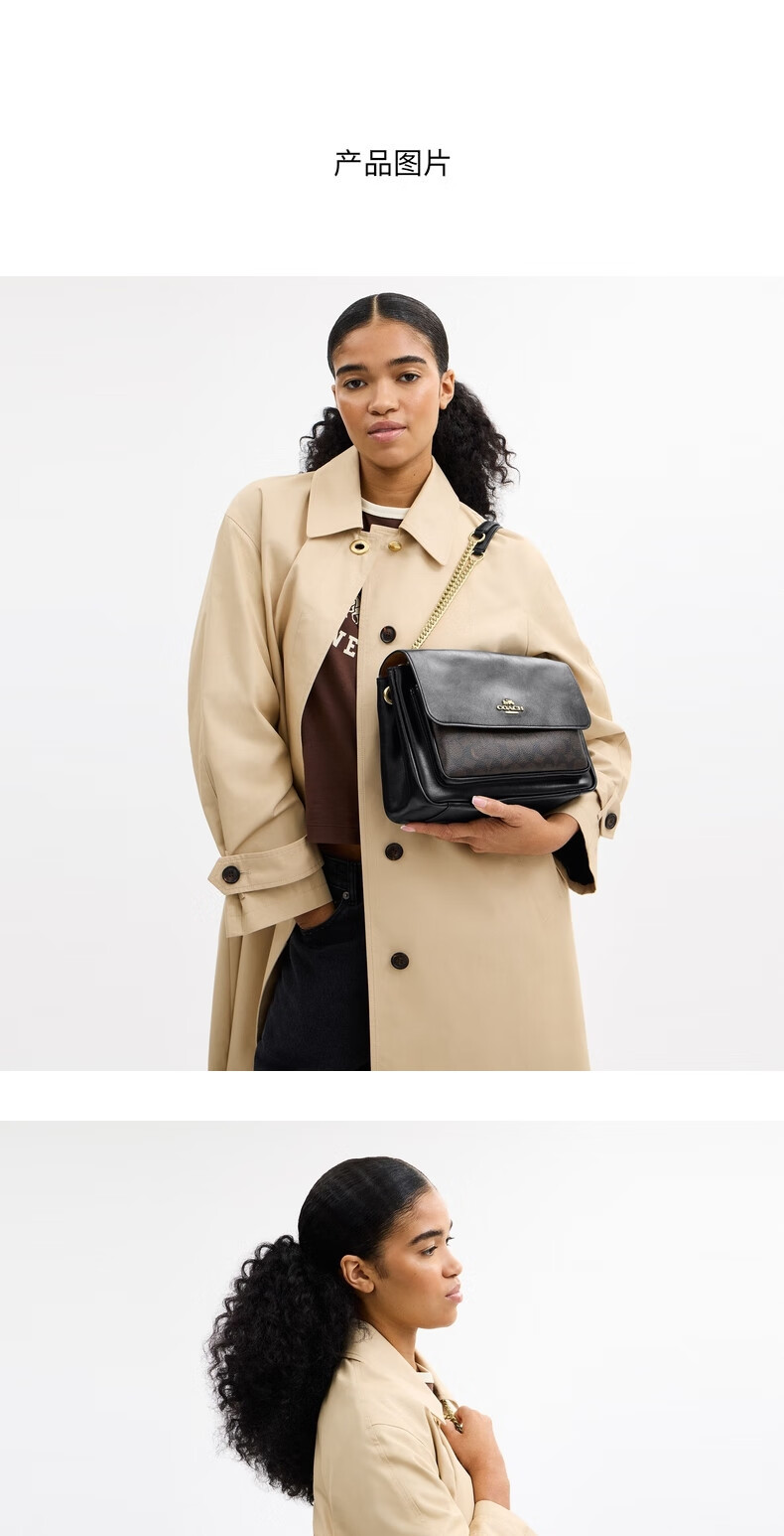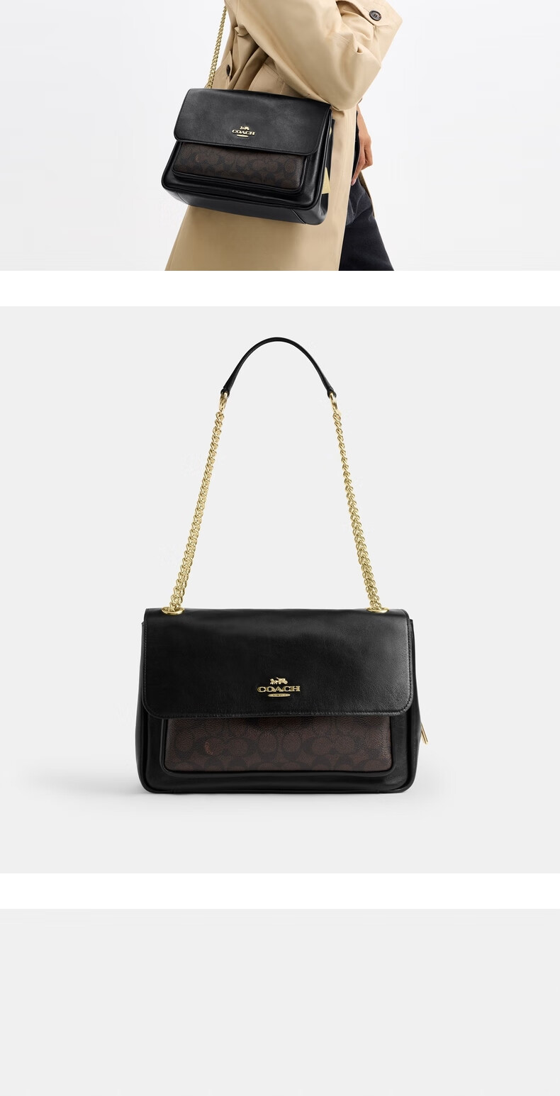 COACH Outlet women's bag classic logo ELODIE crossbody bag shoulder bag commuter chain bag box bag IM/walnut color/black