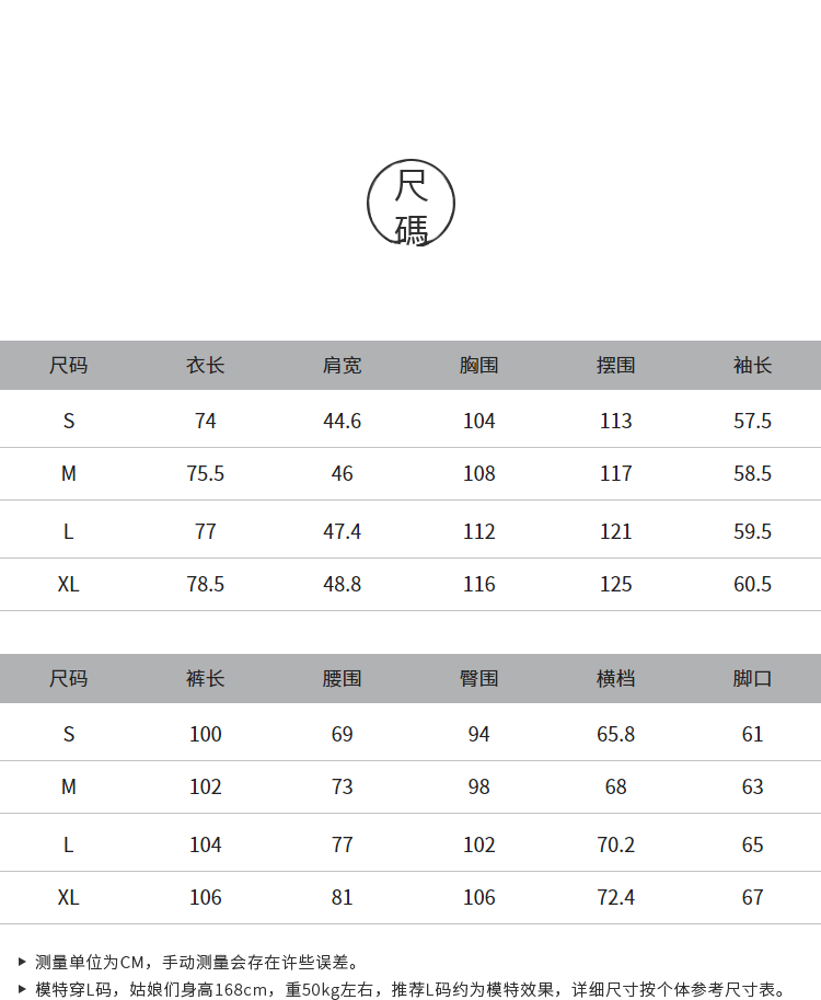 China (cm) 160-165/84-86 165-170 / 88-90 167-172 / 92-96 168-173 / 98-102 170-176 / 106-110