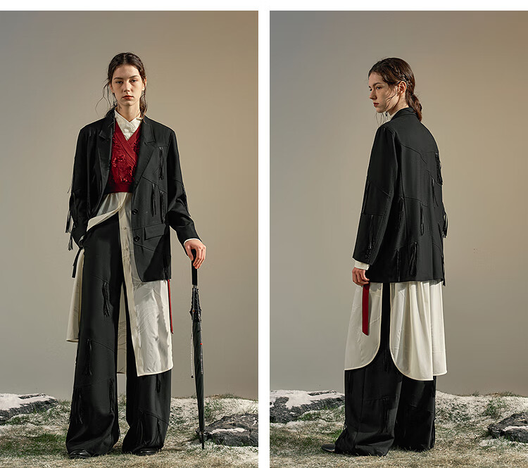 Rishuo (rizhuo) Xia Wool Suit 2025 New High-end Casual Fashion Commuting Early Autumn Temperament Complete Set Youma Black S