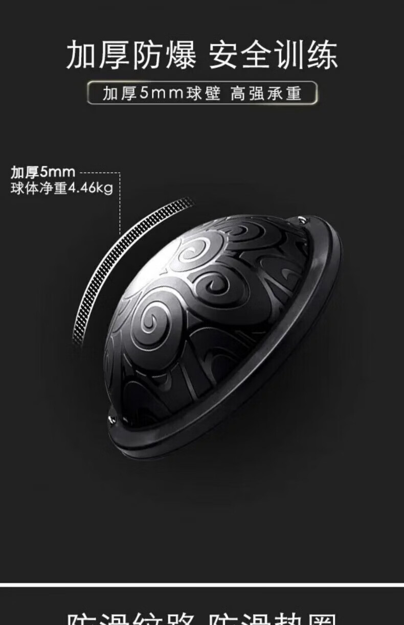 Hanpin German quality wave speed ball semi-circular balance rehabilitation ball adult foot ball fitness yoga burpee balance trainer rehabilitation model-black small size 47cm