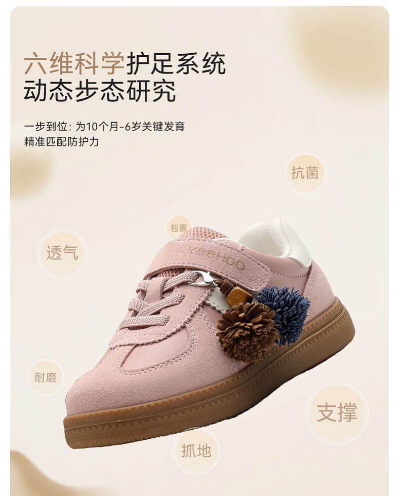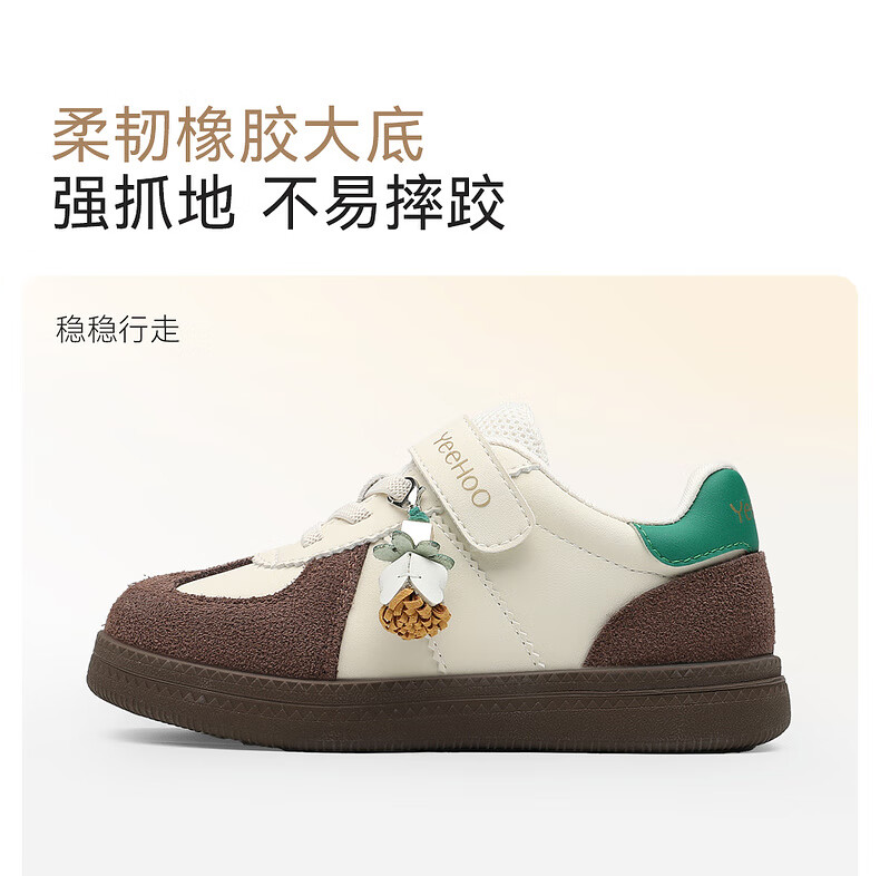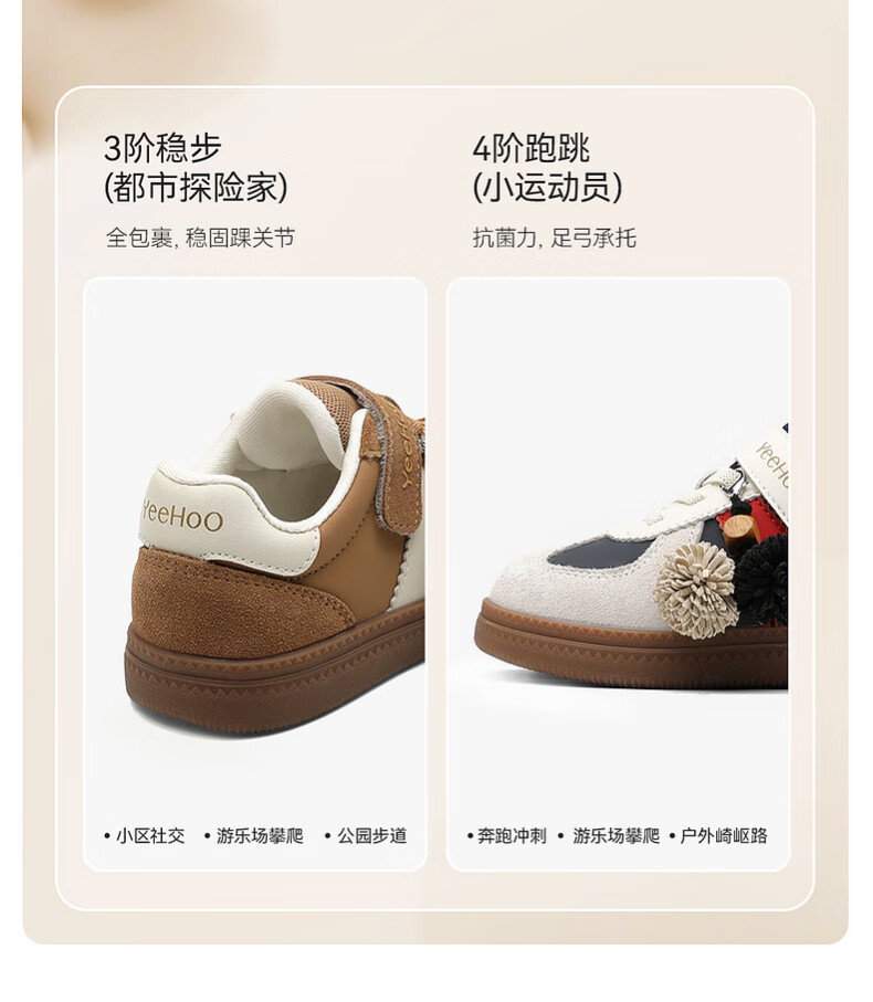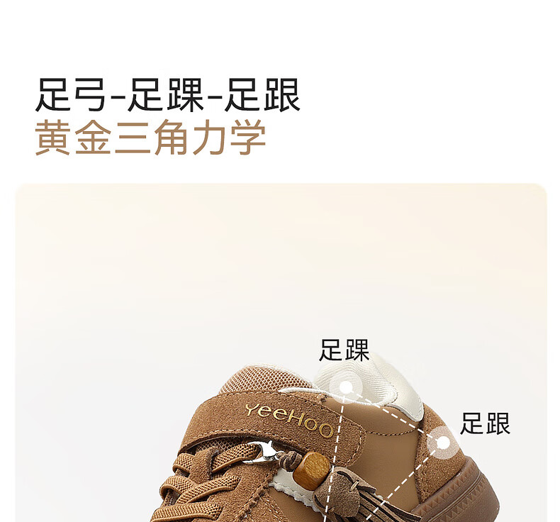 Ying's YEEHOO toddler stable shoes, children's casual shoes, moral training shoes, girls' autumn and winter shoes, boys' fashionable and versatile outdoor shoes, apricot brown 26, recommended foot length 15.5-16.0cm