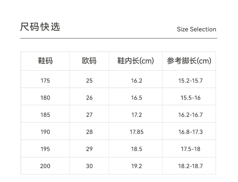 China (cm) 36 - 37 38 - 39 40 - 42 43 - 44 45 - 47