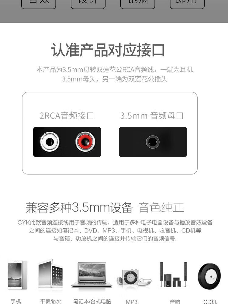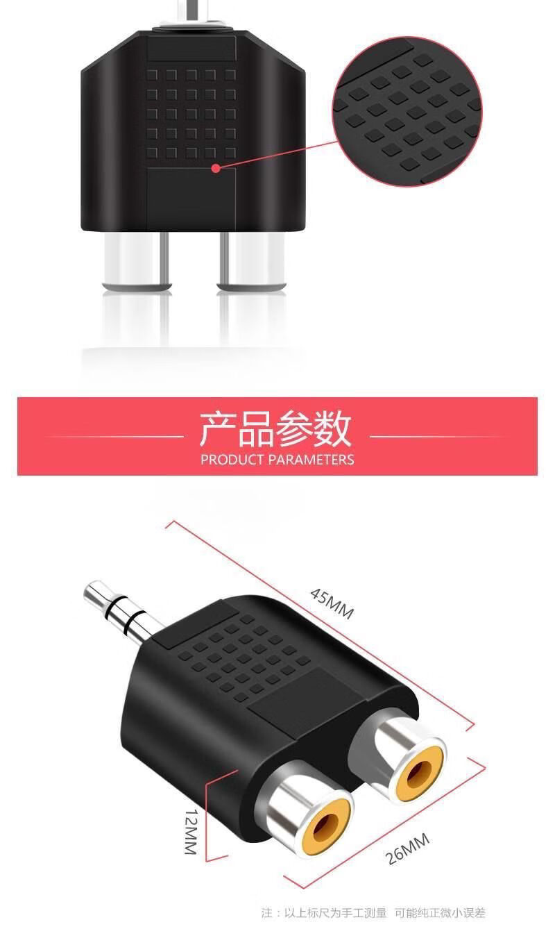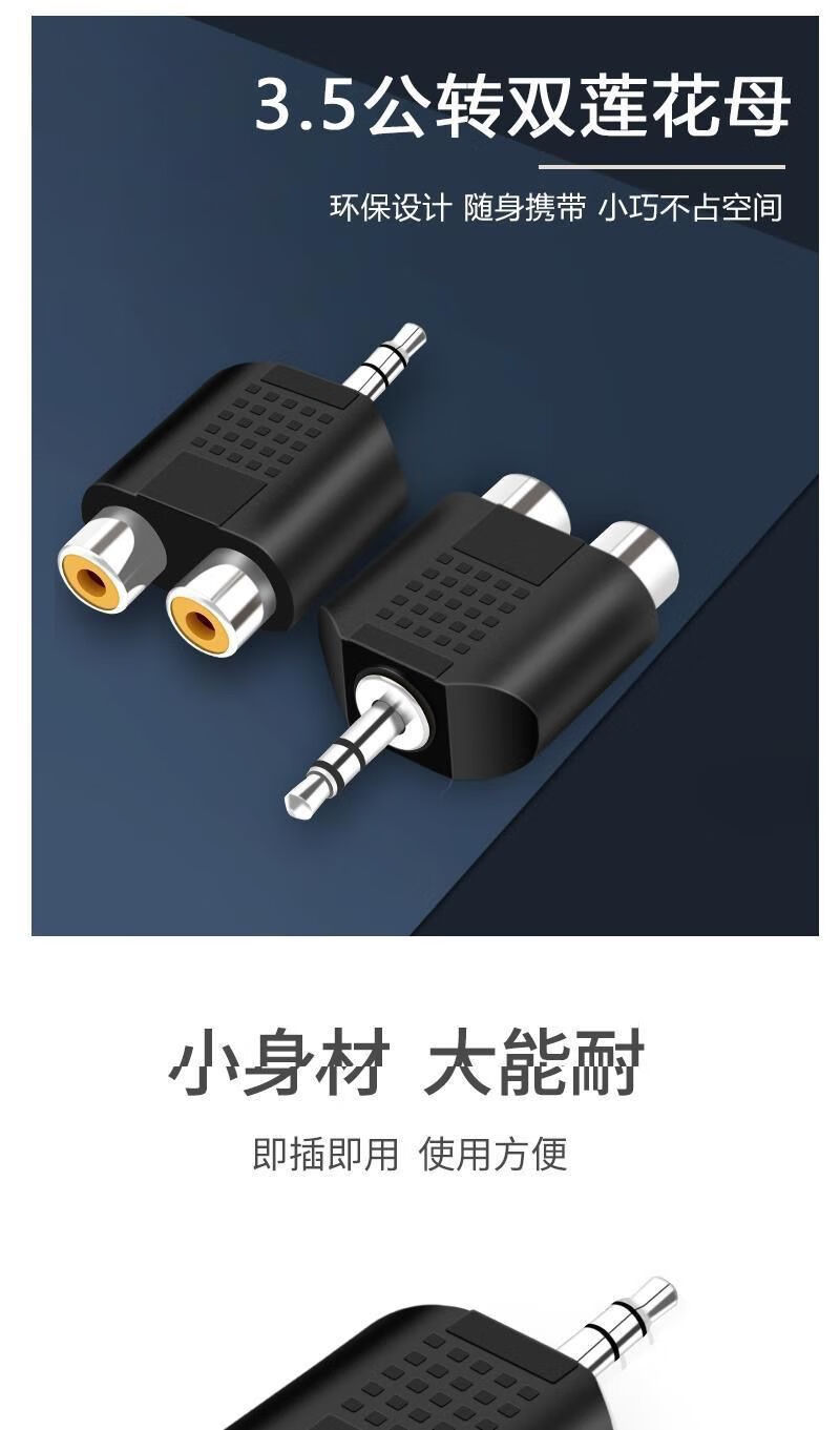 3.5mm female to double lotus cable adapter TV set-top box universal plug audio adapter 3.5 male to double lotus female 1 pack