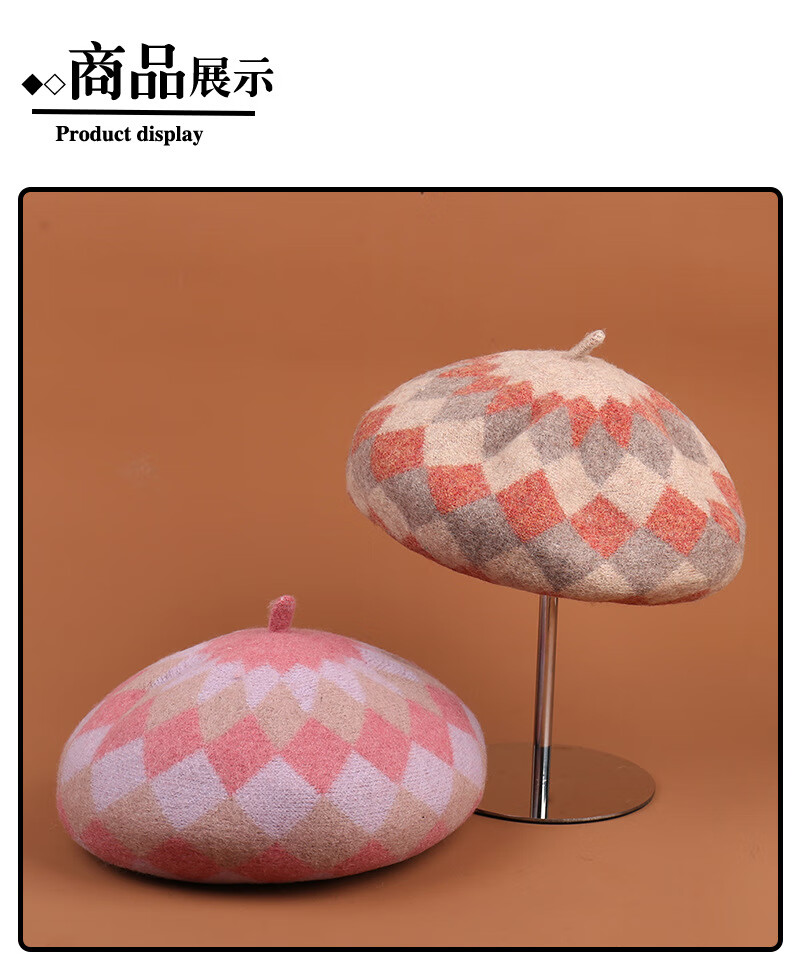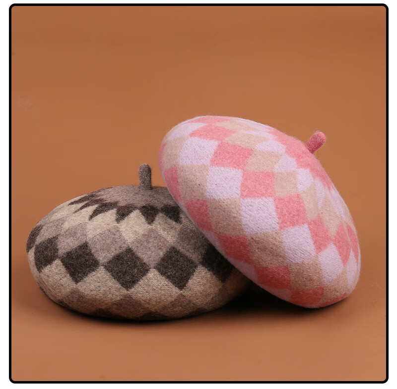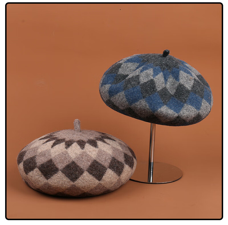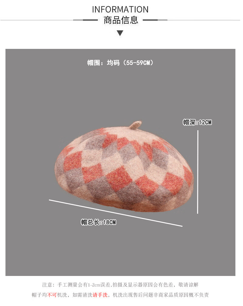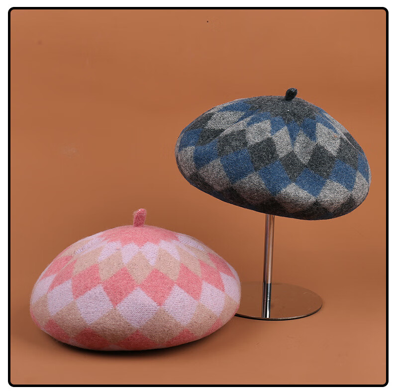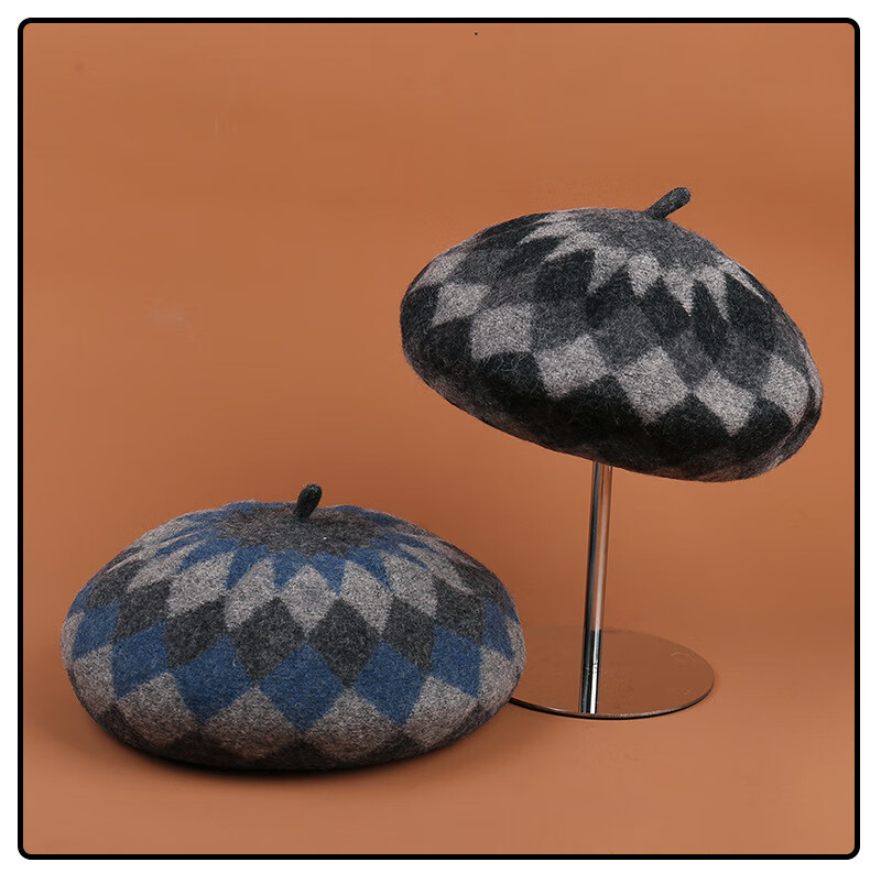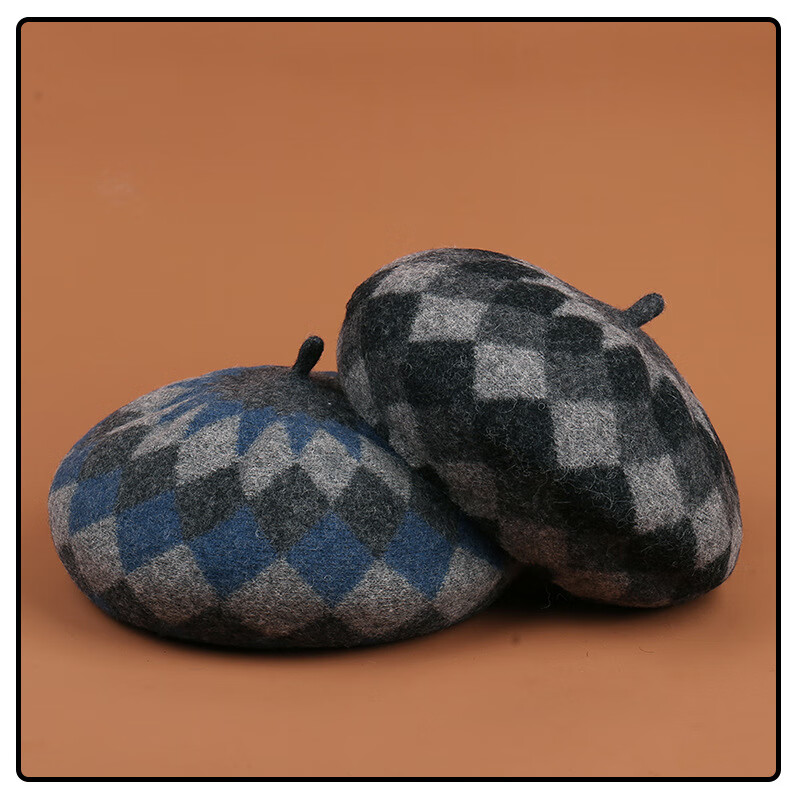 Lee dprre autumn and winter woolen beret new fashion ladies British elegant temperament retro literary versatile painter hat navy + gray one size 55-58cm