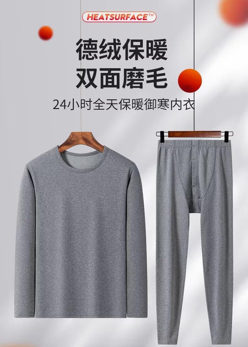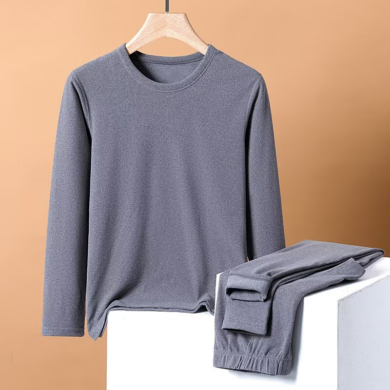 Autumn clothes and autumn trousers set for men, cotton sweaters, sweaters and linen pants, thin, versatile, thermal underwear for men, winter, light gray 5XL