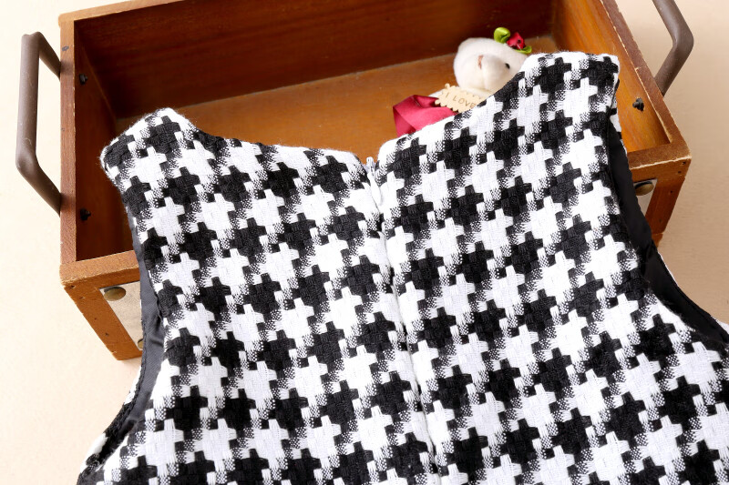 Modal girls' dress, imitation wool vest dress, spring, autumn and winter new children's plaid princess dress, medium and large children's dress, black plover dress with velvet 110, recommended age 3-4 years old, height 95cm