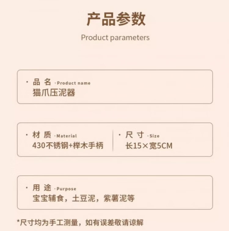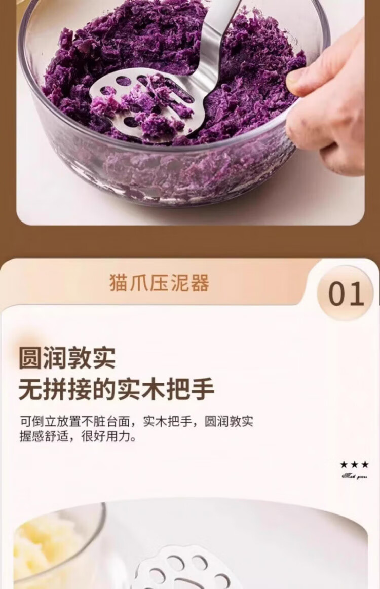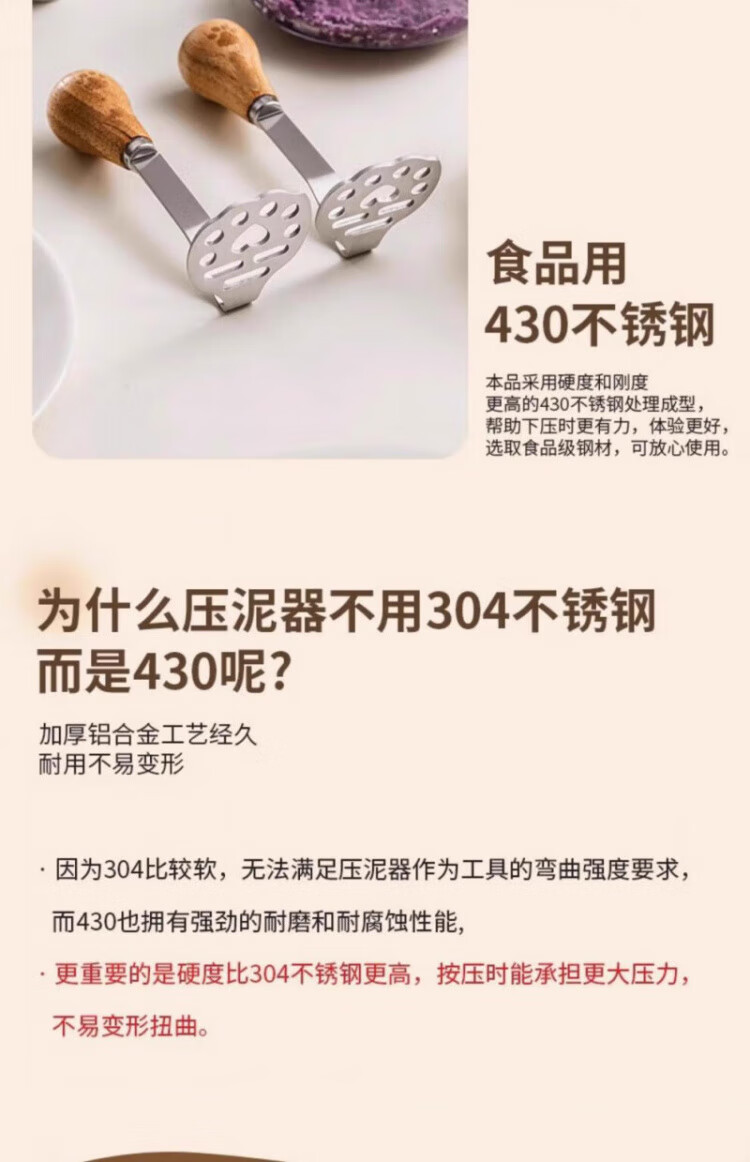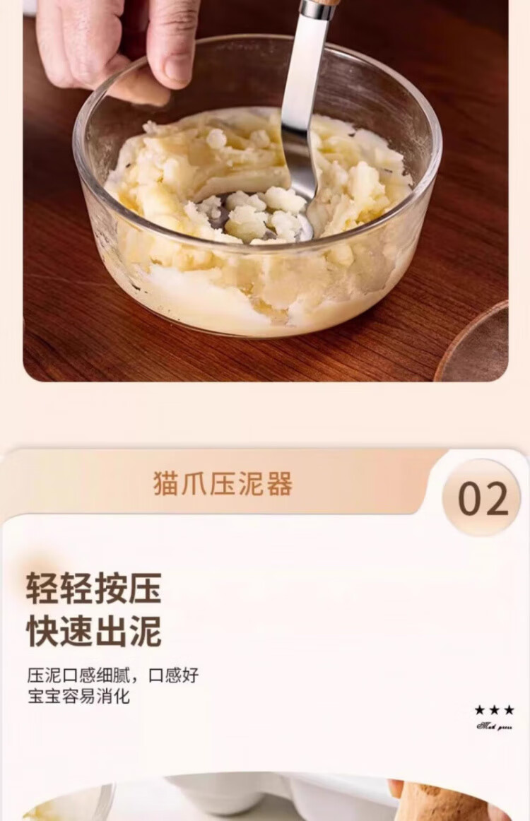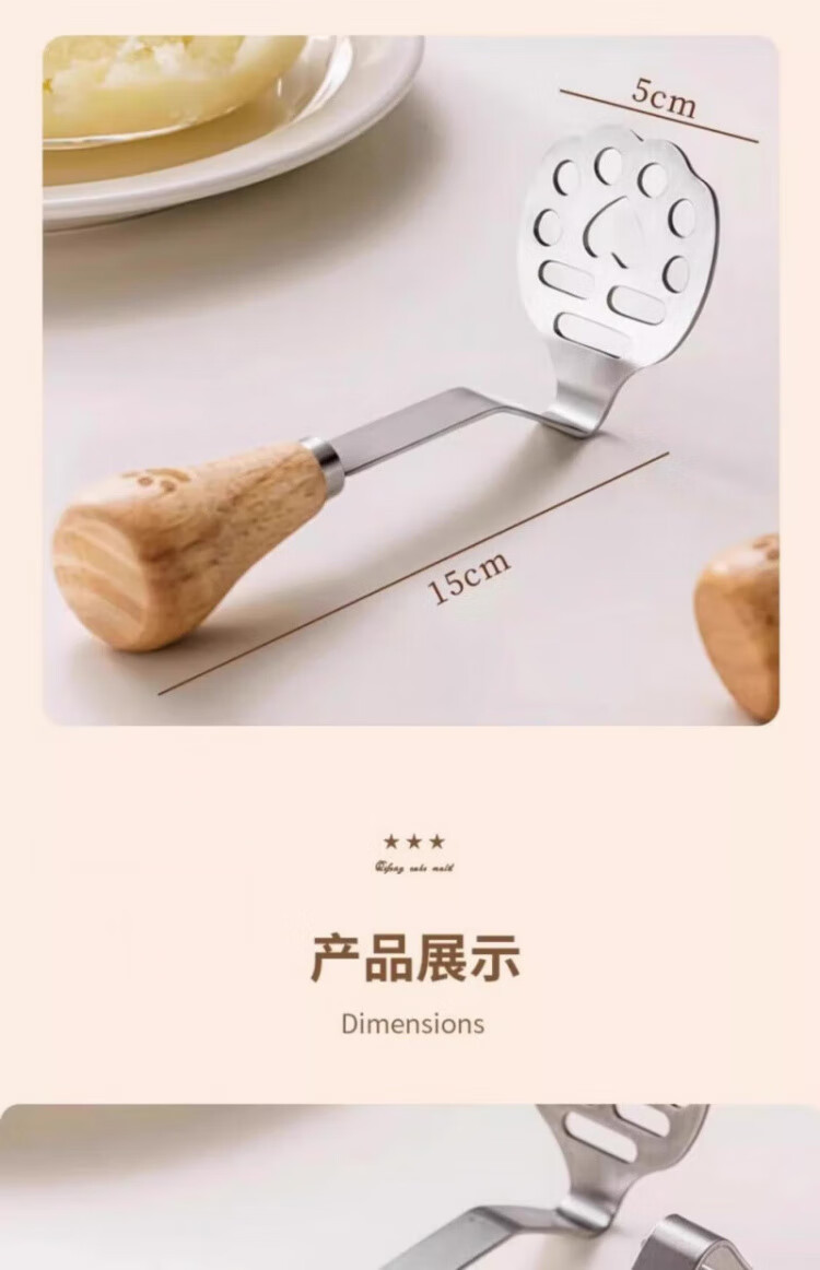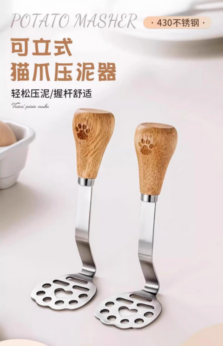 OEMG high-end potato masher baby food supplement tool masher press rolling masher food grade stainless steel bear masher 1