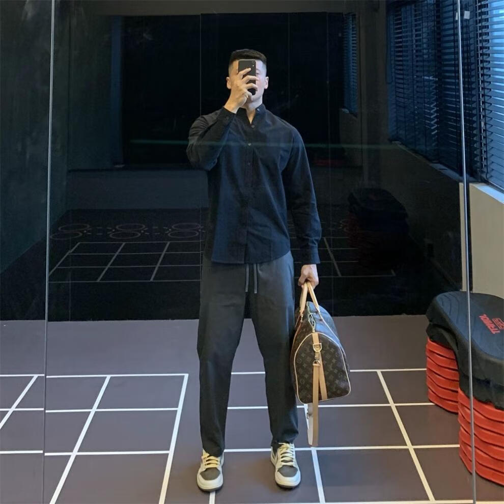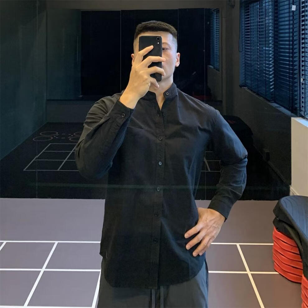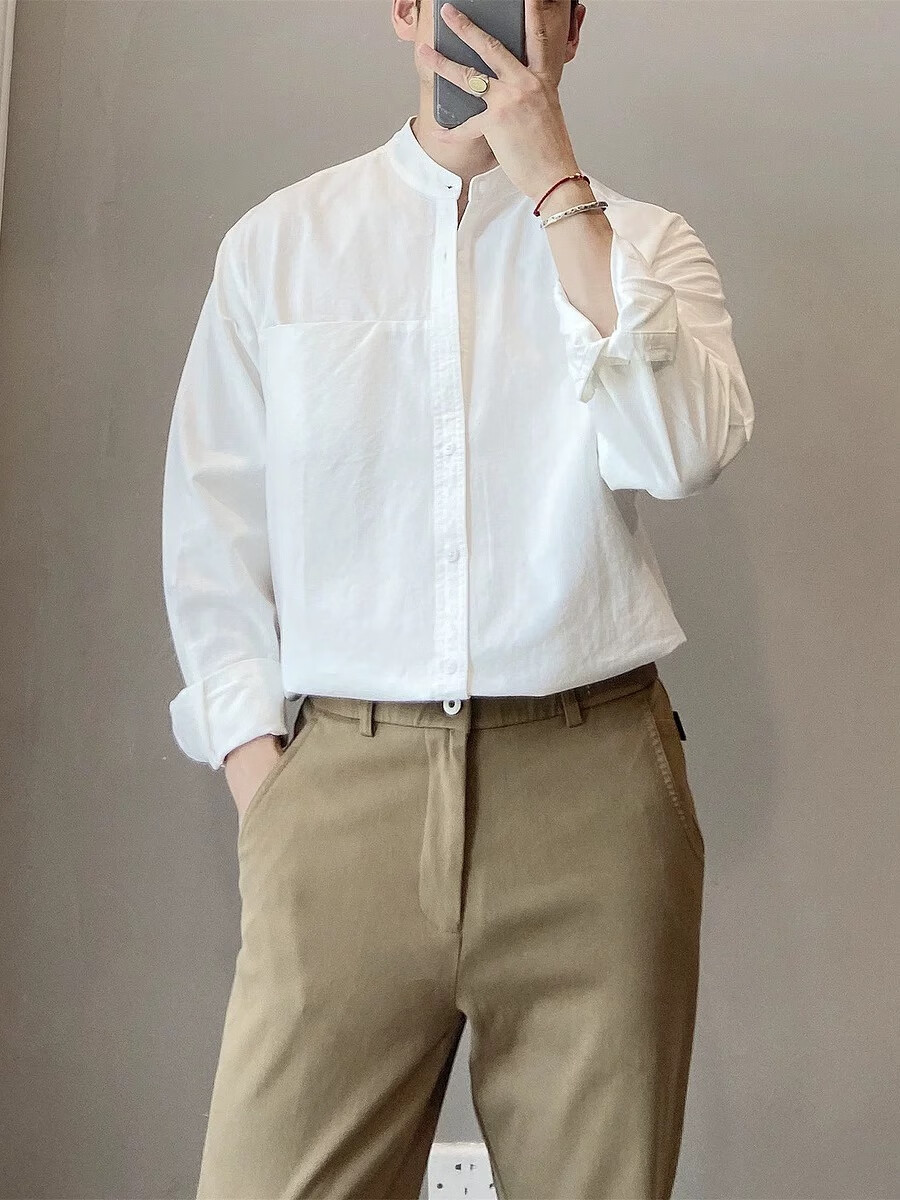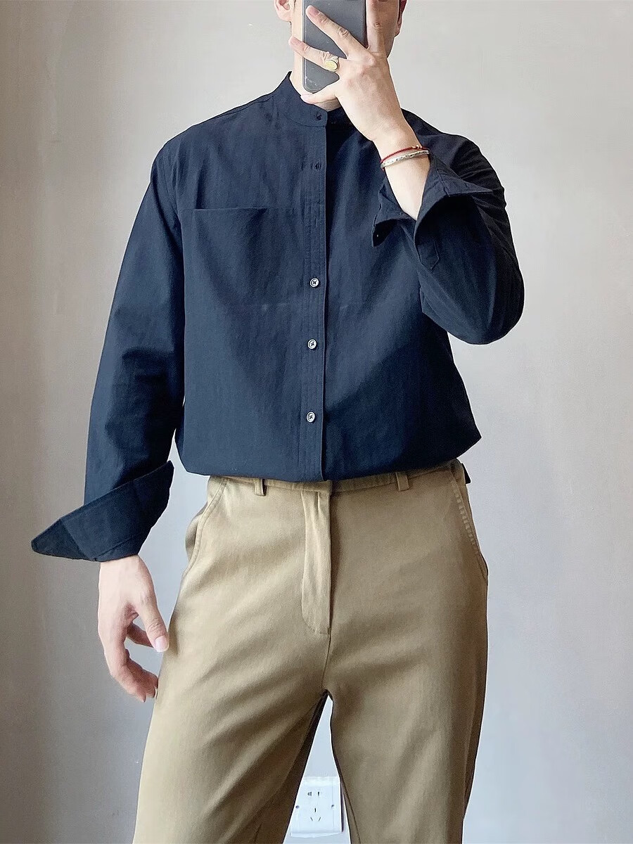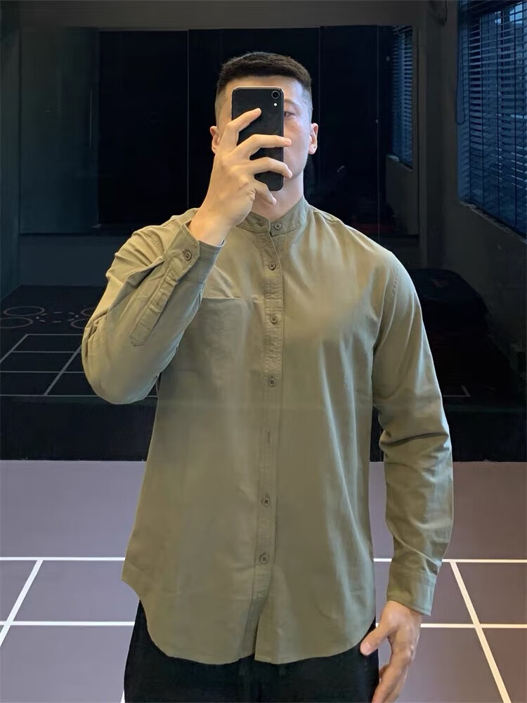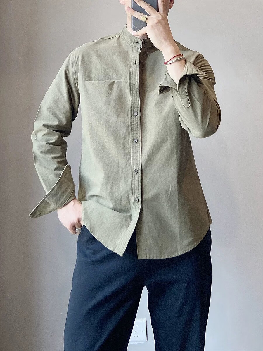 Playboy (PLAYBOY) Japanese retro Henry collar cotton shirt long-sleeved T-shirt men's shirt casual bottoming autumn and winter/P60 special dark green L