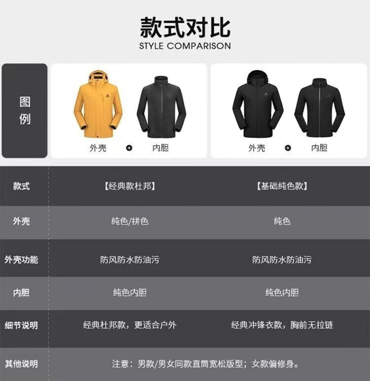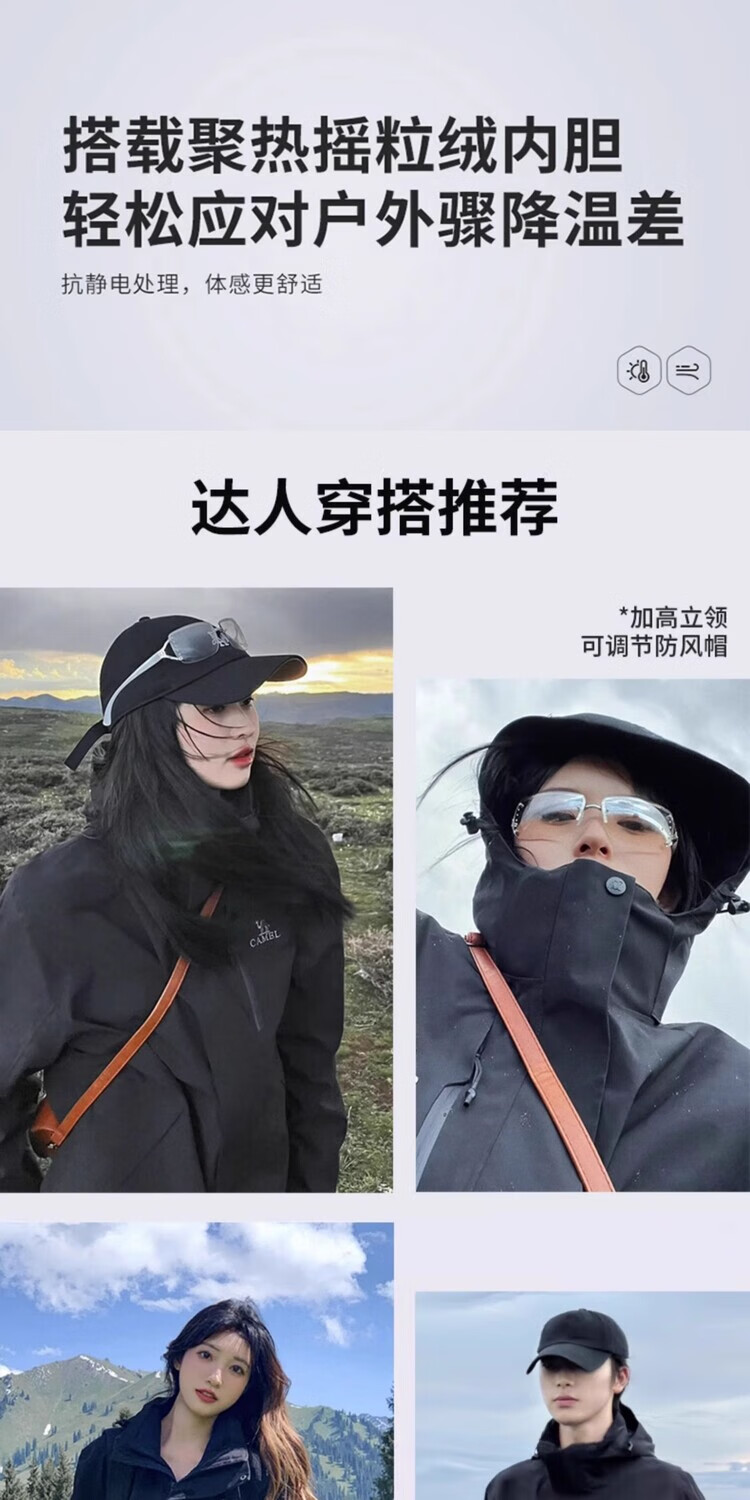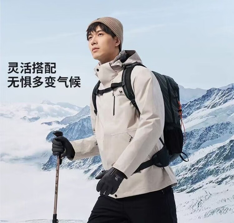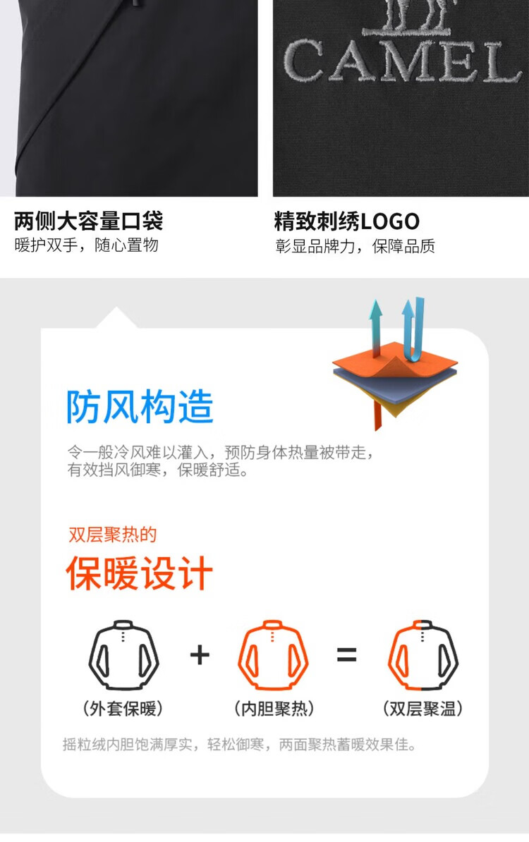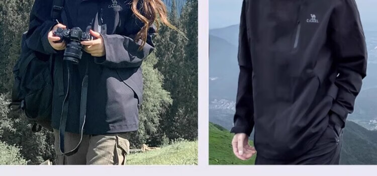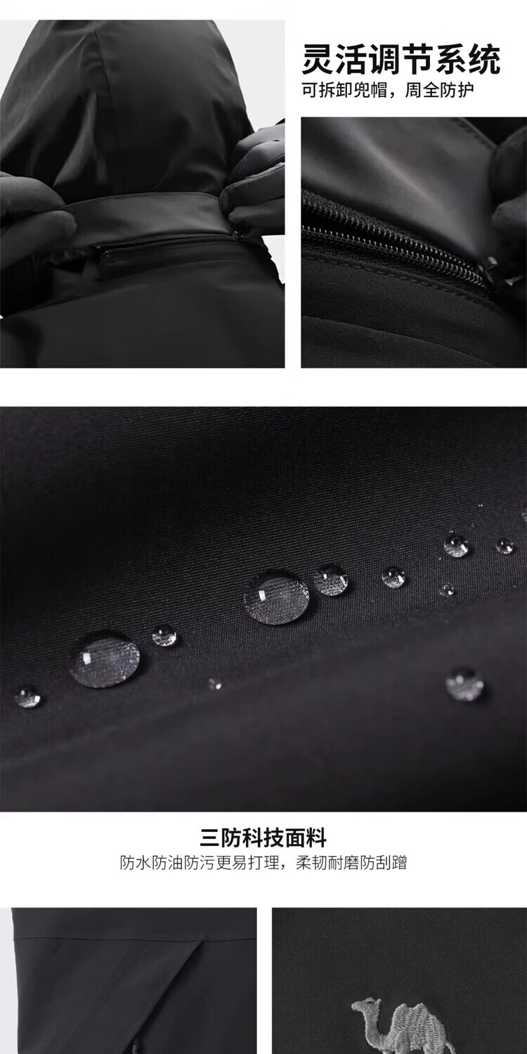 Camel (CAMEL) three-in-one jacket for men and women, removable windproof and waterproof mountaineering clothing, outdoor sports jacket, trendy single coat, black, same style for men and women 5XL 185-190/180-205Jin Jin is equal to 0.5 kg