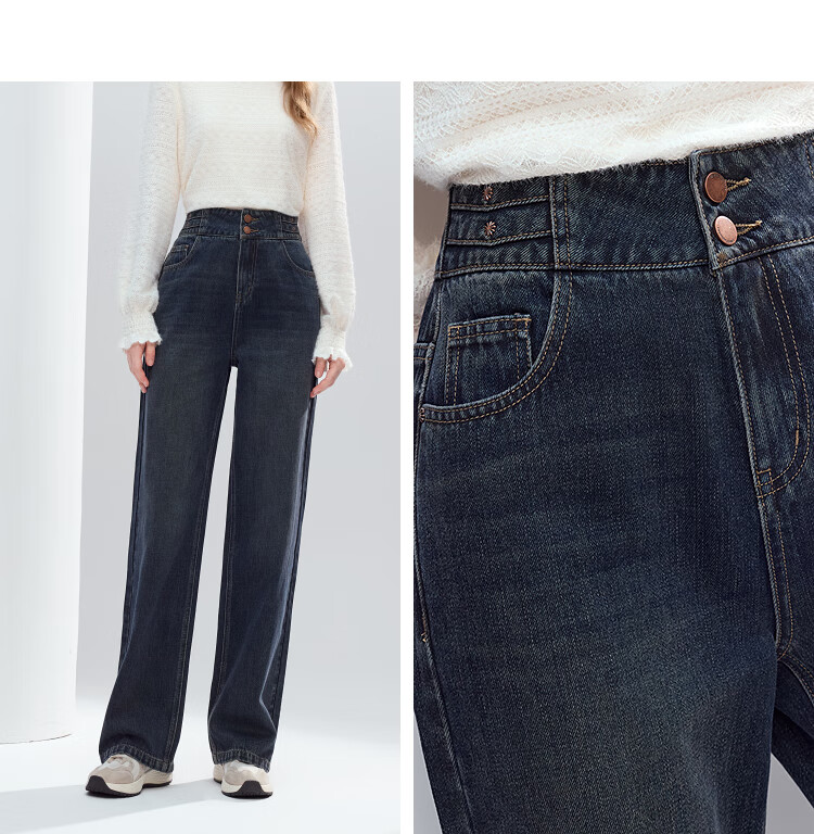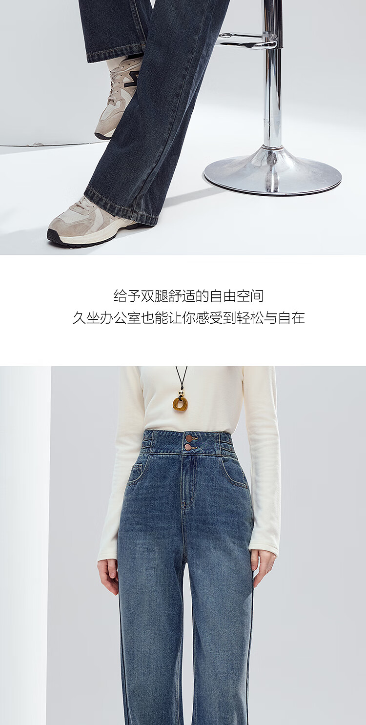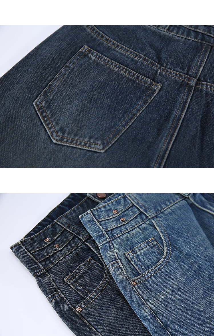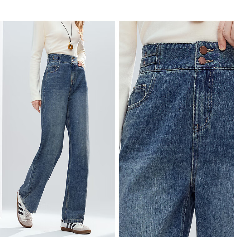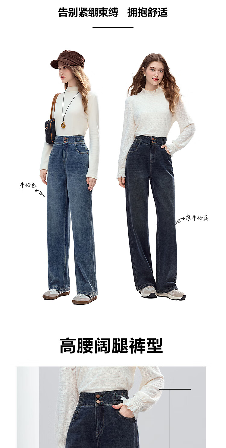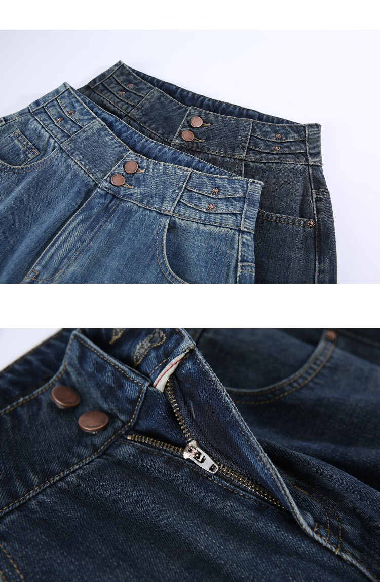 Betu Women's 2025 Winter New Denim Wide Leg Pants Retro Washed High Waist Slim Cotton Feel Pants 2510T86 Dark Denim Blue L