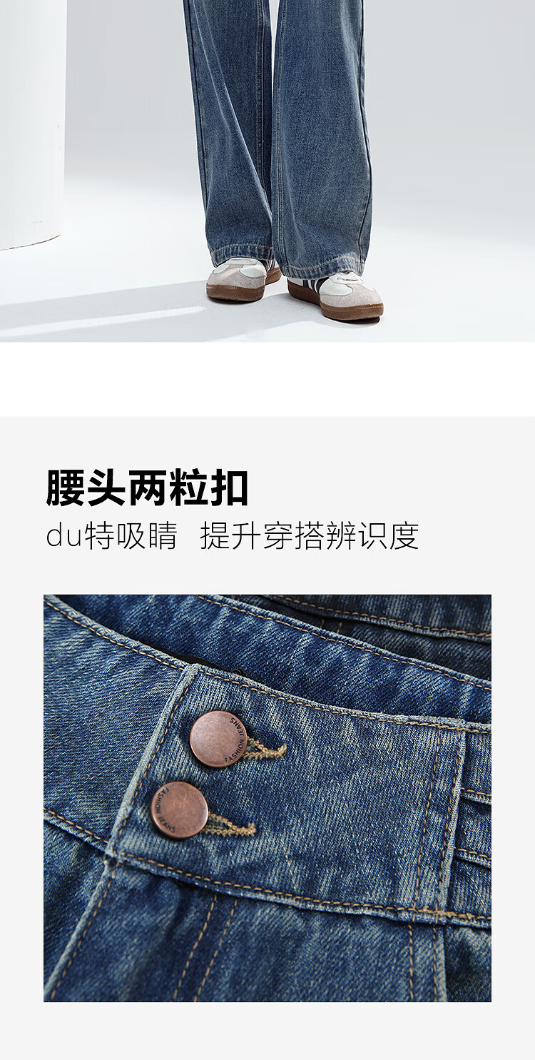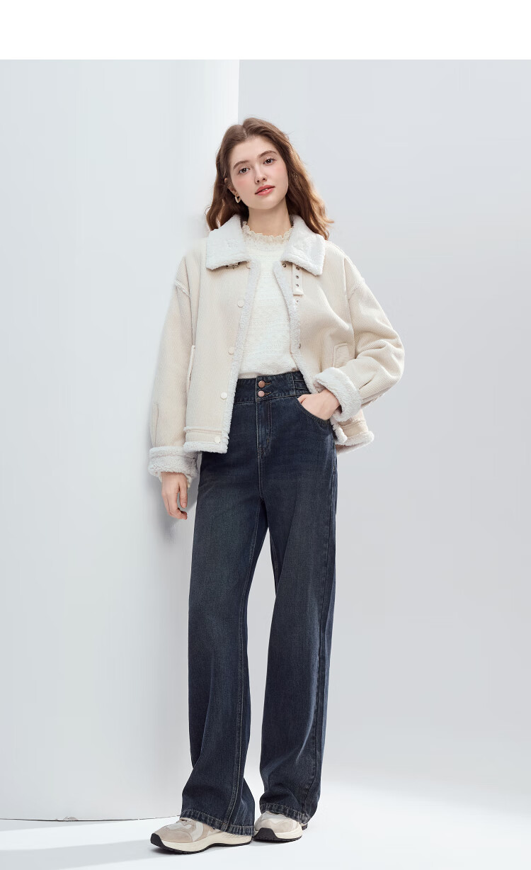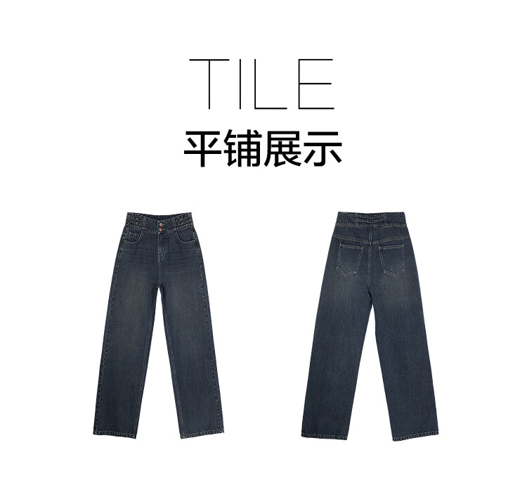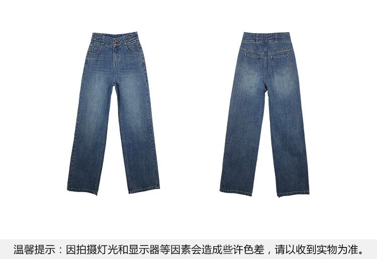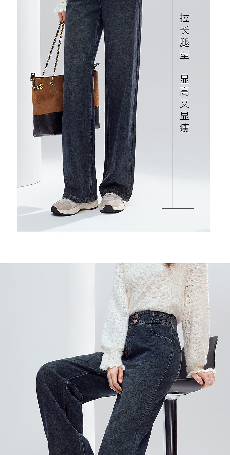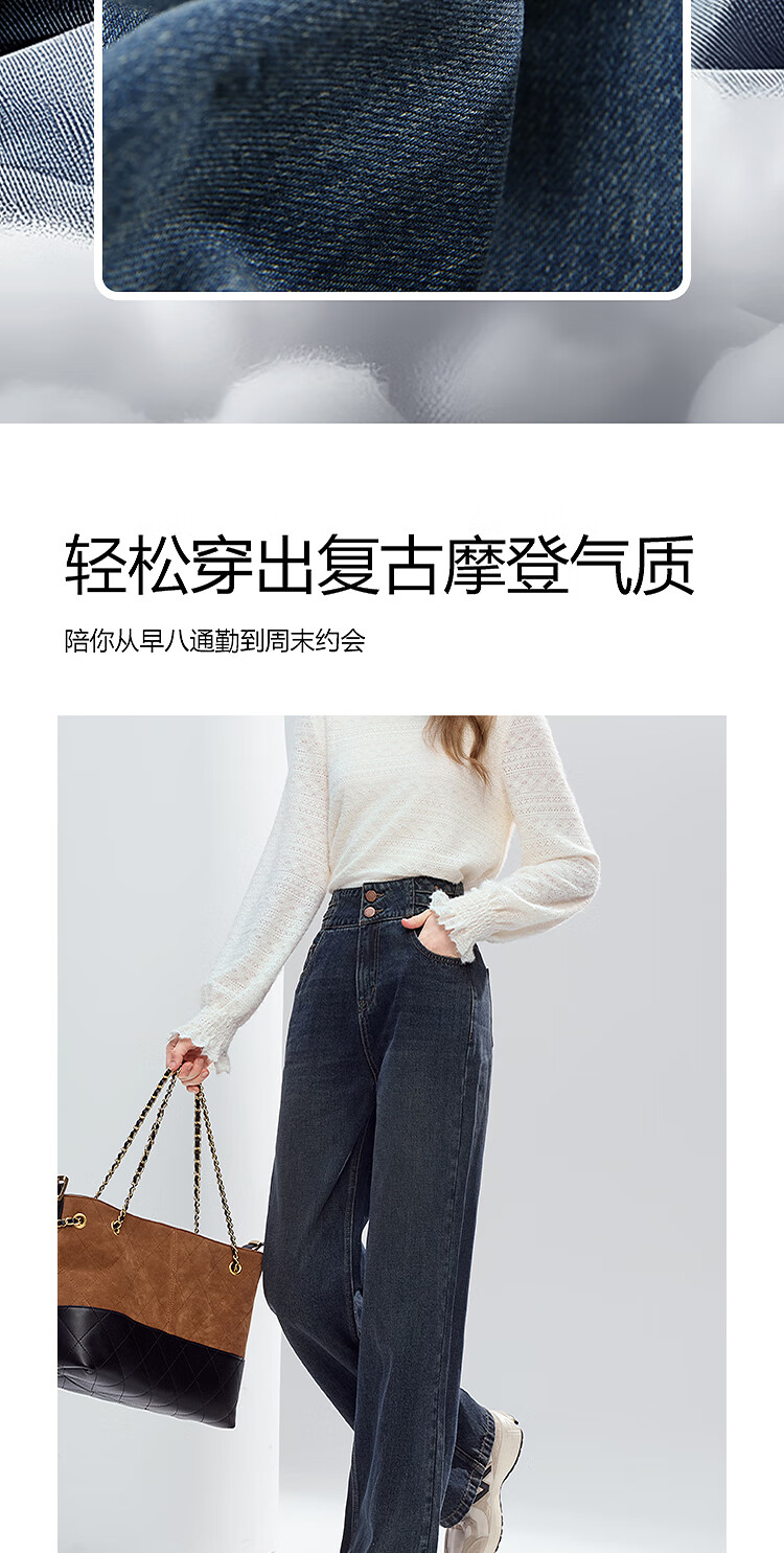 Betu Women's 2025 Winter New Denim Wide Leg Pants Retro Washed High Waist Slim Cotton Feel Pants 2510T86 Dark Denim Blue L