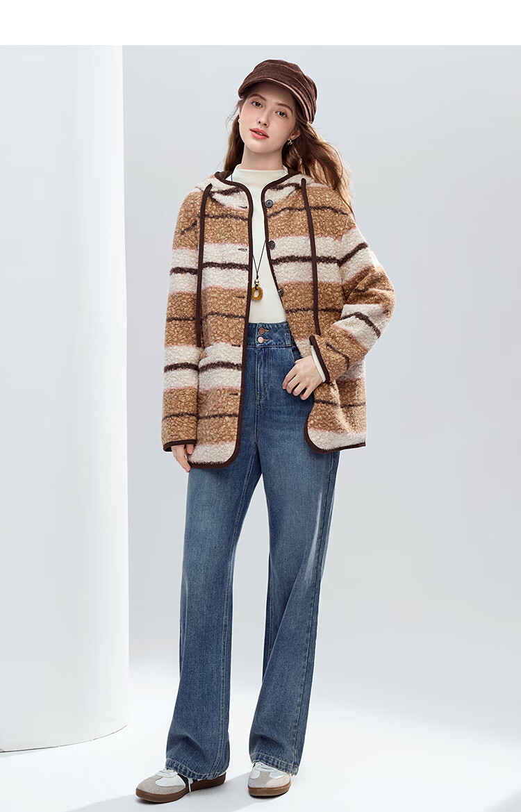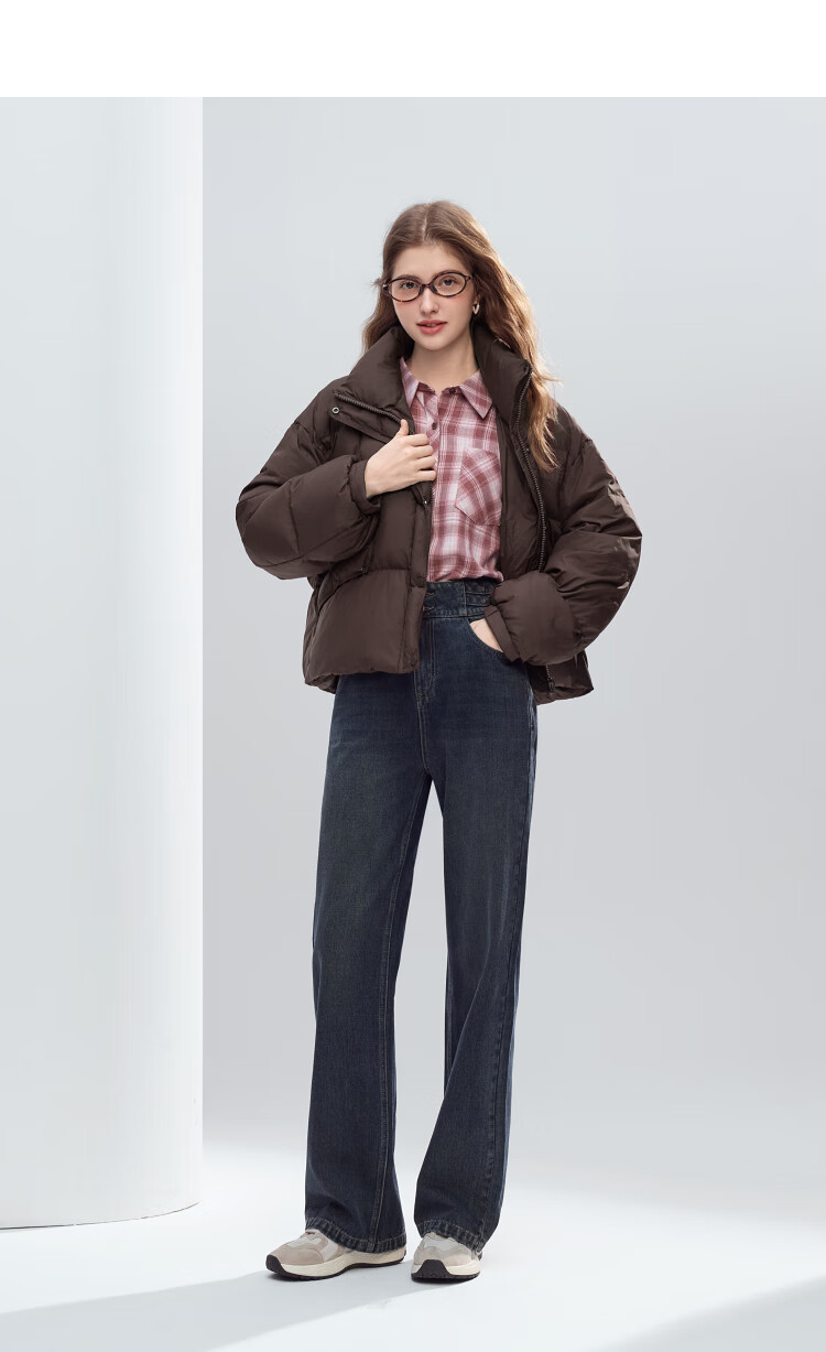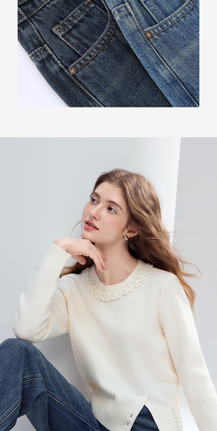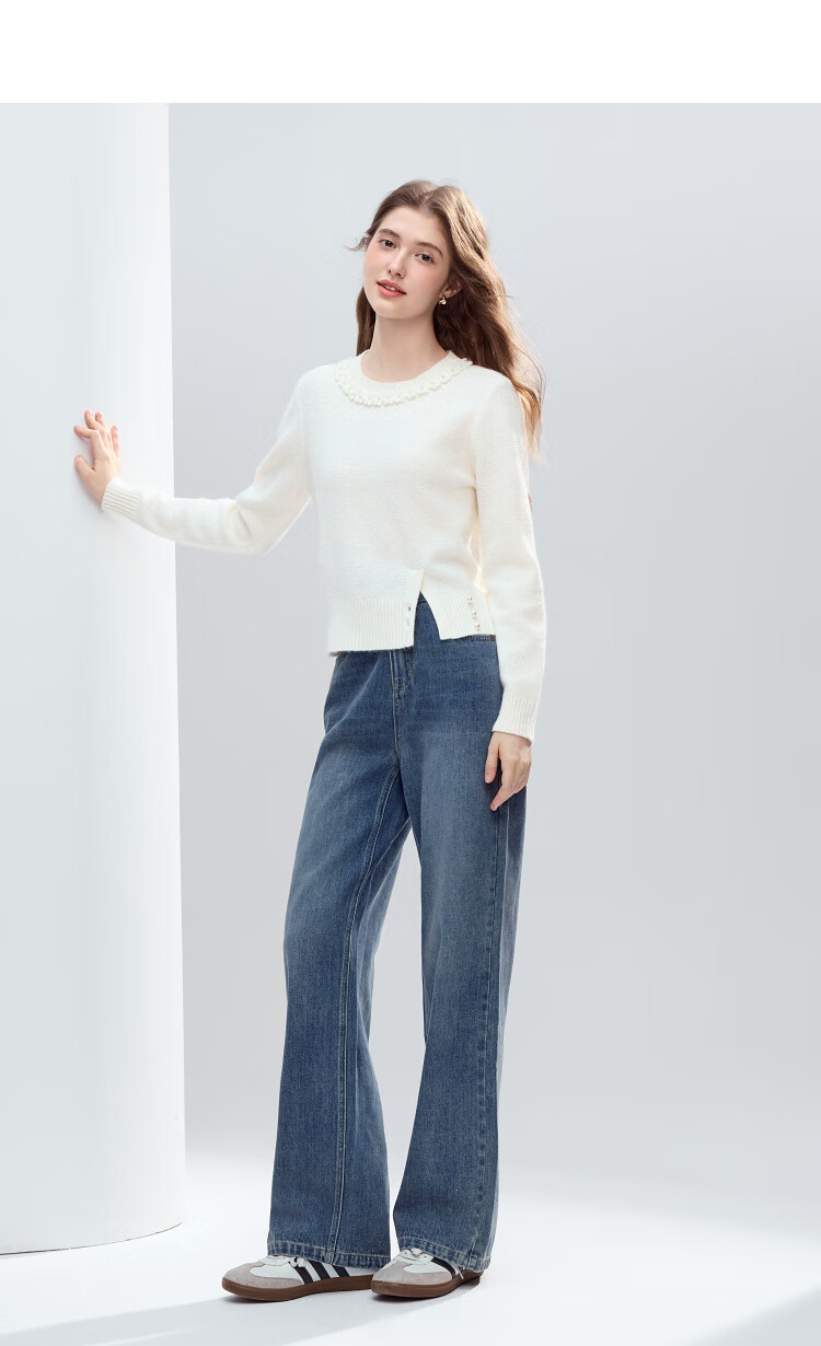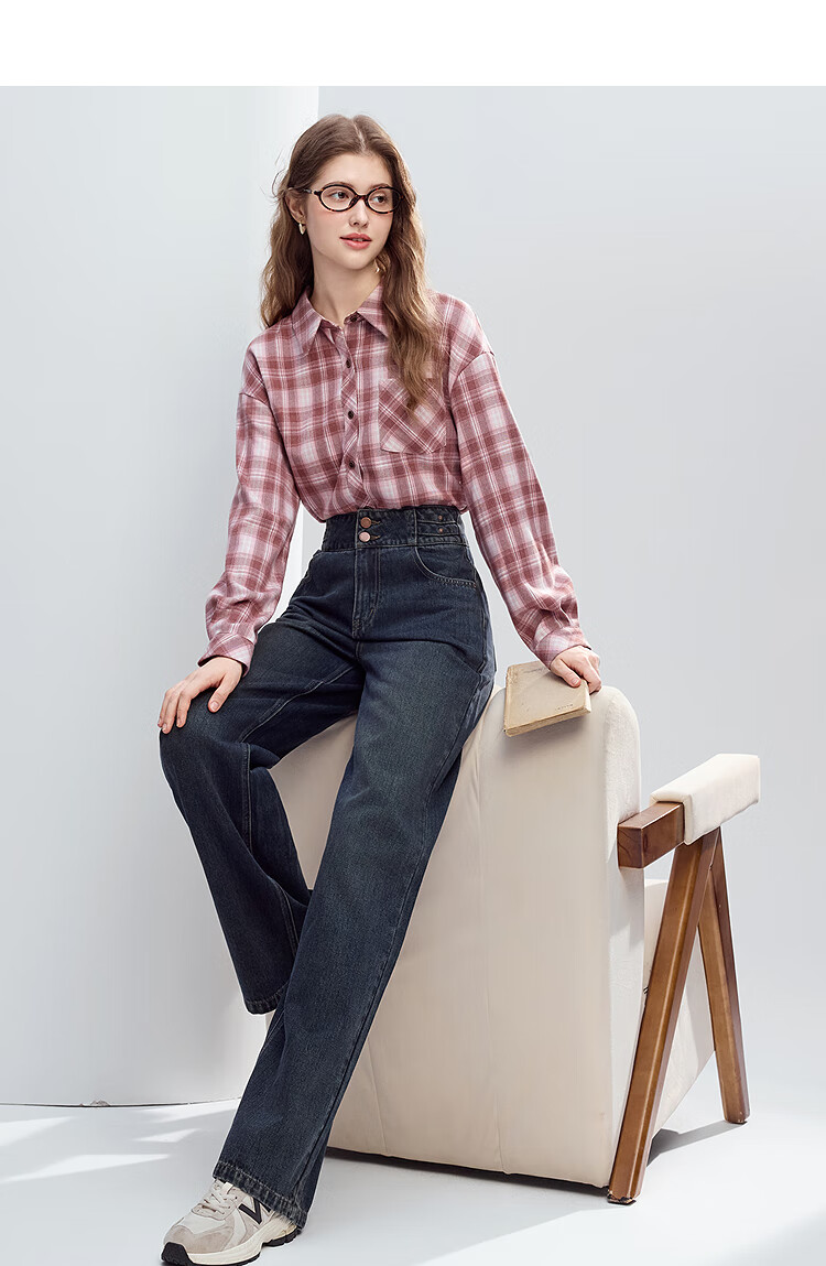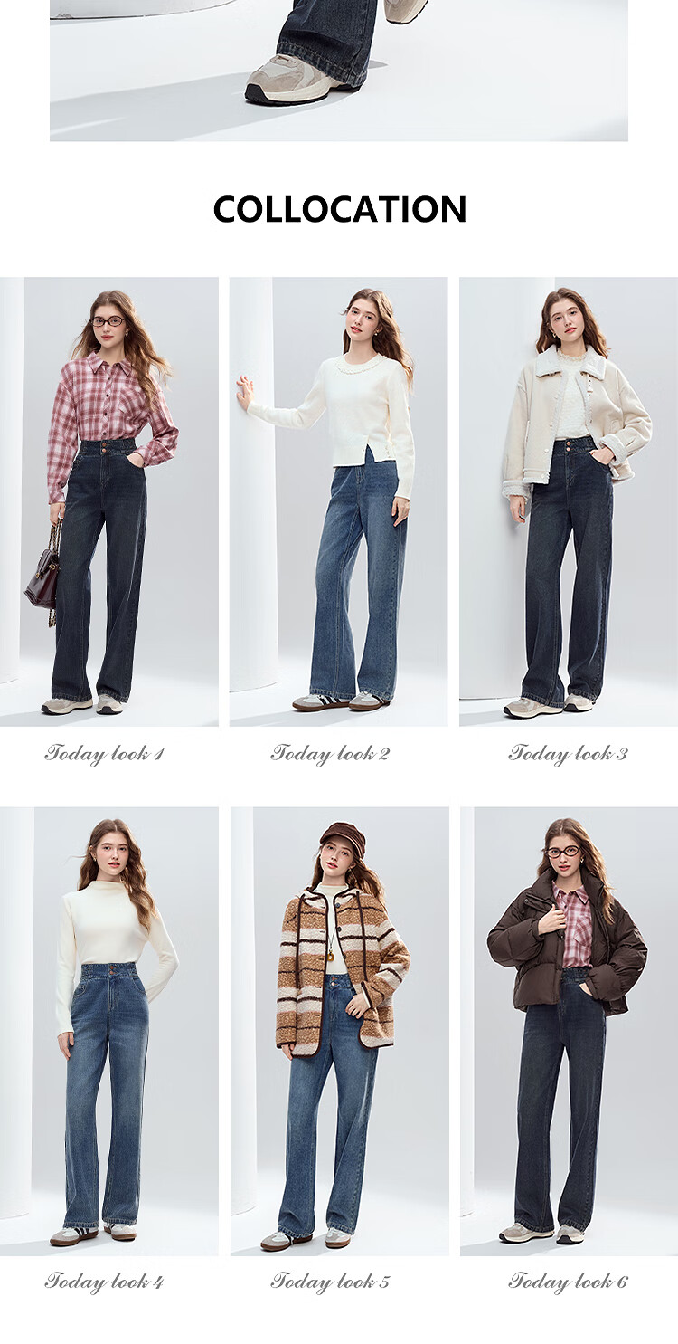 Betu Women's 2025 Winter New Denim Wide Leg Pants Retro Washed High Waist Slim Cotton Feel Pants 2510T86 Dark Denim Blue L