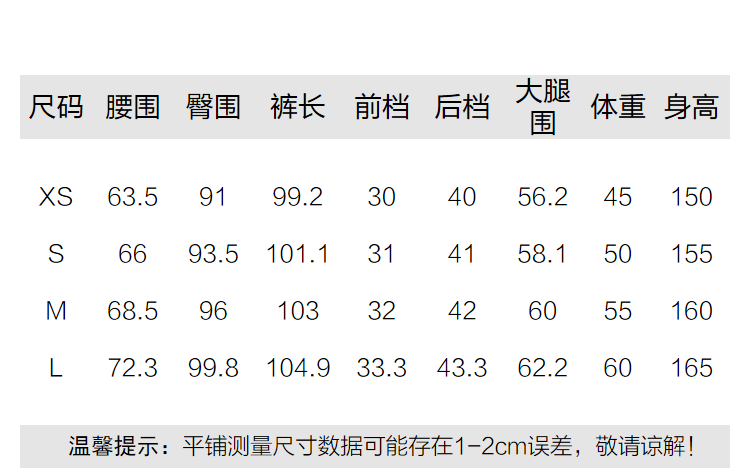Outseam (cm) 99 cm 101.5 cm 104 cm 106.5 cm 109 cm